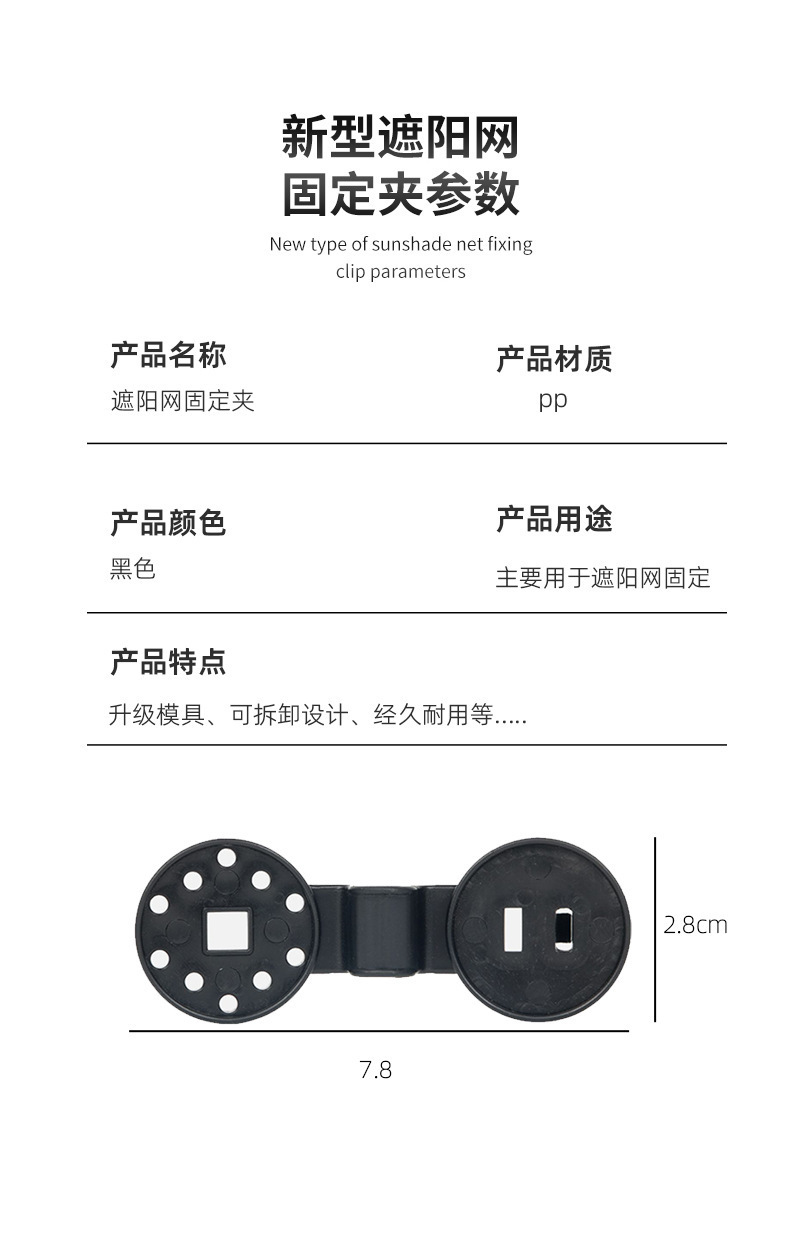 遮阳网固定夹防晒网园林夹子温室网状夹遮光防虫网夹大黑网件卡扣