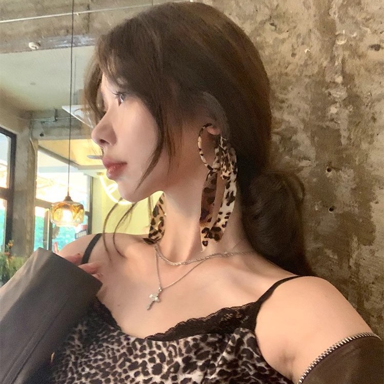 饰品夸张时尚女士耳环豹纹飘带防过敏耳圈网红耳饰高级长耳环批发