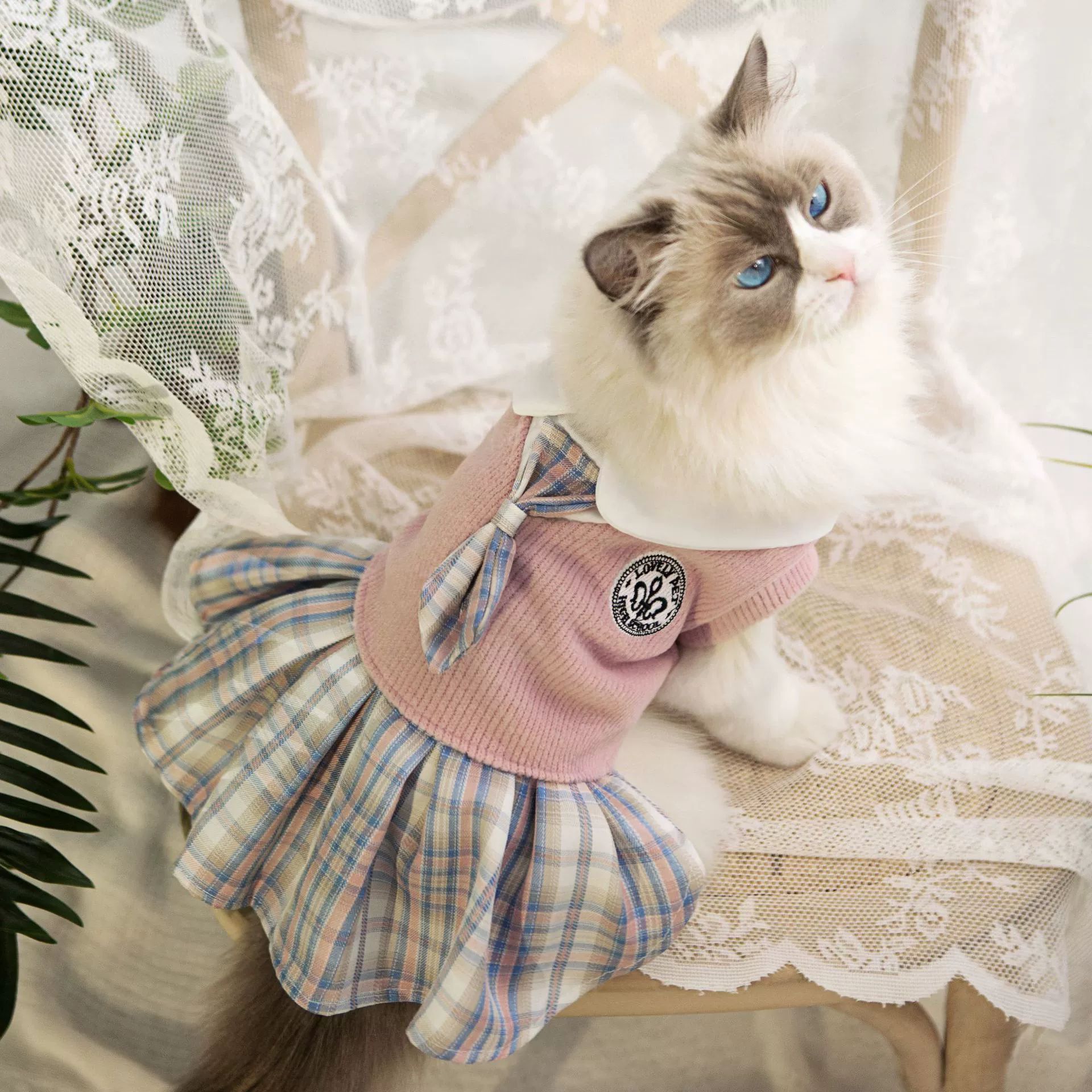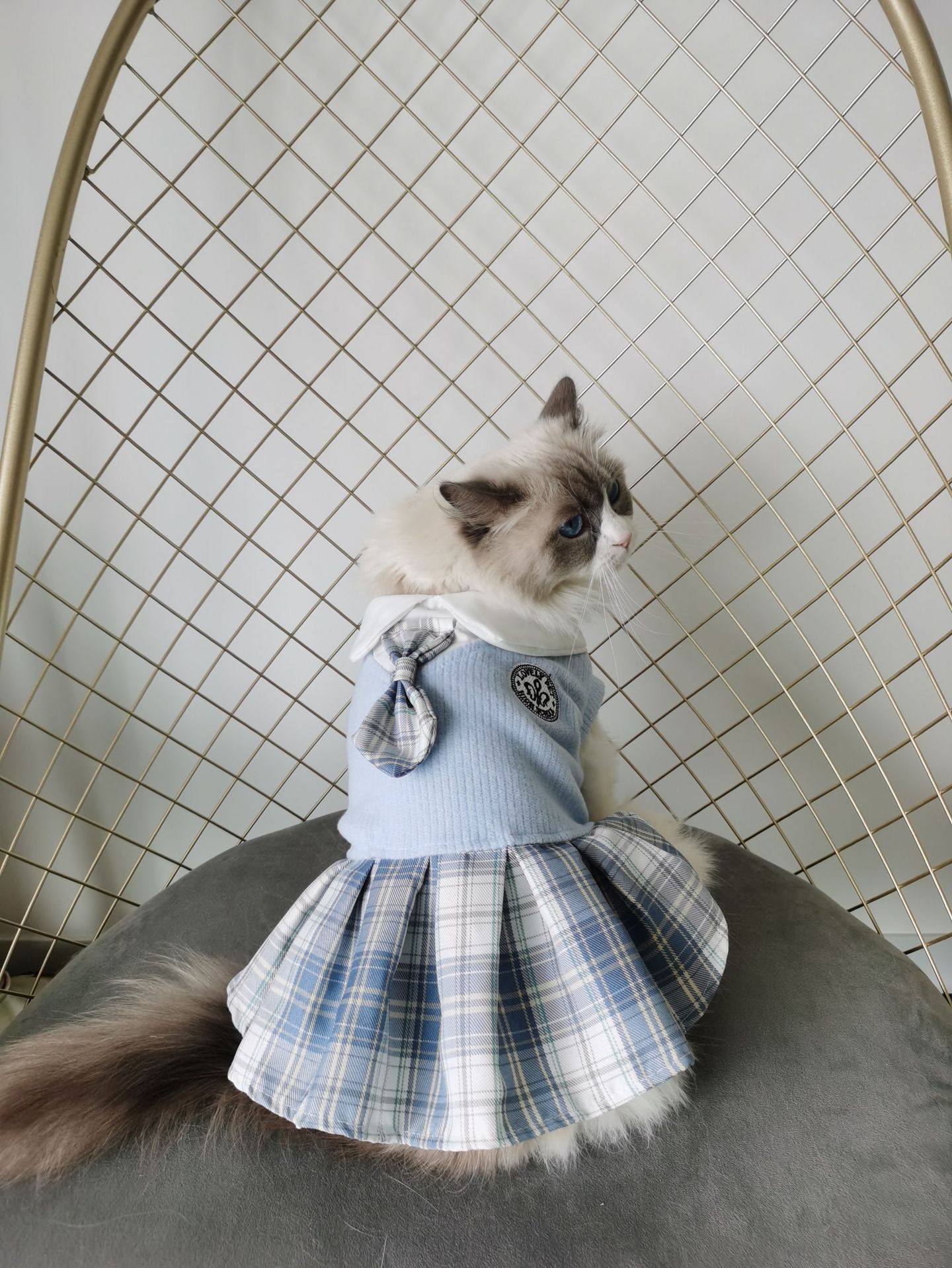 宠物用品狗狗猫咪衣服毛线jk格子连衣裙中小宠物春秋舒适衣服批发