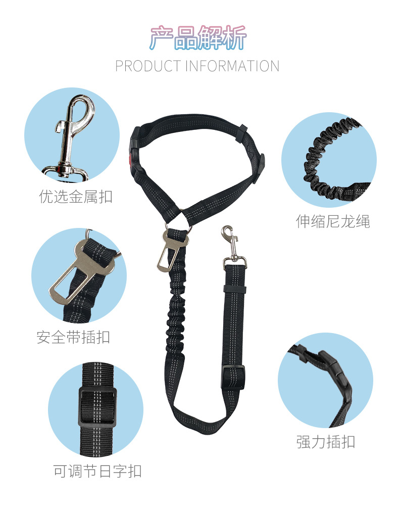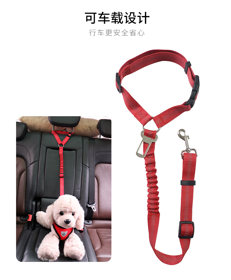车载安全绳宠物牵引带圆环弹力可伸缩双面反光条泰迪博美牵引绳子
