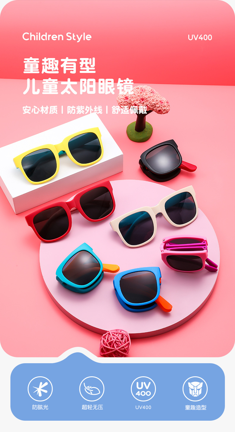 折叠儿童墨镜男童女童防紫外线小孩防晒眼镜时尚宝宝太阳镜批发