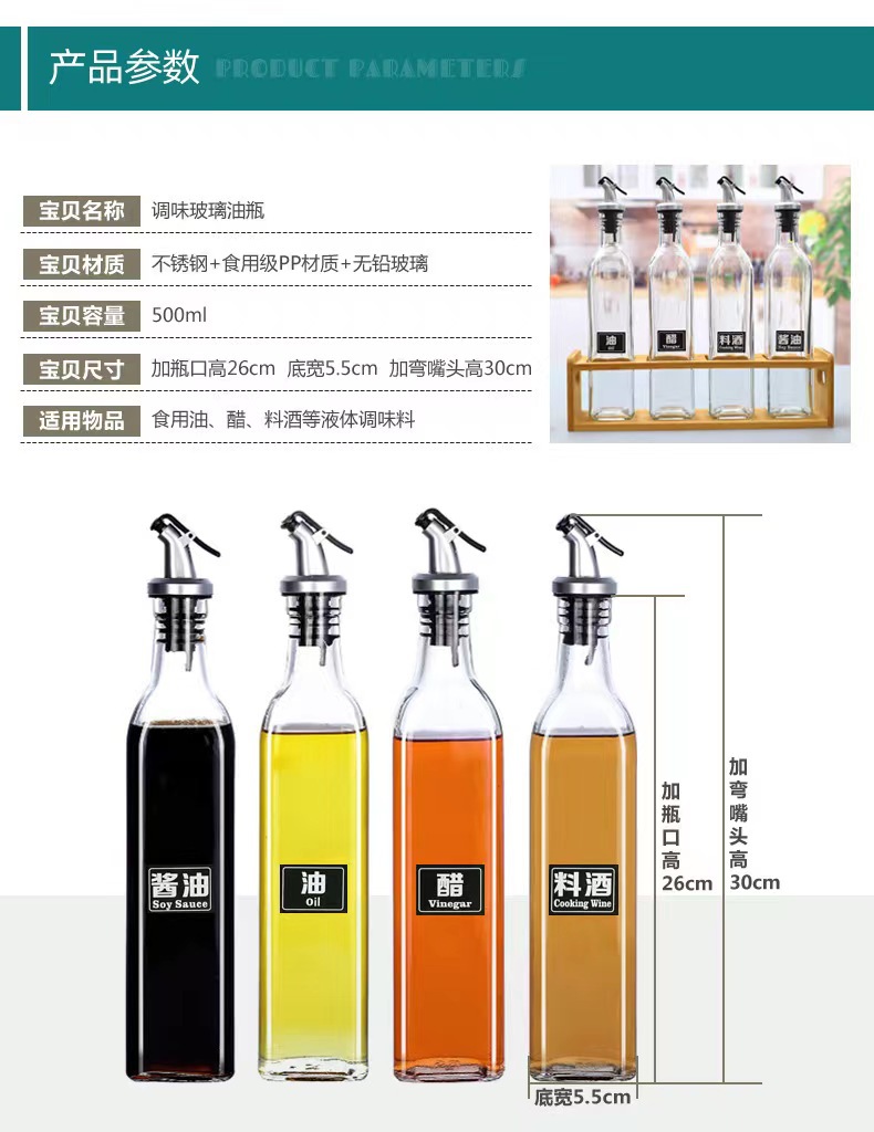 方形玻璃油瓶玻璃家用防漏大号厨房醋壶小油罐酱油瓶醋瓶料酒瓶