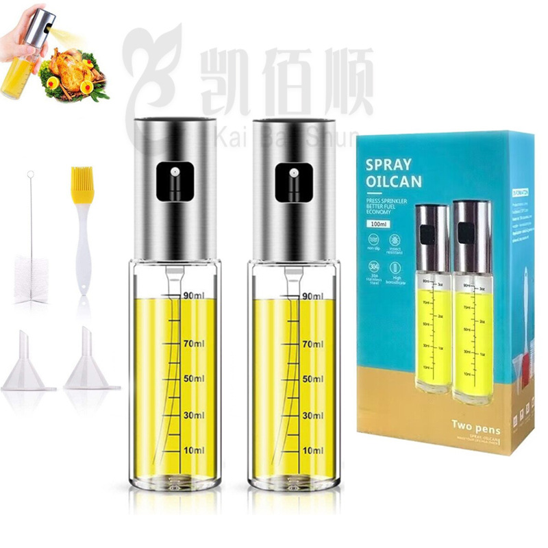 304不锈钢喷油瓶 按压式喷油壶油醋瓶厨房玻璃油瓶健身控油瓶油壶