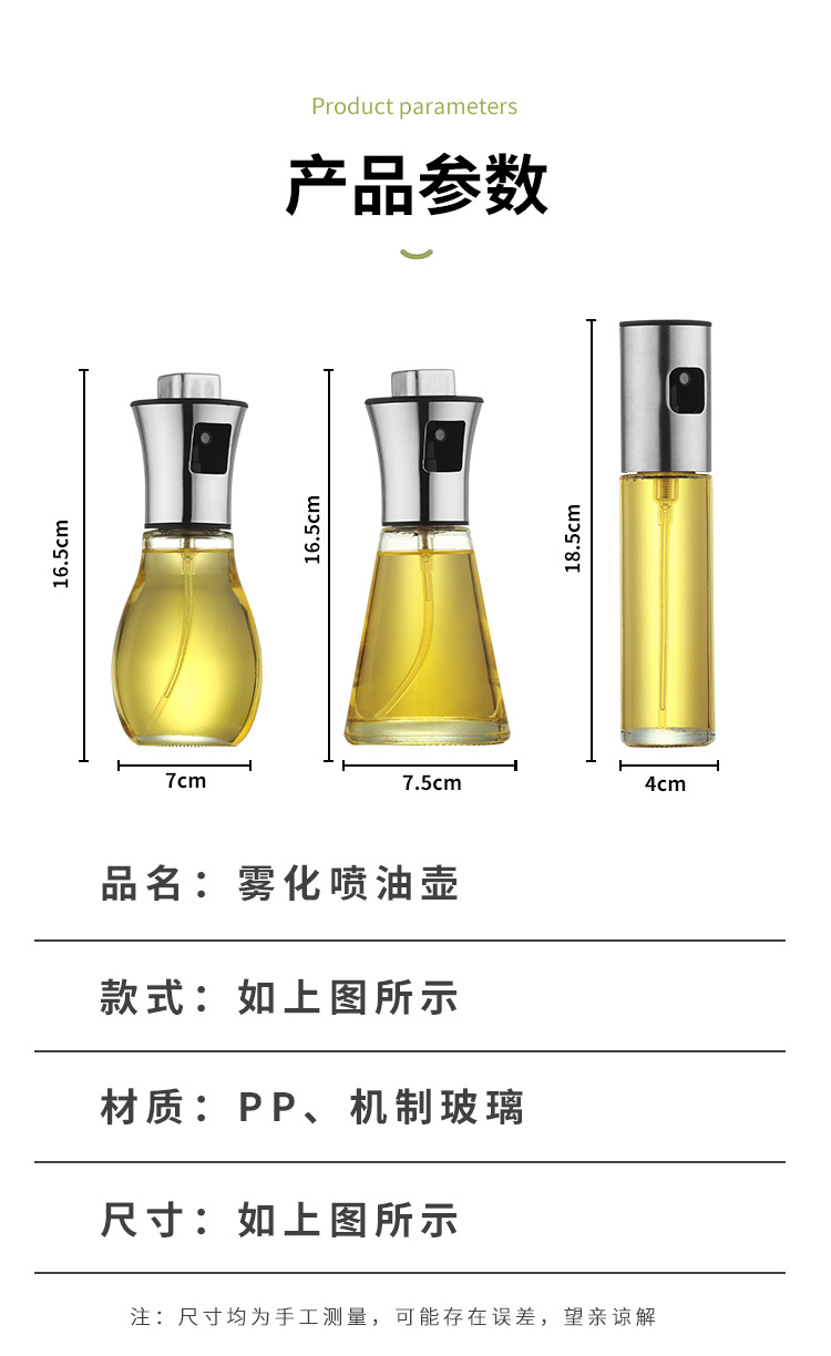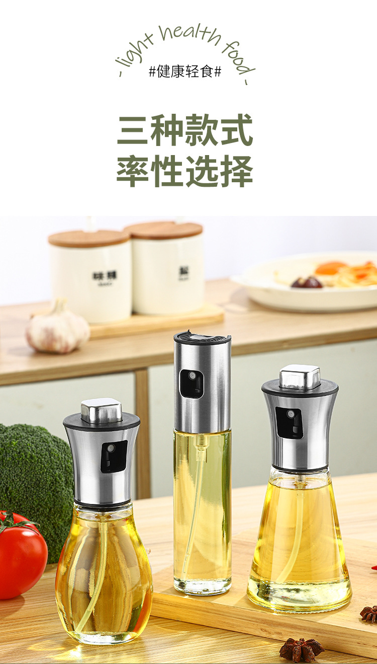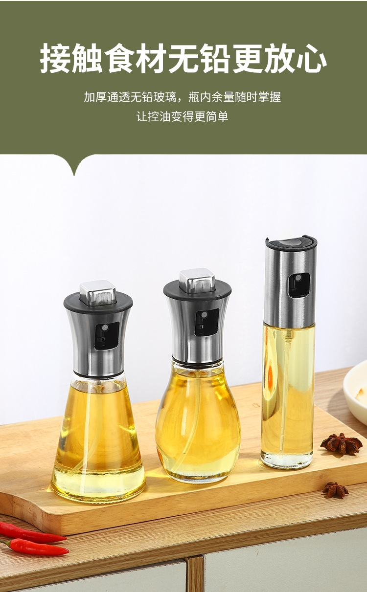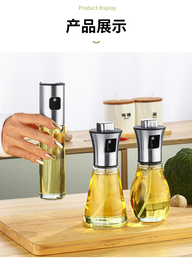 304不锈钢喷油瓶按压式喷雾油壶家用厨房烧烤酱醋调料玻璃油瓶