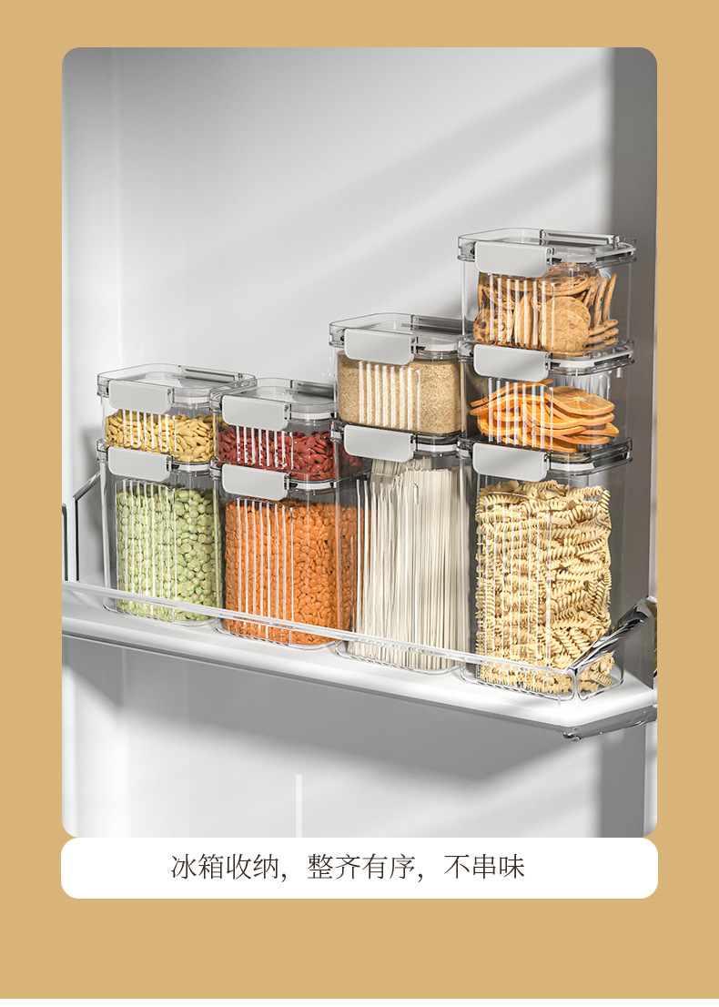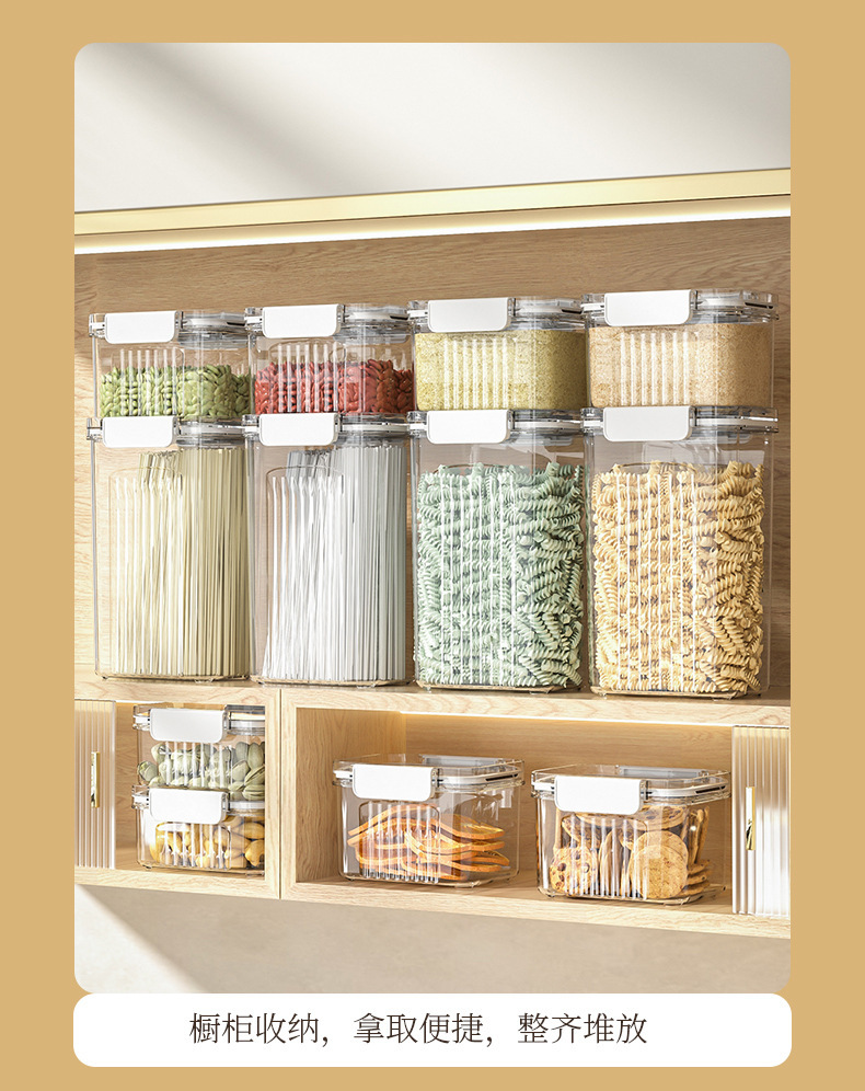 日式家用密封罐 厨房五谷杂粮干货储物罐防潮方形杂粮罐PET收纳盒