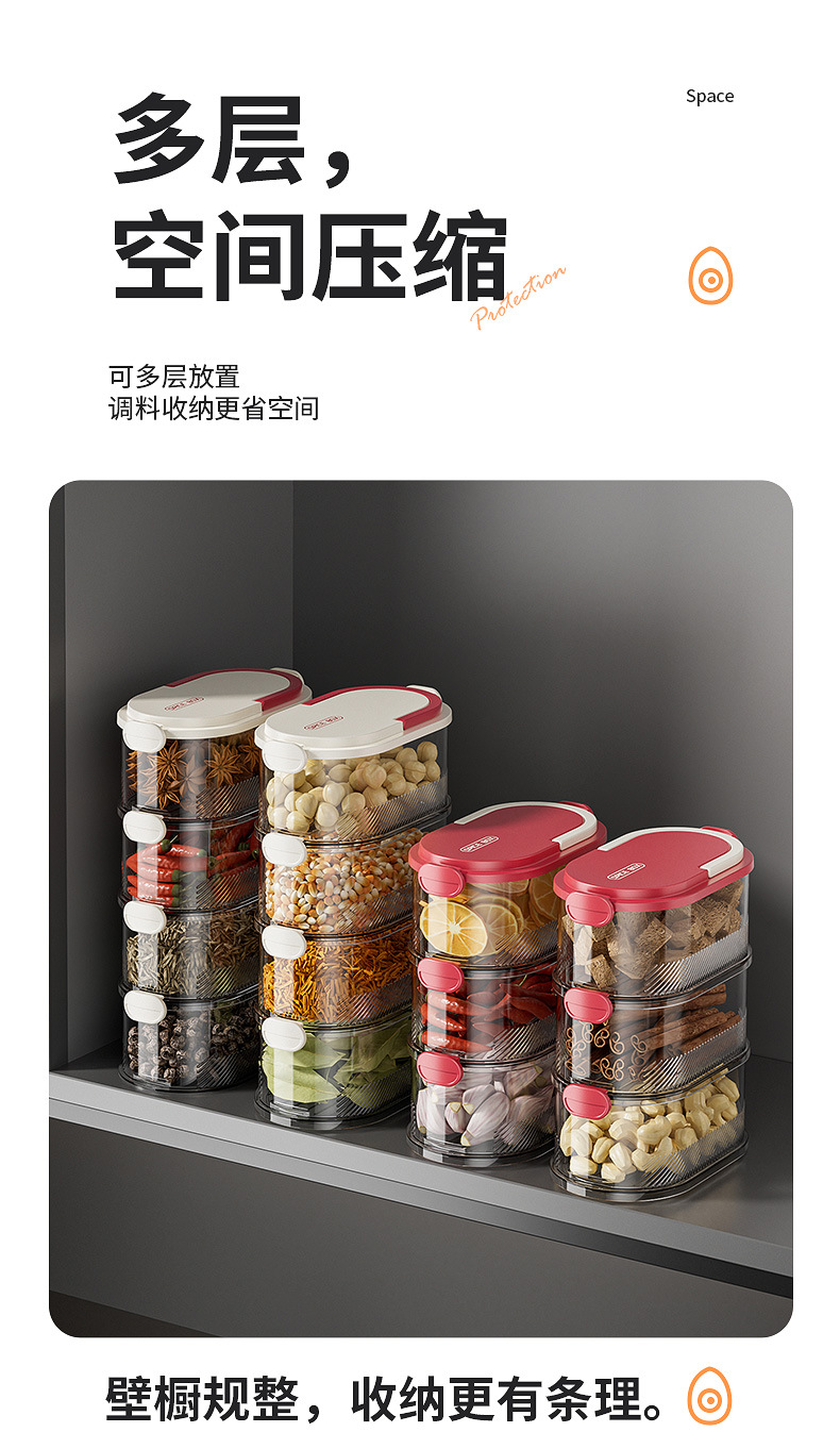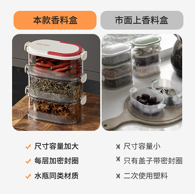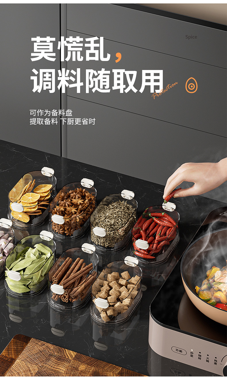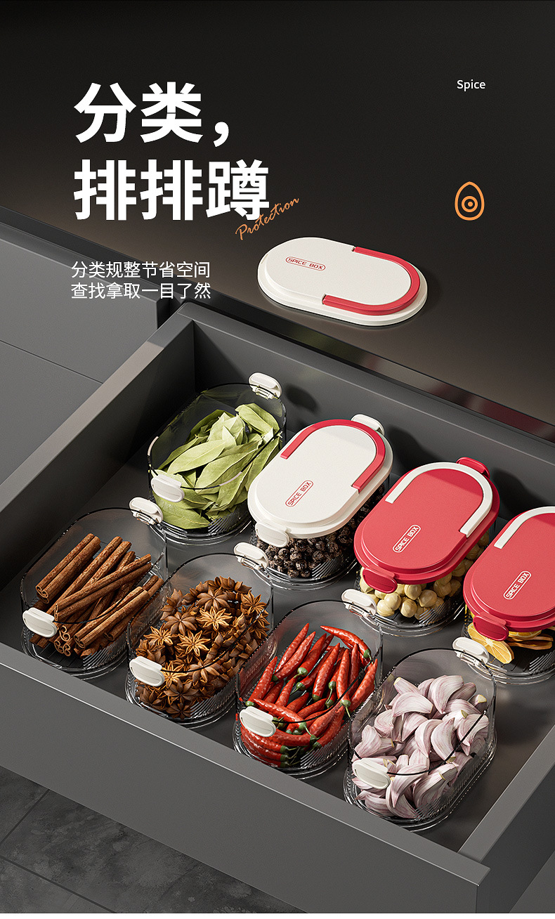 分格香料收纳盒厨房家用花椒大料储物盒手提密封罐佐料调味调料罐