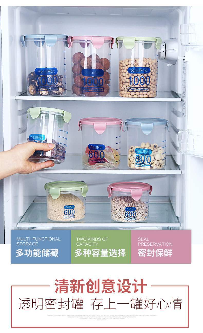 带盖大号密封杂粮罐 厨房冰箱食品收纳密封盒 透明真空储物密封罐