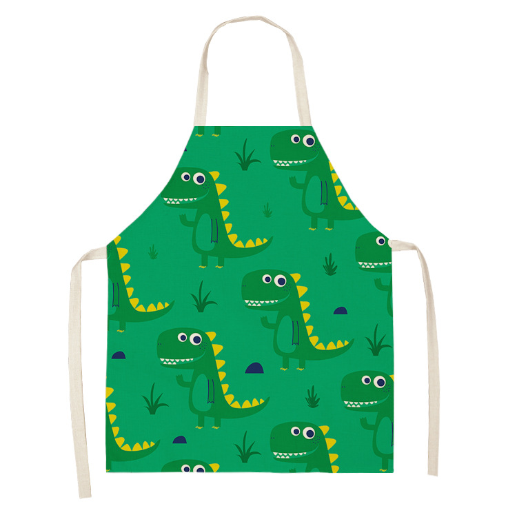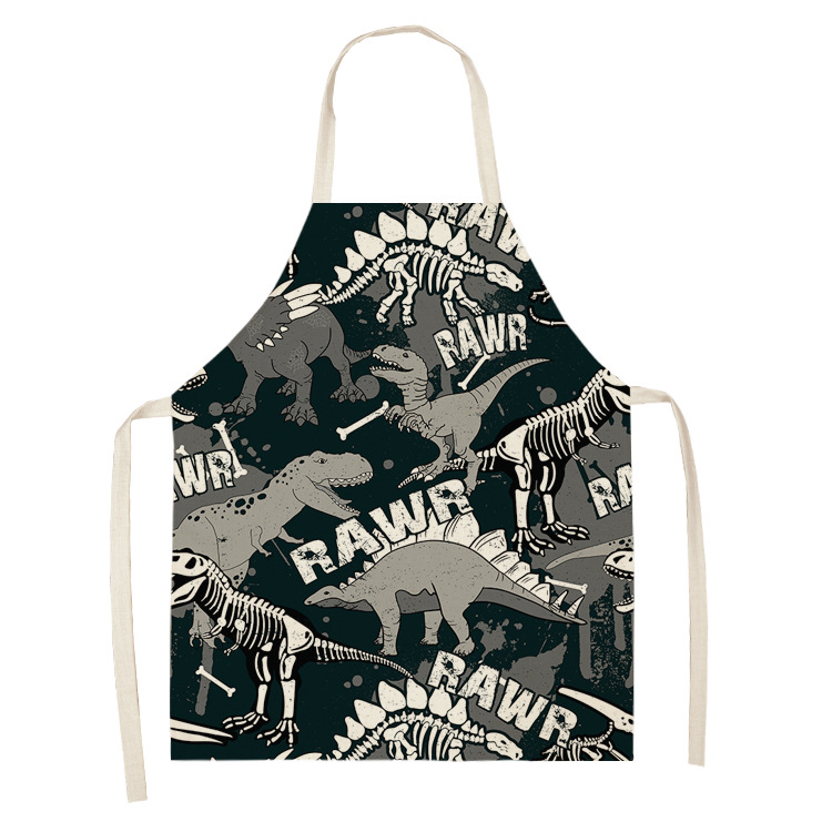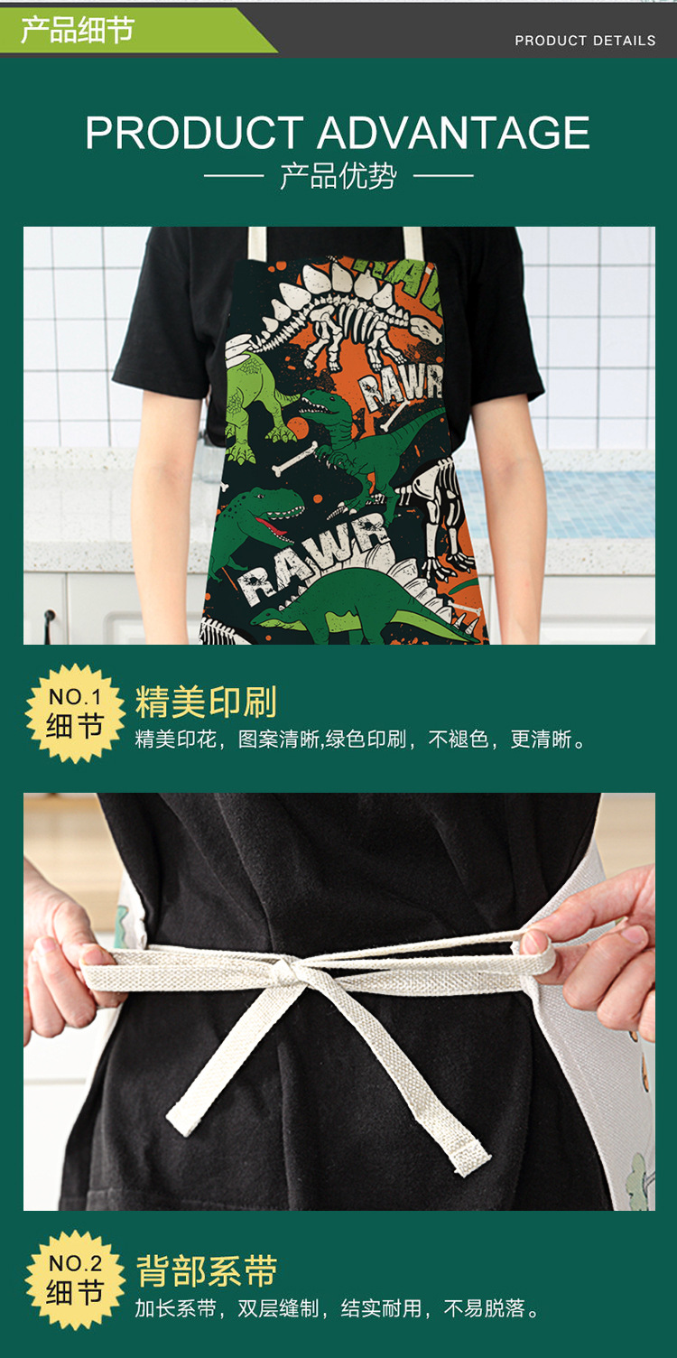 恐龙印花围裙 挂脖无袖棉麻围裙 厨房家务防油防污围裙 来图可定