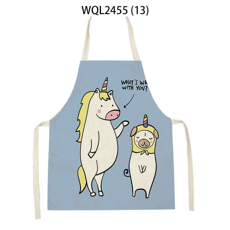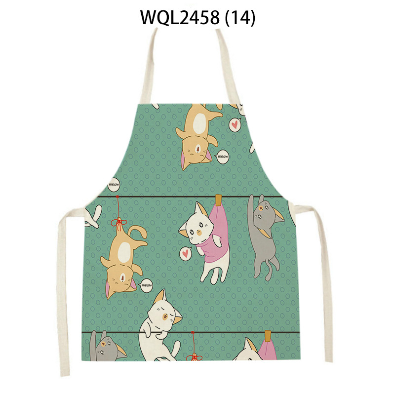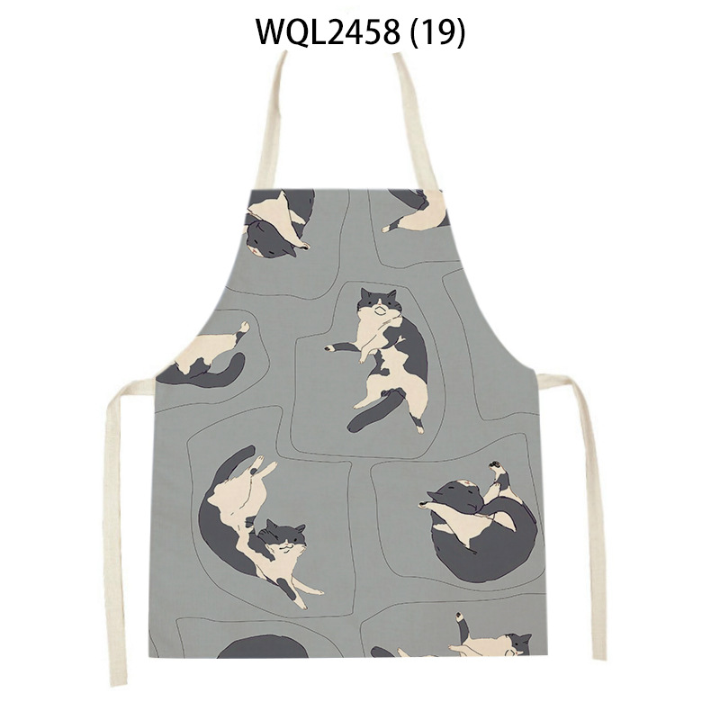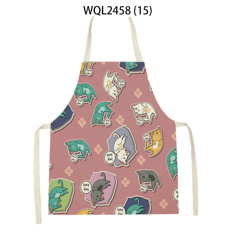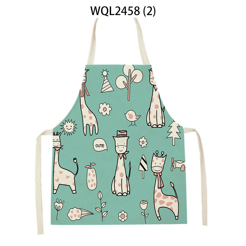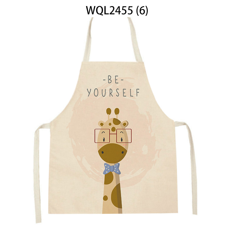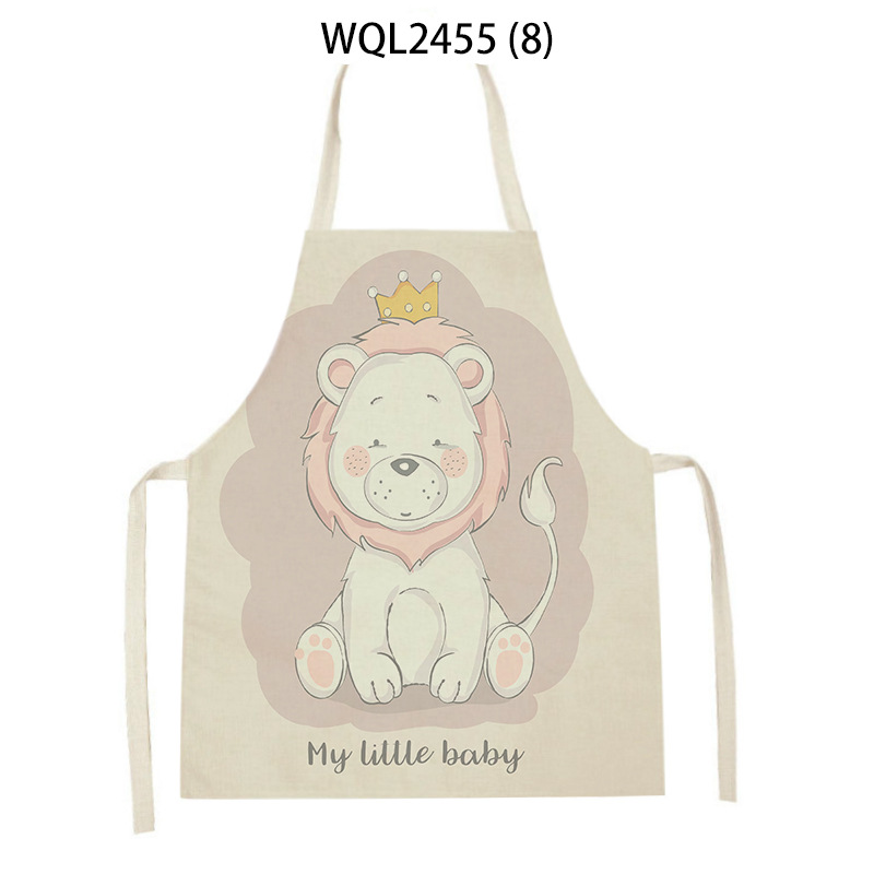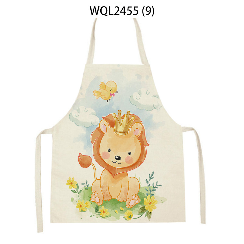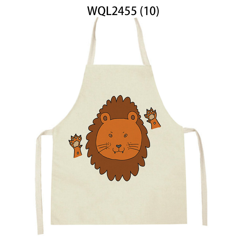 动物狮子亚麻围裙布艺无袖罩衣家务防尘跨境专供日用家居厨房防污