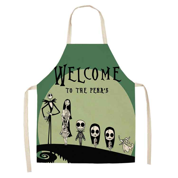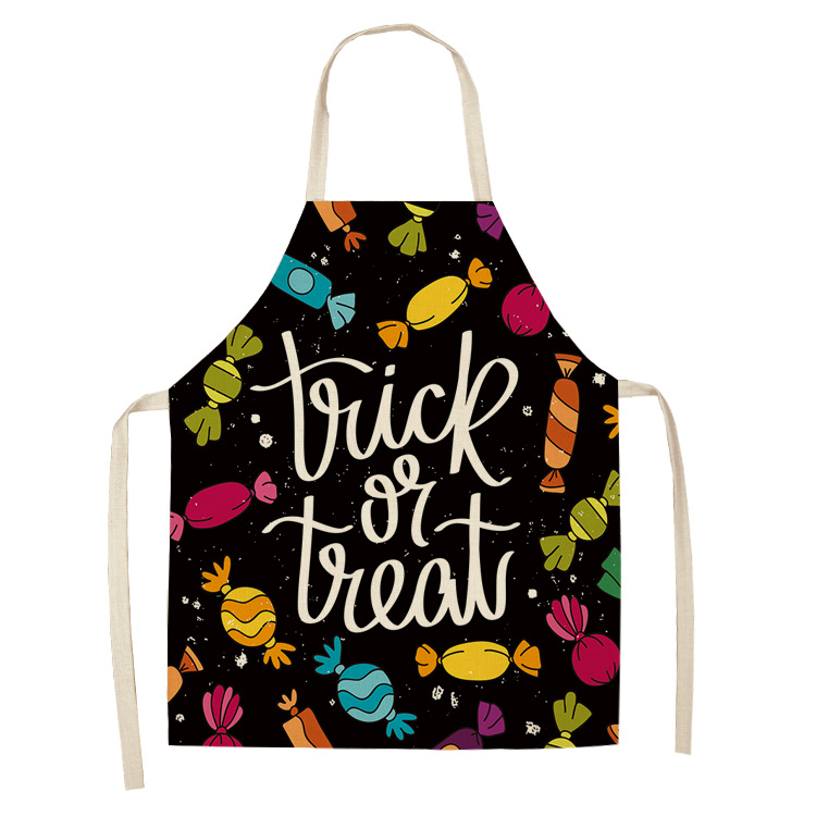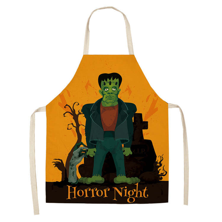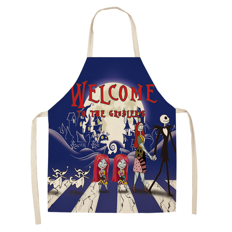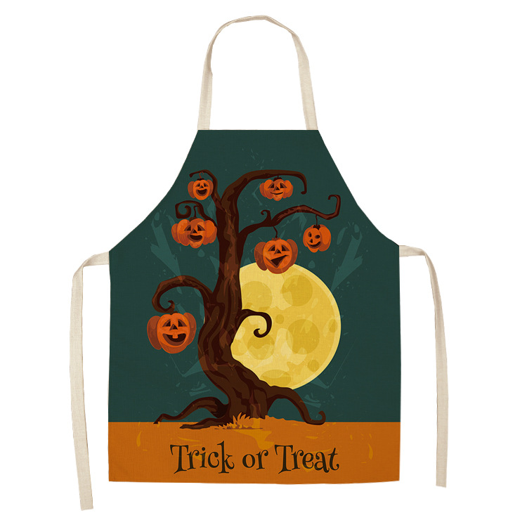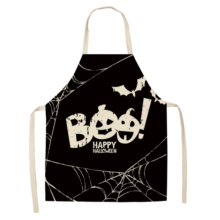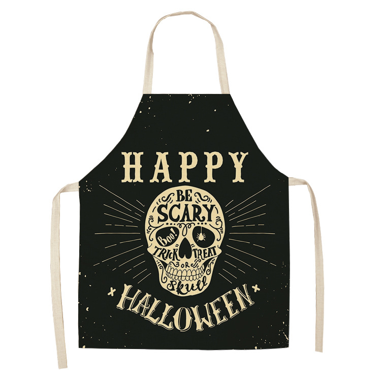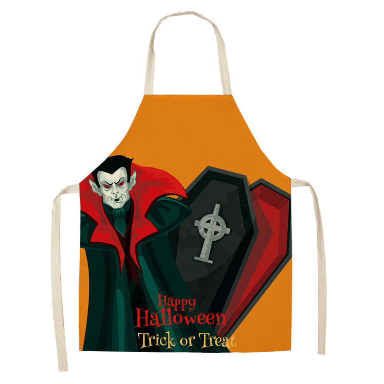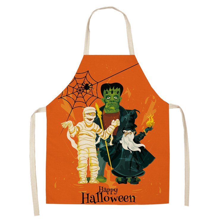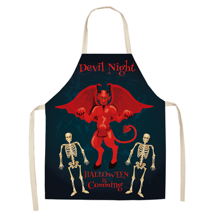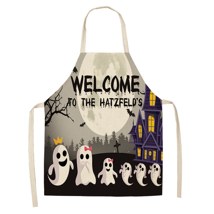 跨境万圣节棉麻围裙 创意印花围裙 来图可定厨房家务防油防污围裙