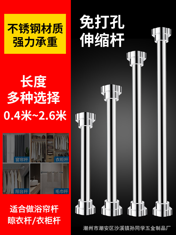 免打孔伸缩杆阳台晾衣神器窗帘杆浴帘不锈钢晾衣杆晒衣杆批发