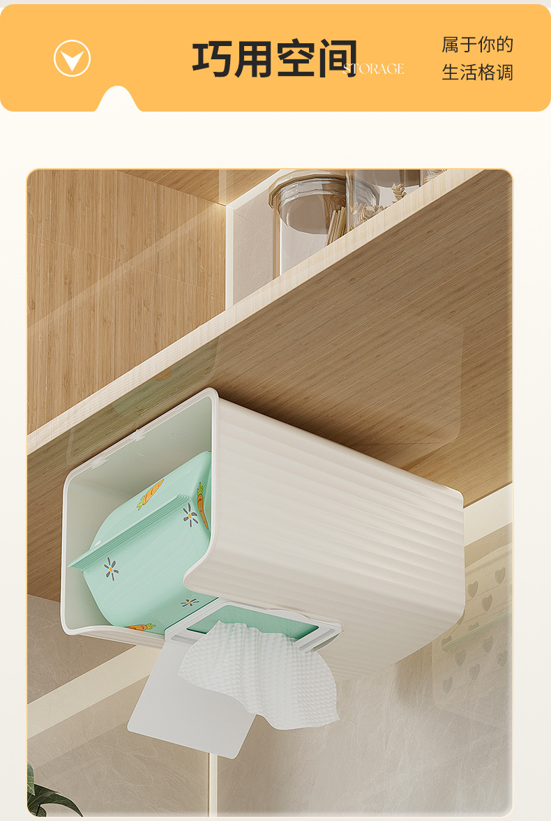 倒挂纸巾盒悬挂奶油风免打孔创意抽纸盒厨房家用卫生间洗脸巾收纳