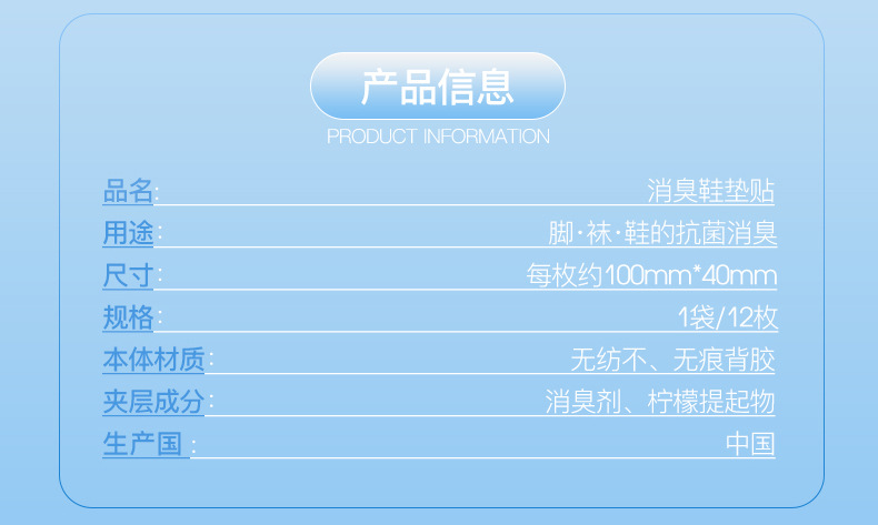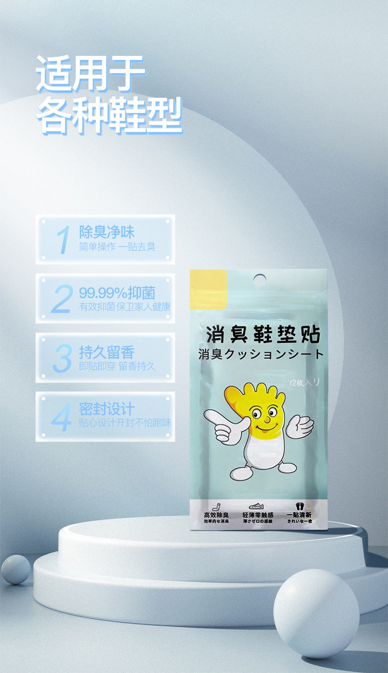 除臭鞋贴除臭剂除脚臭蓝球鞋防臭除异味吸脚汗清香鞋垫去异味神器