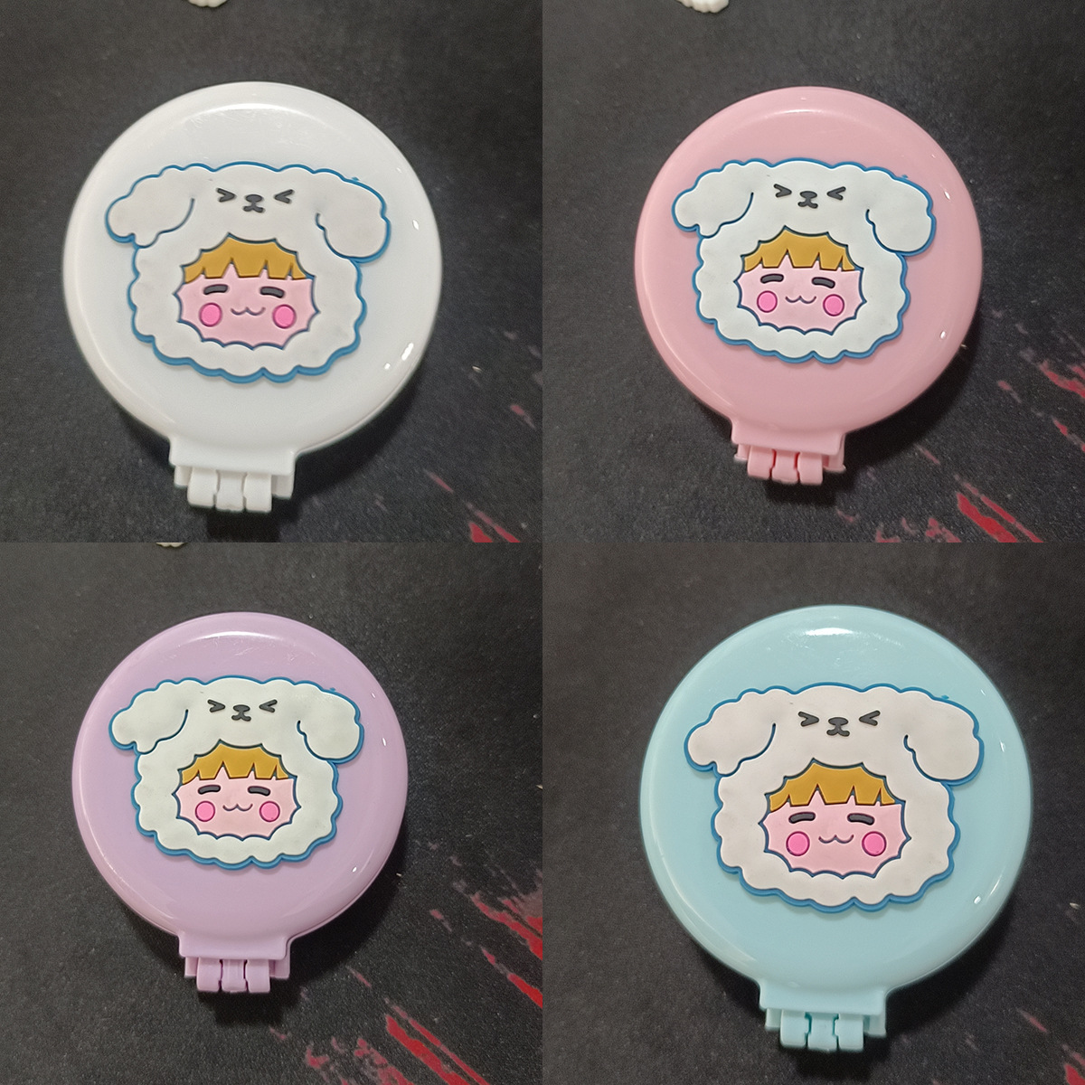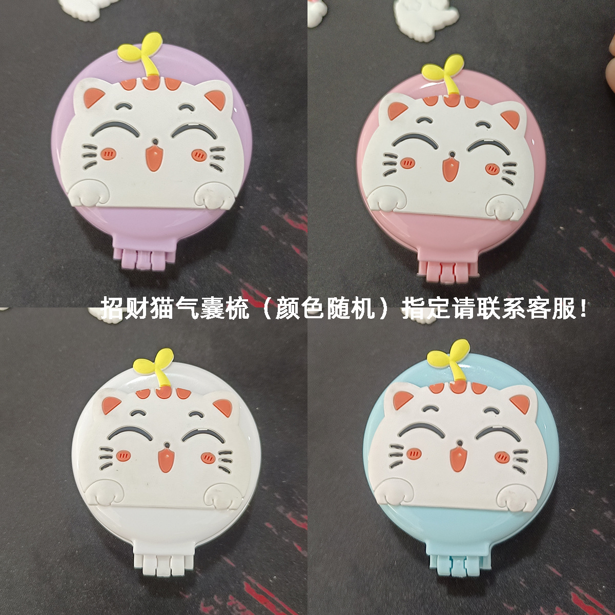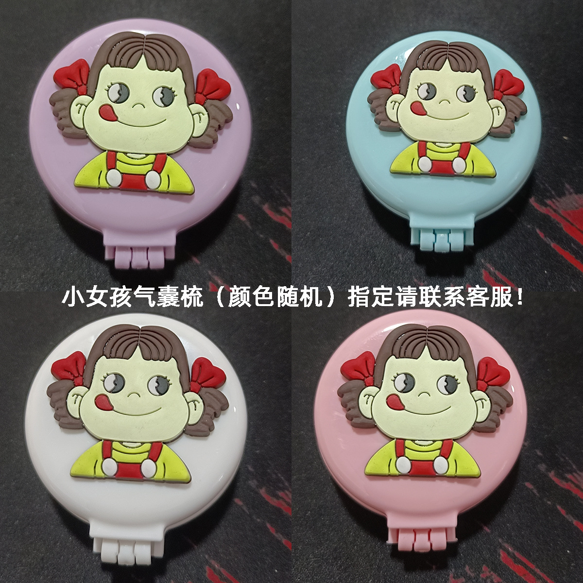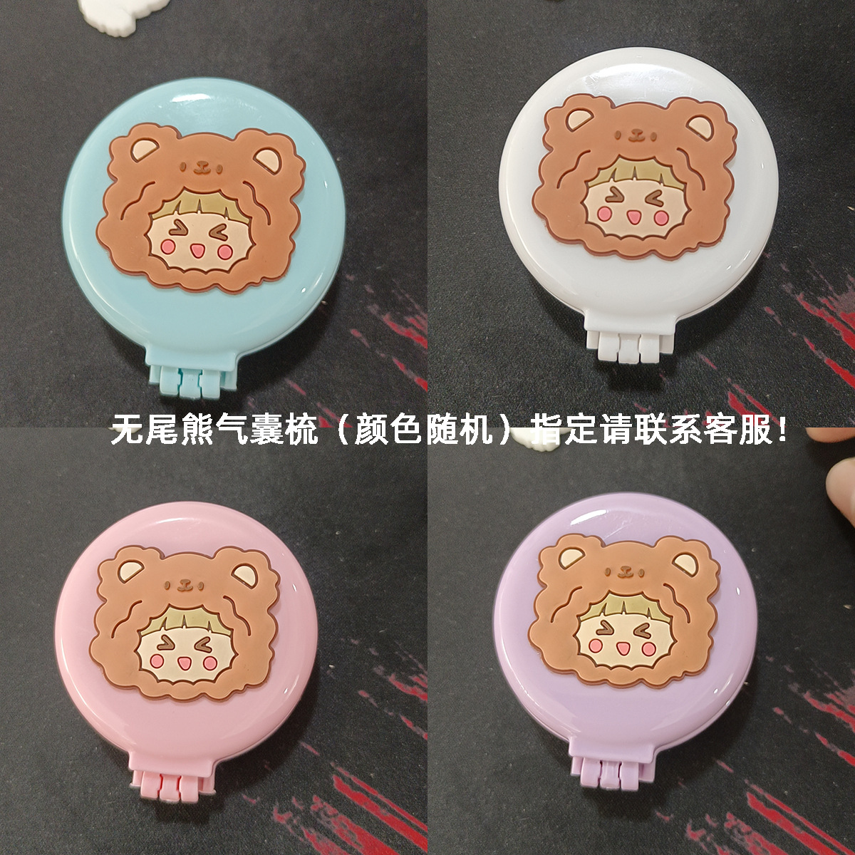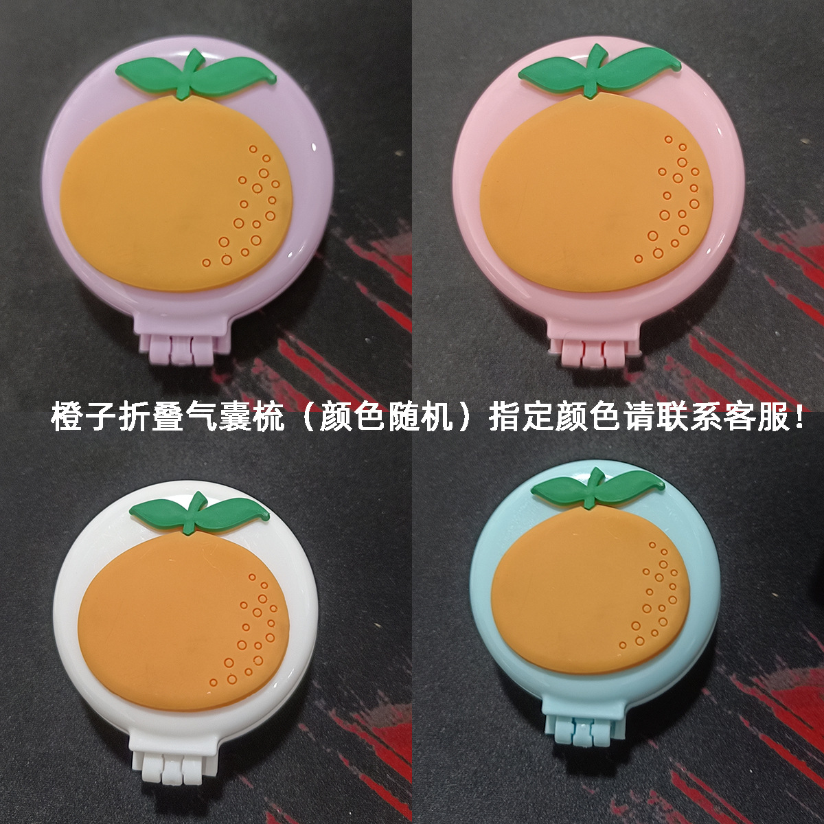 糖果色韩版折叠梳便携纯色随身化妆镜子气囊梳防静电按摩彩虹梳