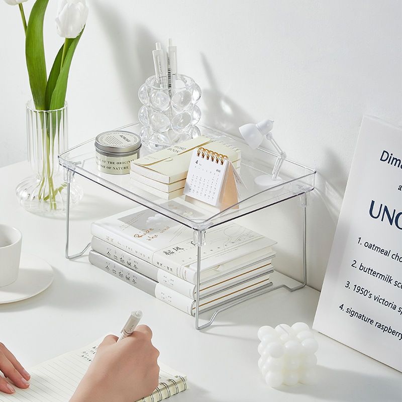透明双层桌面置物架亚克力杯架可折叠厨房卫生间化妆品杂物置物架
