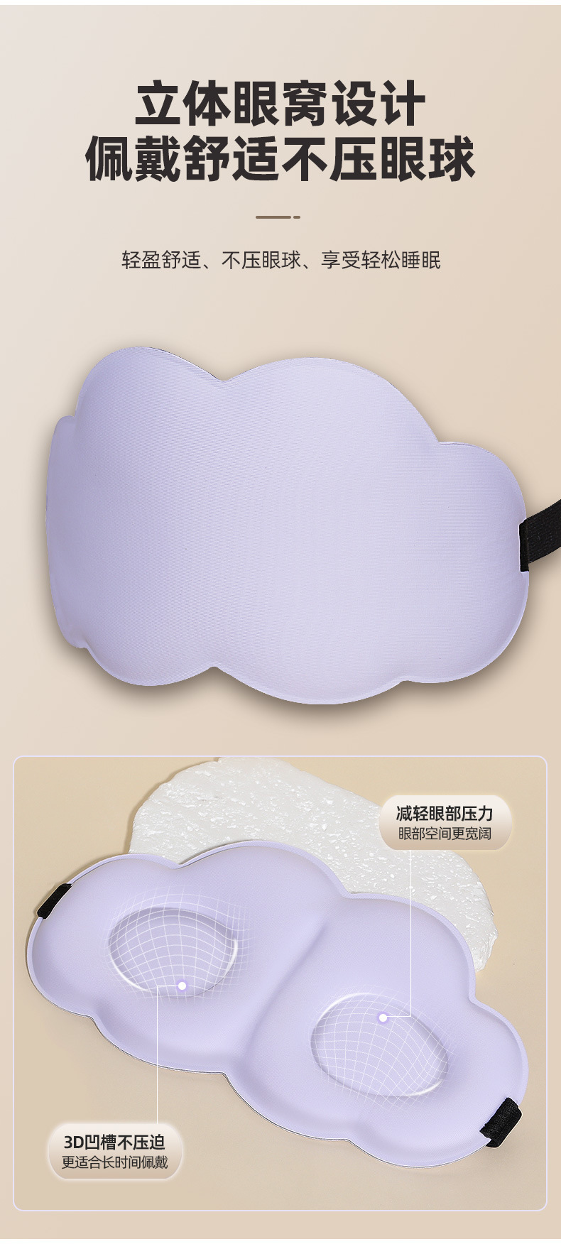 3D云朵眼罩午休睡眠透气遮光护眼罩男女慢回弹记忆棉舒适
