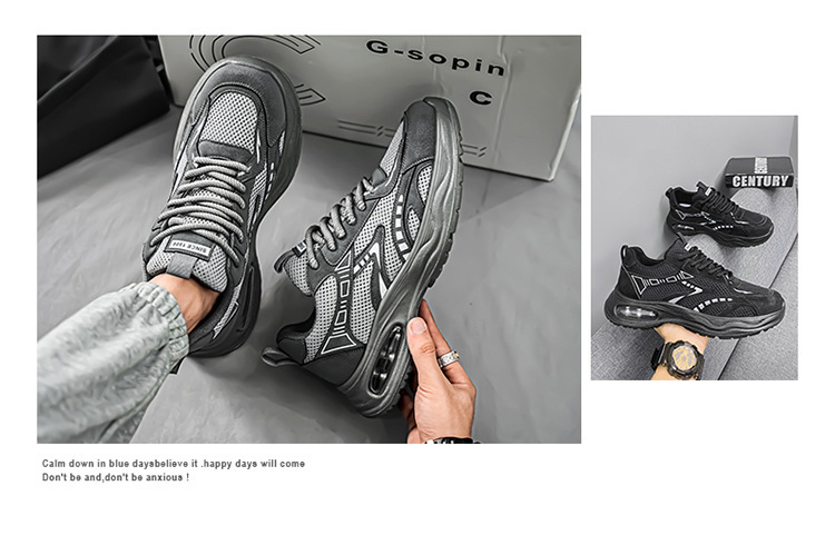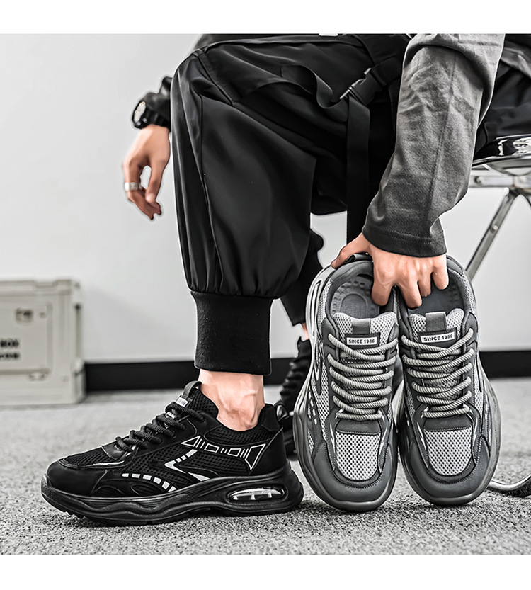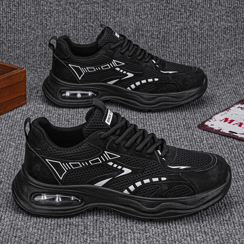 2024男鞋秋季气垫减震男士运动休闲鞋网面透气跑步厚底老爹鞋