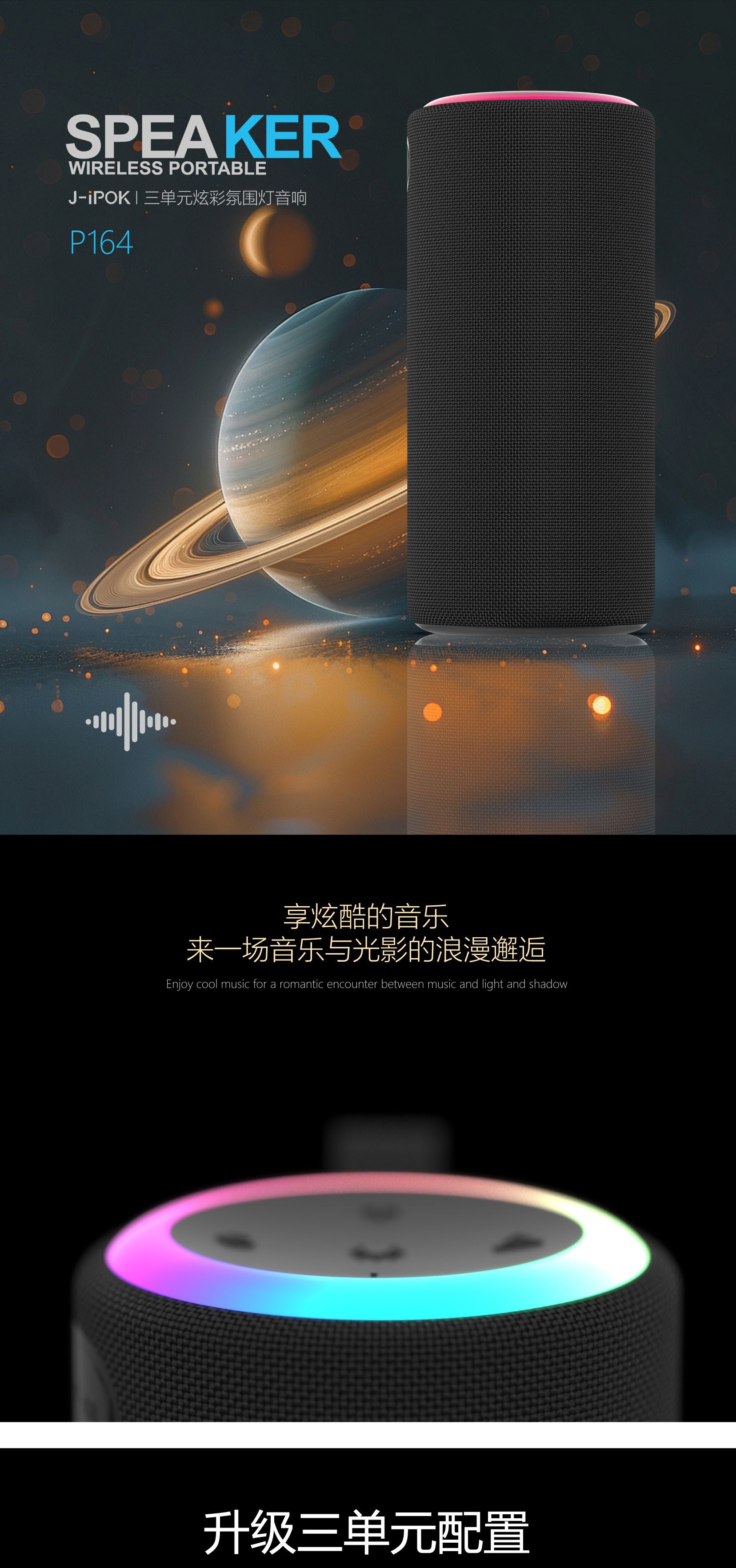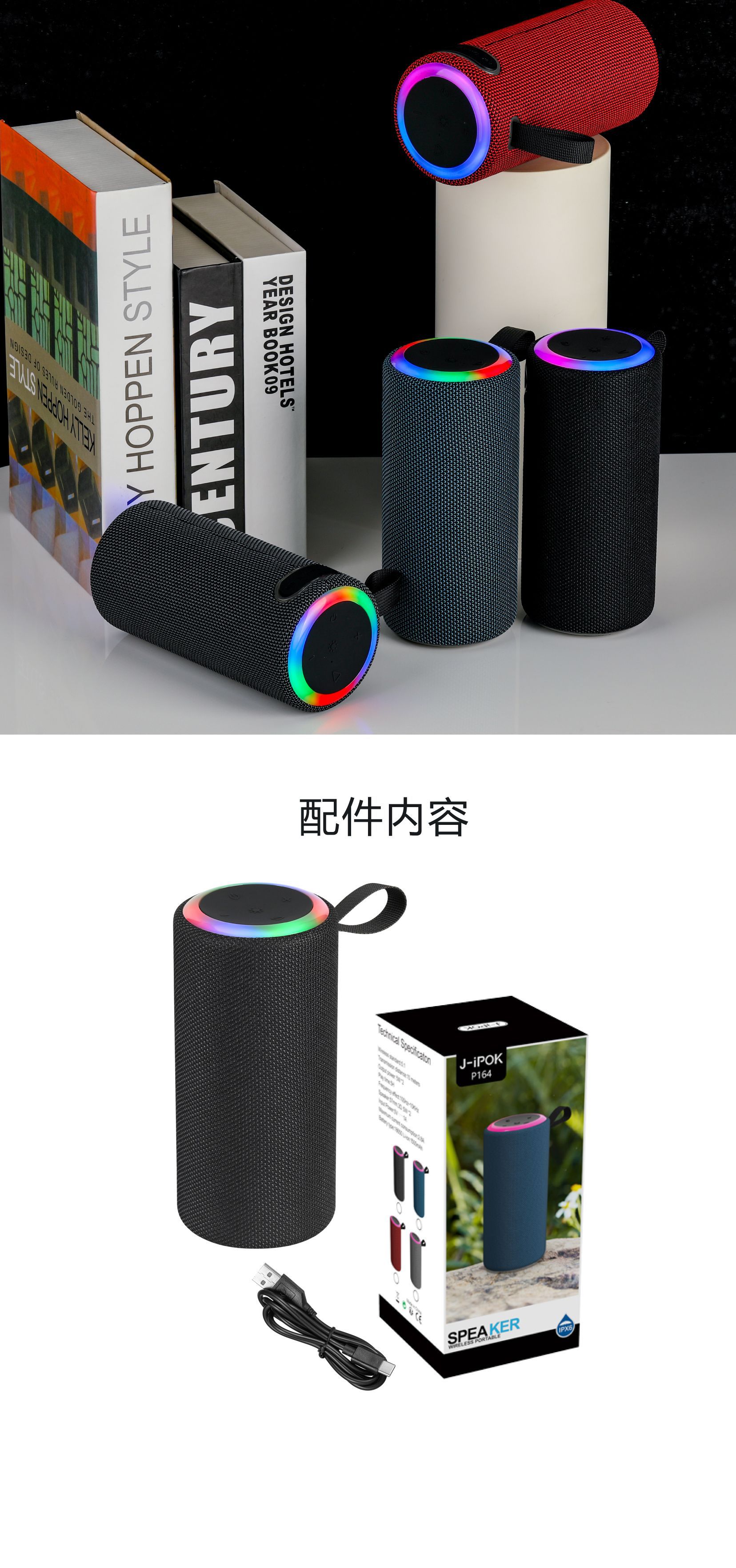 J-ipok P164 跨境带灯蓝牙音箱便携式迷你户外双喇叭无线蓝牙音响