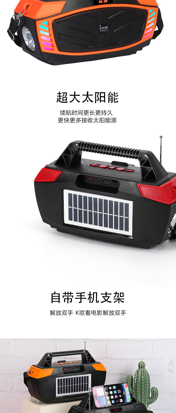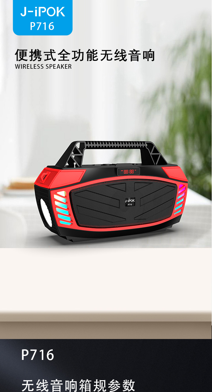 J-ipok P716 太阳能全功能便携式优质超级无线蓝牙音响外置天线
