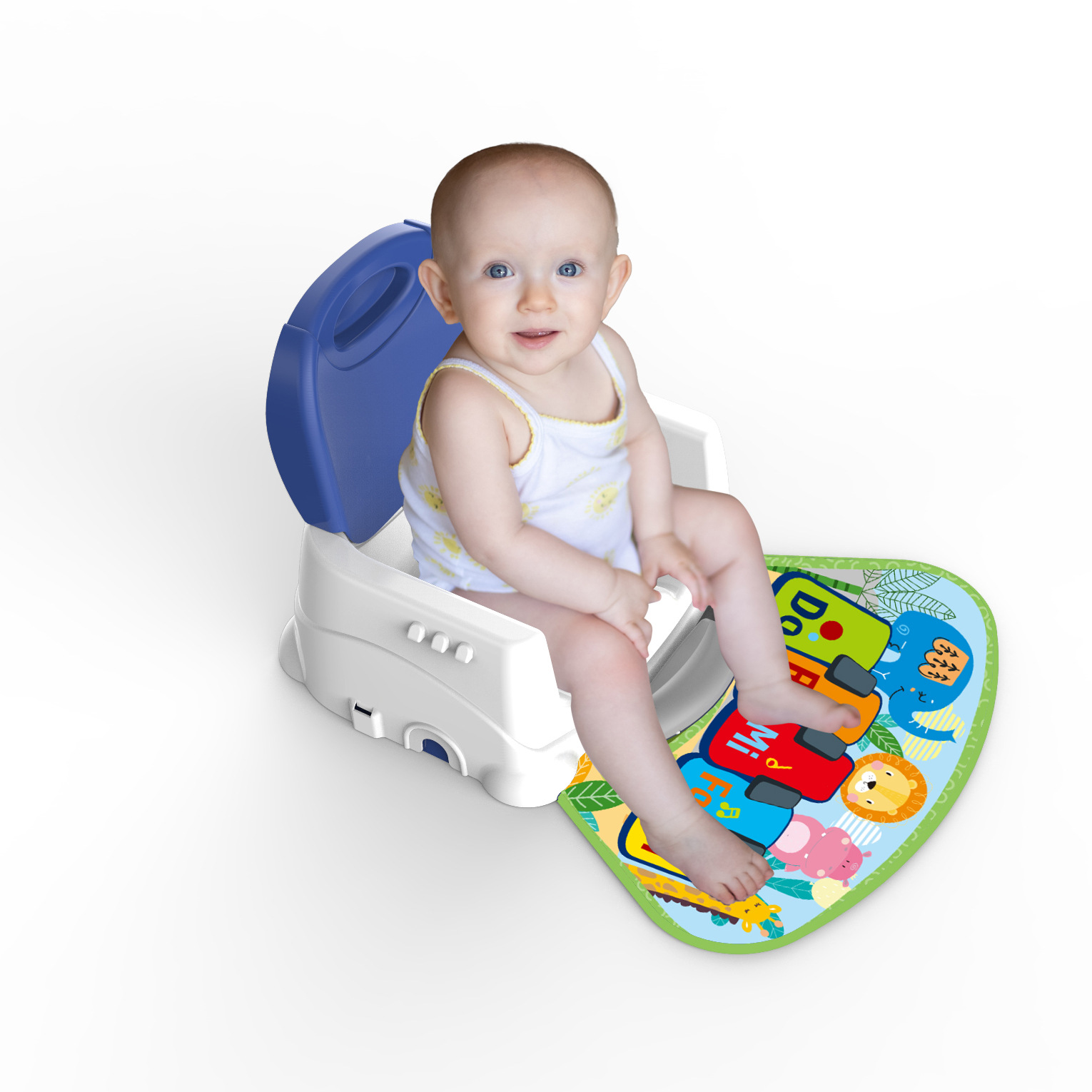 使用跳舞毯游戏餐椅,二合一设计,满足宝宝不同场景需求。跳舞毯游戏模式:将餐椅脚调节,游戏毯放置在地上,宝宝可以坐在餐椅上玩耍跳舞毯,游戏毯可以分离椅子上,单独供宝宝玩耍;餐椅模式:专为宝宝喂食设计的一款舒适座椅,三个高度调节,可自定义多款椅,多个安全的扣子,几乎适合任何椅。配置可用洗碗机清洗的托盘,托盘容易擦拭。易于清洁。3点式安全带,可伴随宝宝一起成长。折叠的框架和肩带,方便旅行。游戏毯有双模式转换和调节大小声。使用3个AA电池(不包含)
