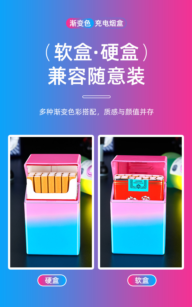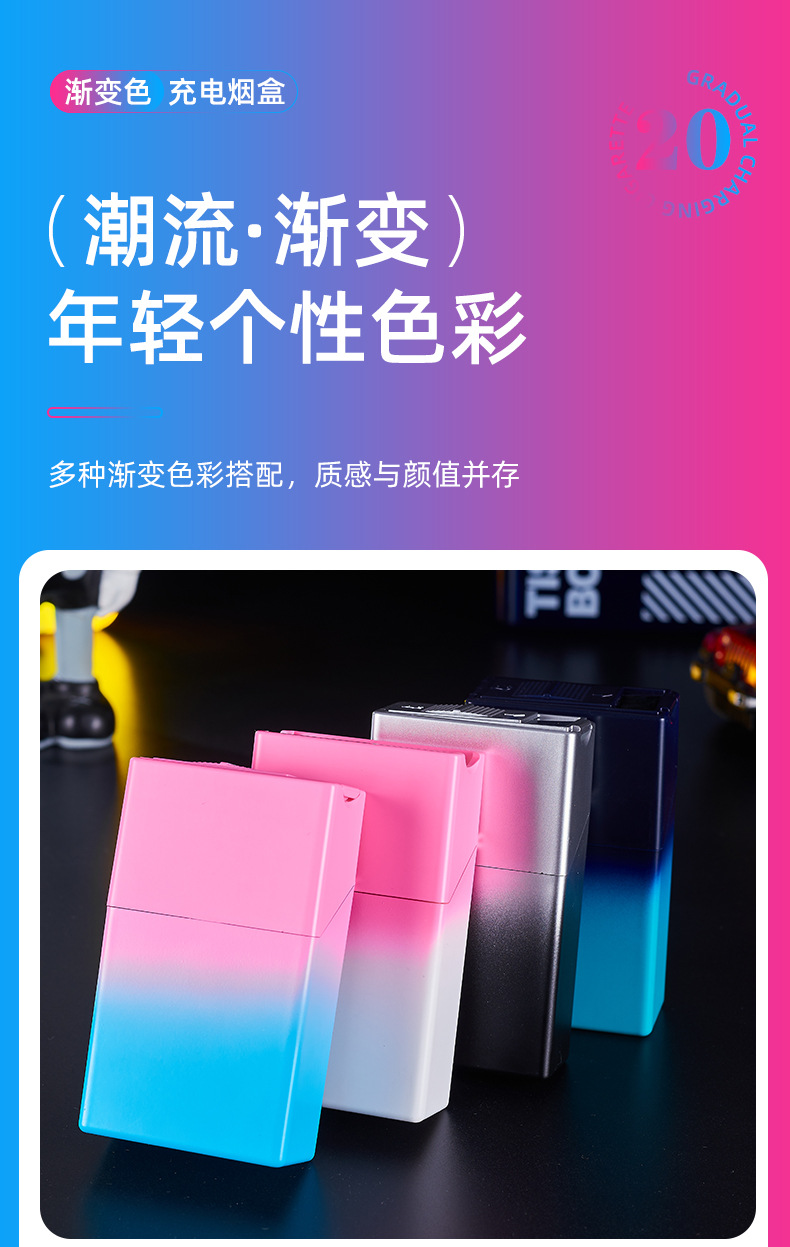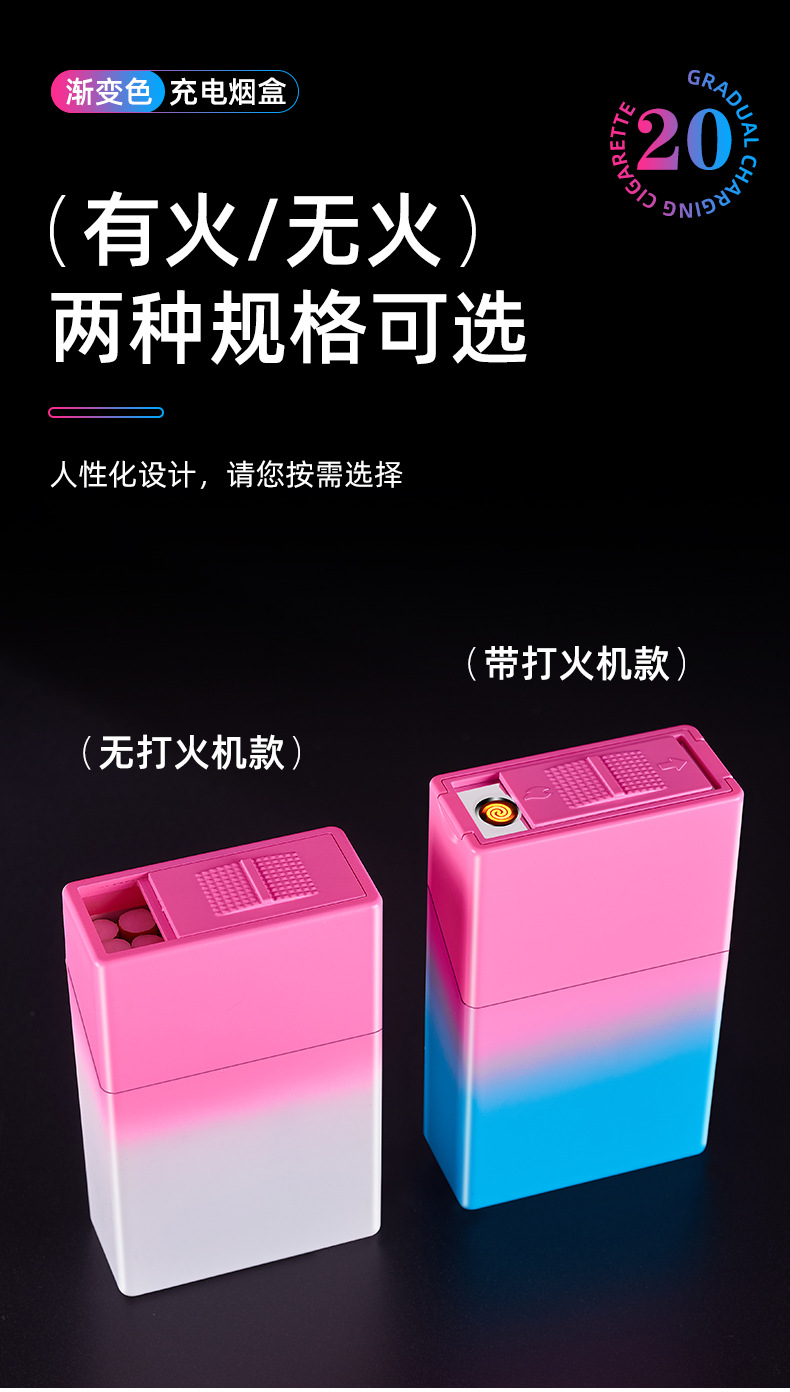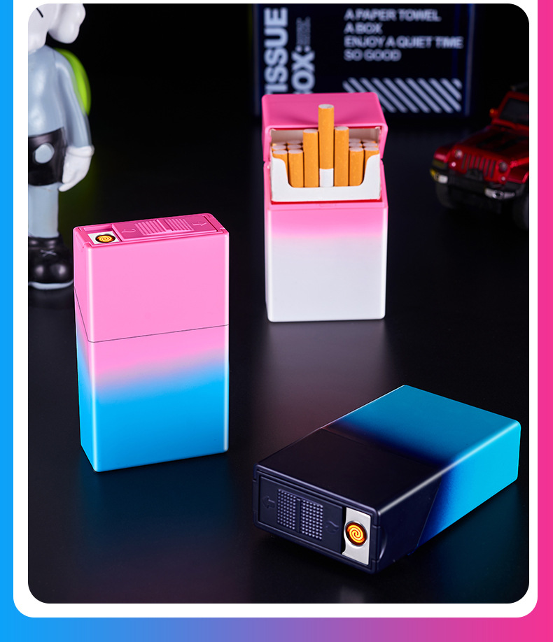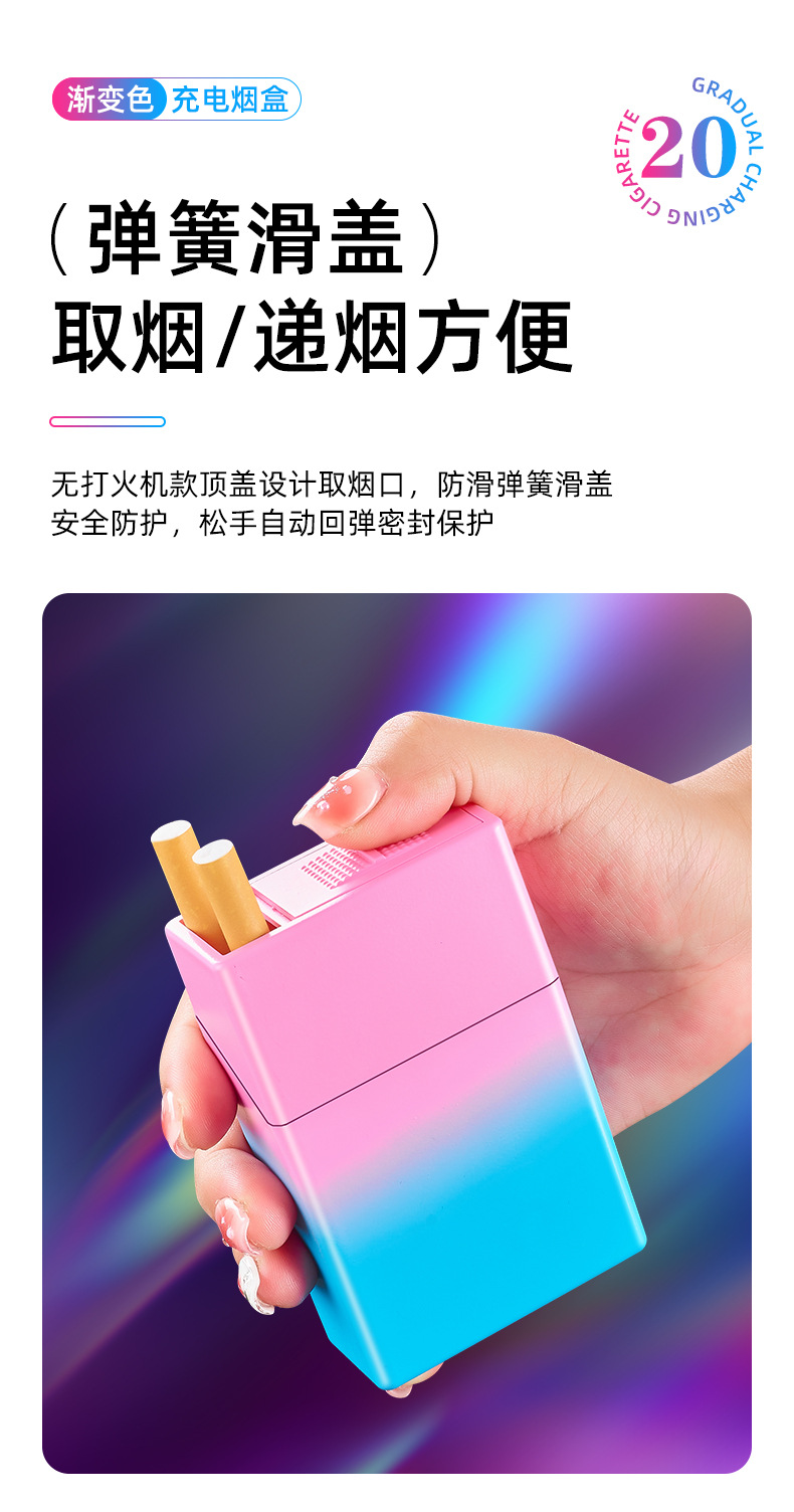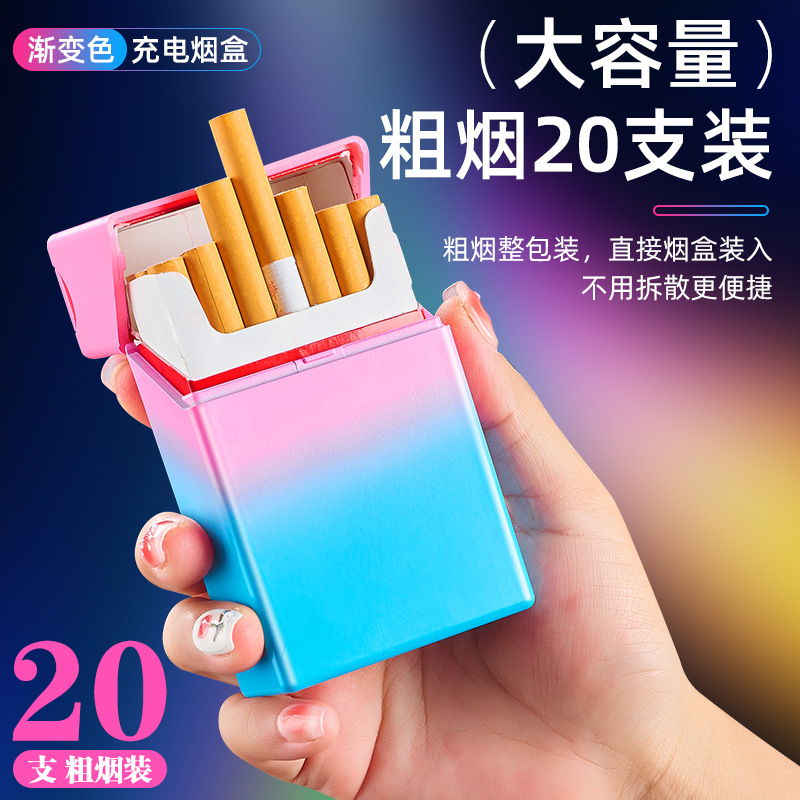 渐变烟盒点烟器充电打火机一体烟盒防风打火机哑光渐变喷漆烟盒