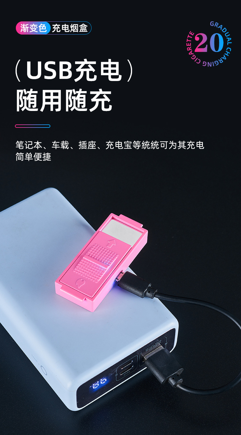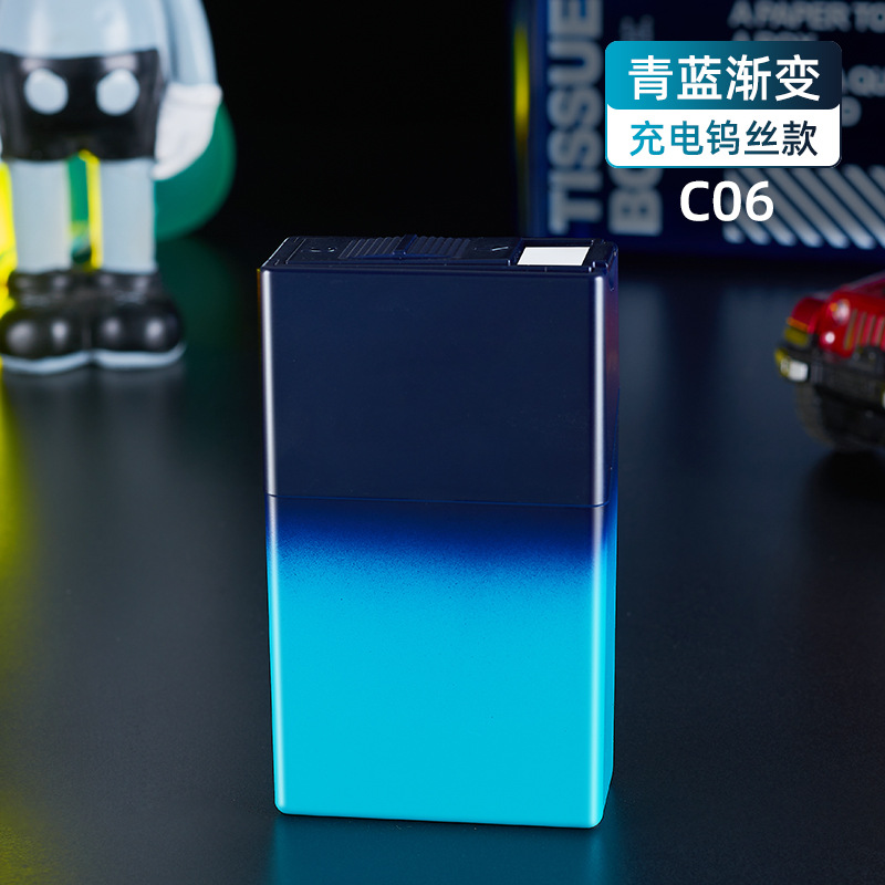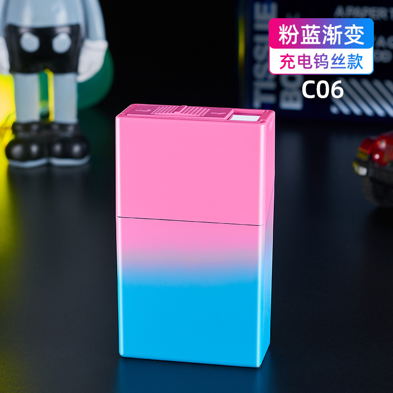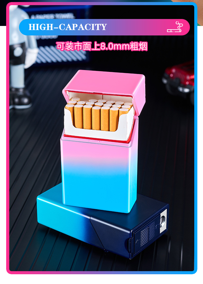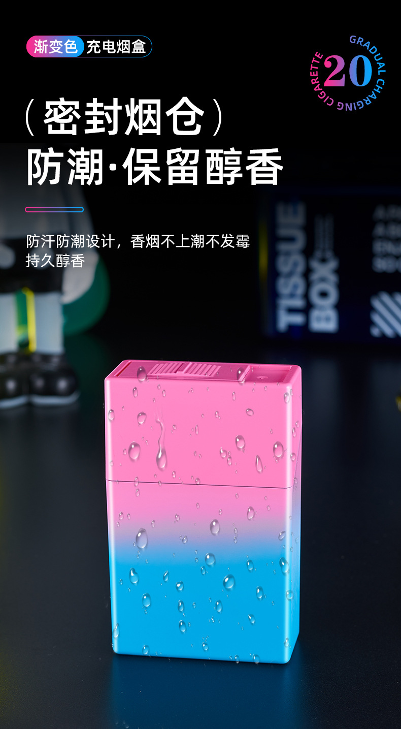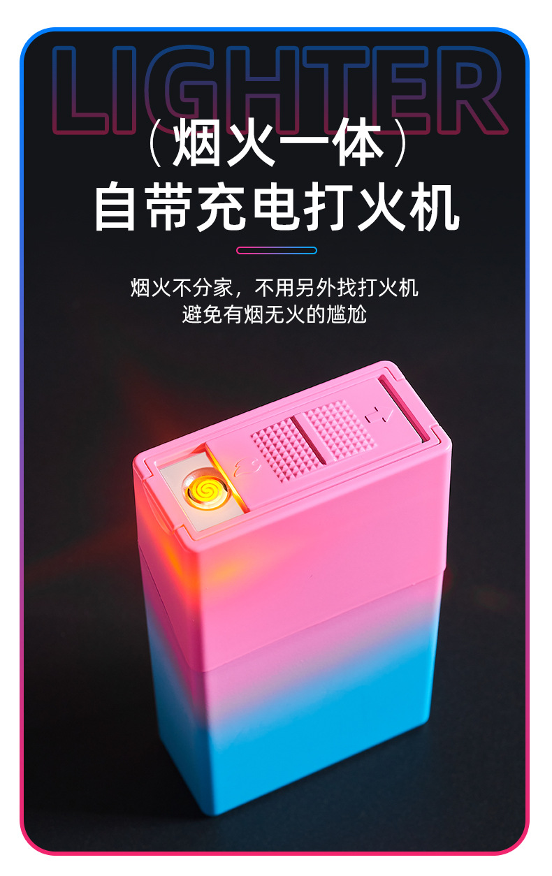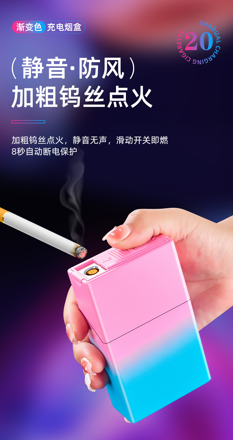 渐变烟盒点烟器充电打火机一体烟盒防风打火机哑光渐变喷漆烟盒