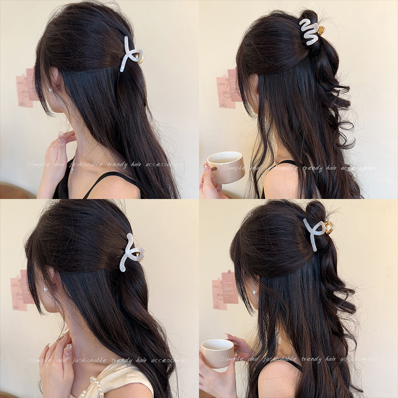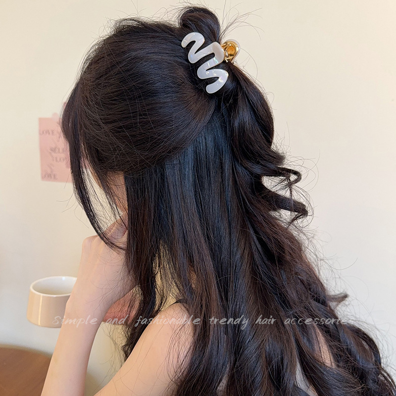 时尚气质波浪夹子镂空高马尾盘发器设计感醋酸几何形小号抓夹女