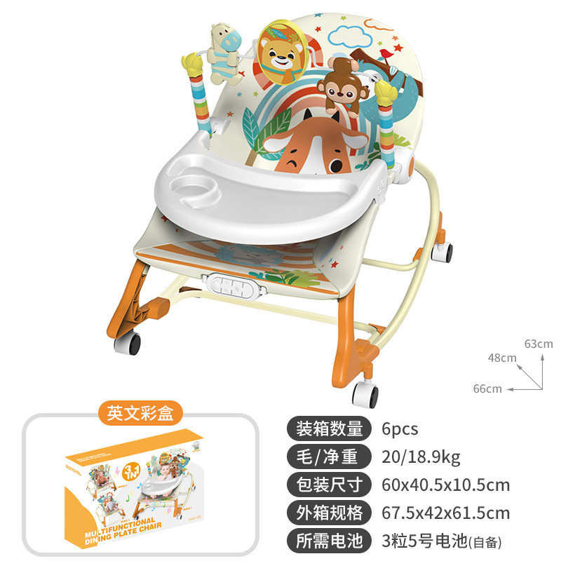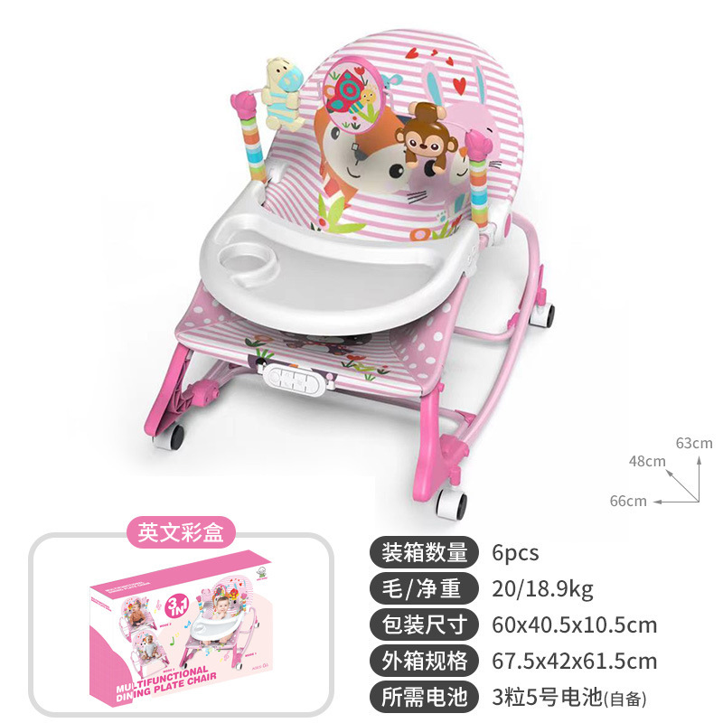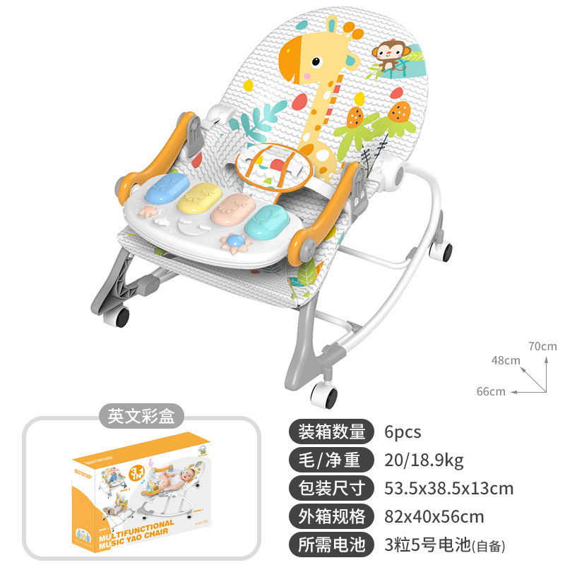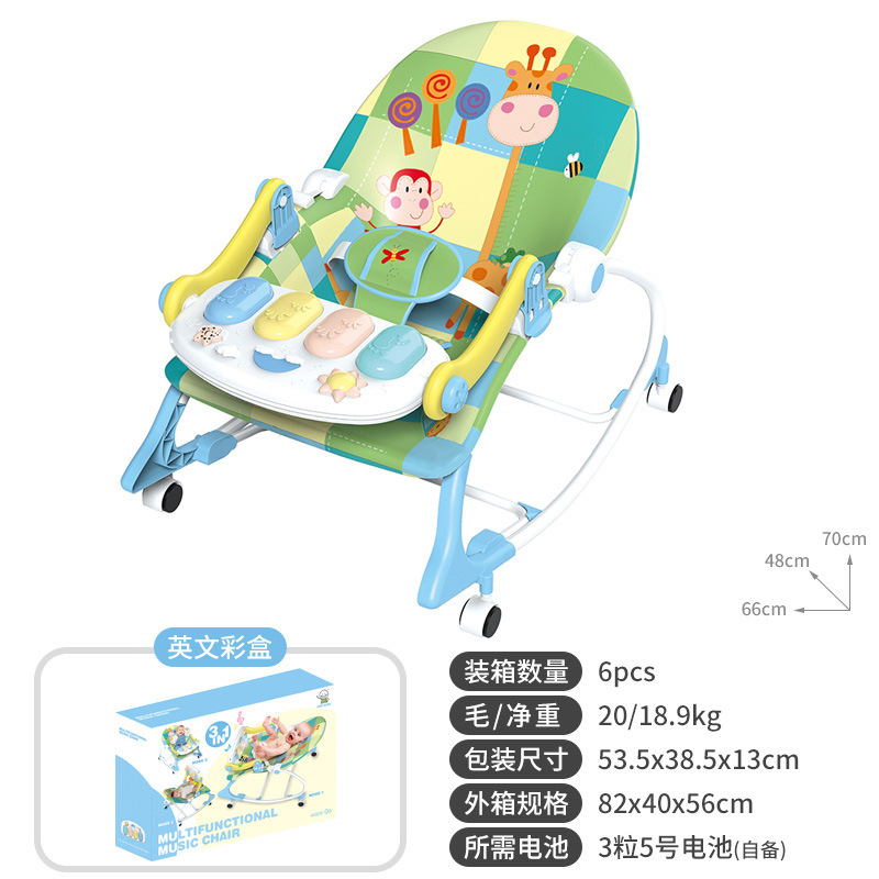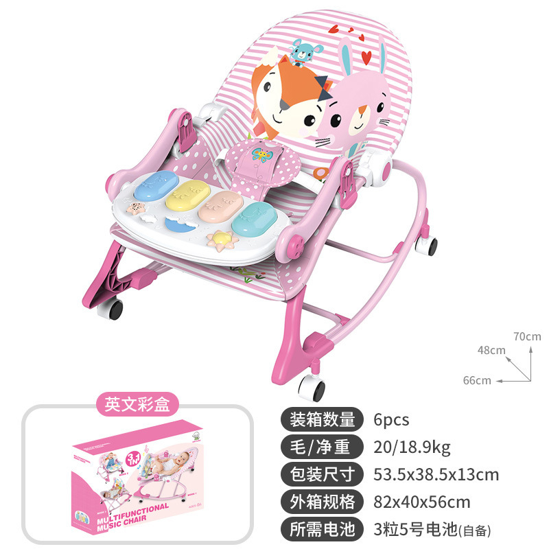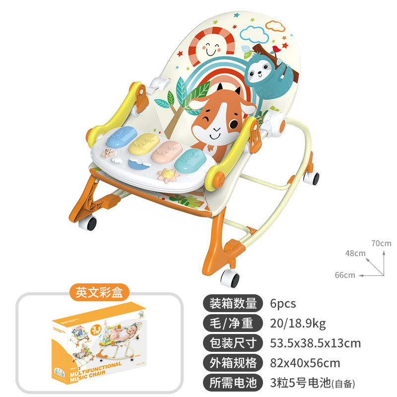 跨境婴儿音乐摇椅多功能摇摇椅带餐盘滑行推车安抚摇篮脚踏琴玩具