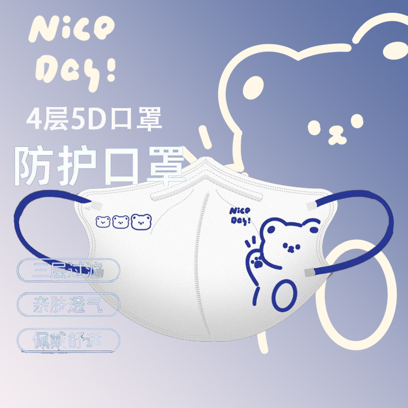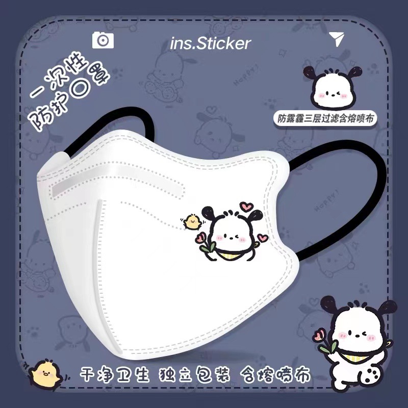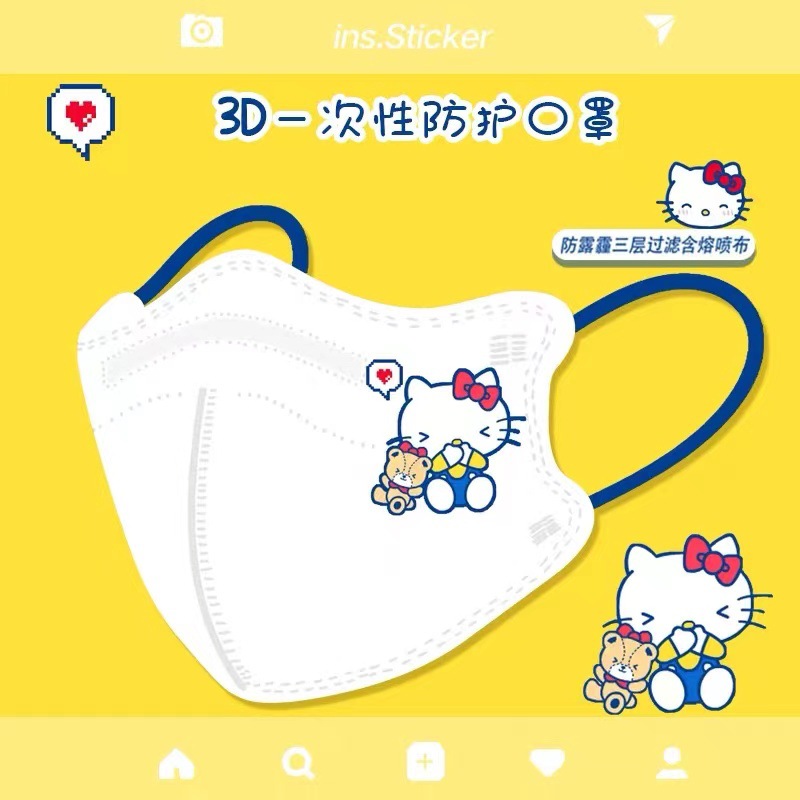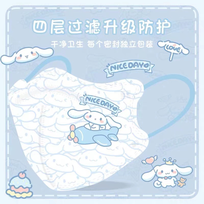 祥品家一次性独立装5D立体口罩防雾霾防尘卡通印花少女口罩成人