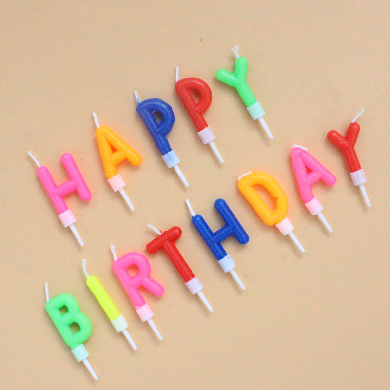 批发新品彩色生日快乐字母蜡烛 吸卡装HAPPYBIRTHDAY创意派对蜡烛