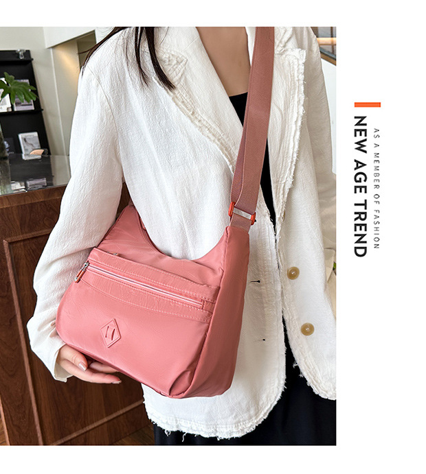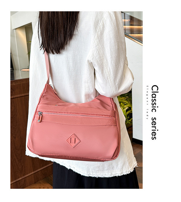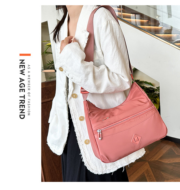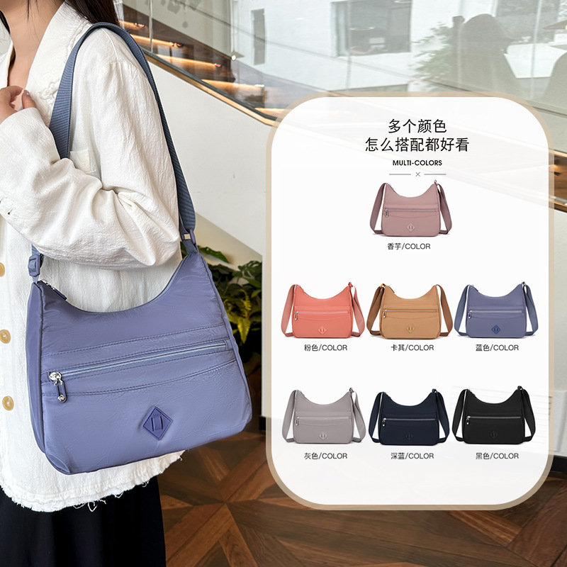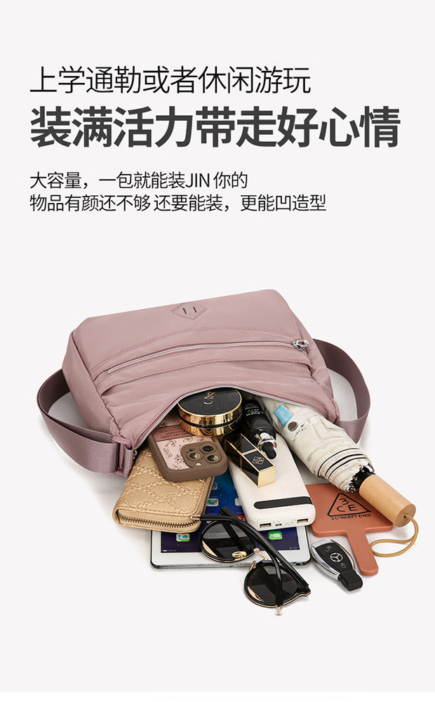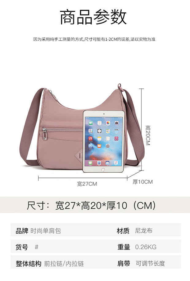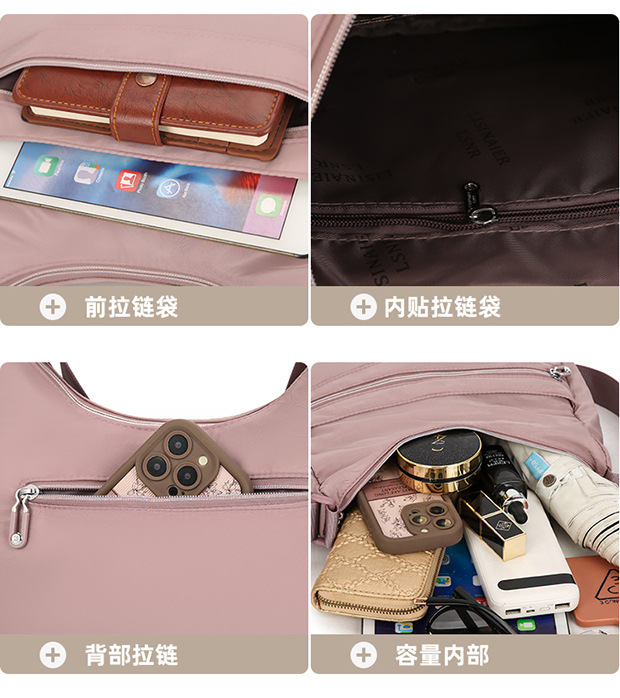 单肩包女跨境轻便大容量尼龙布斜挎包日常休闲多隔层中年妈妈包潮