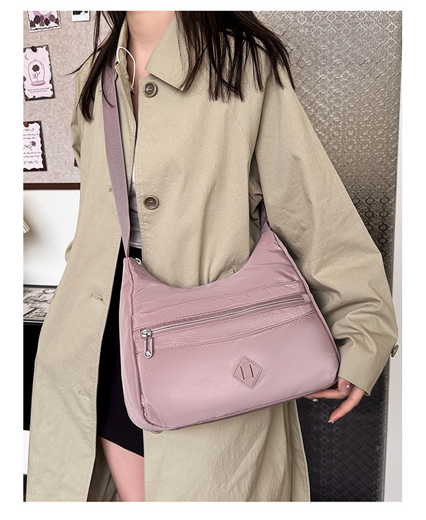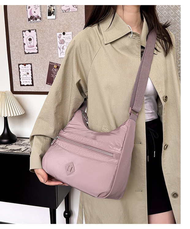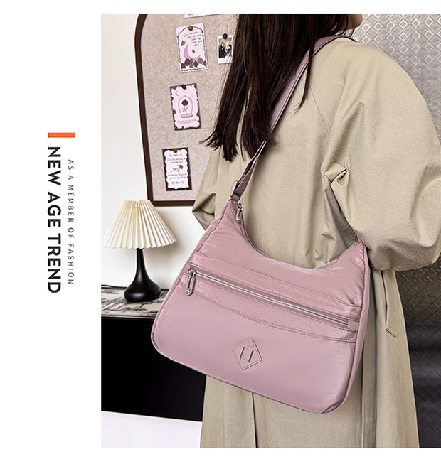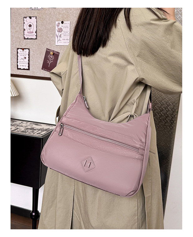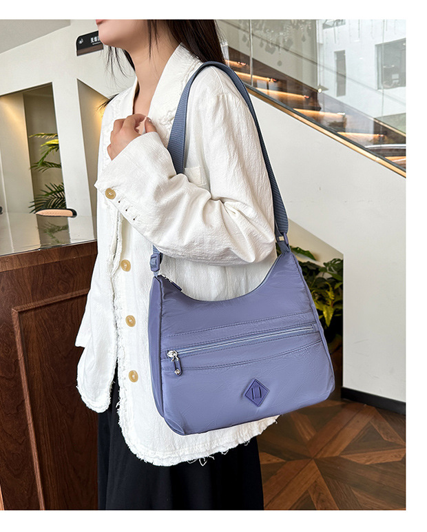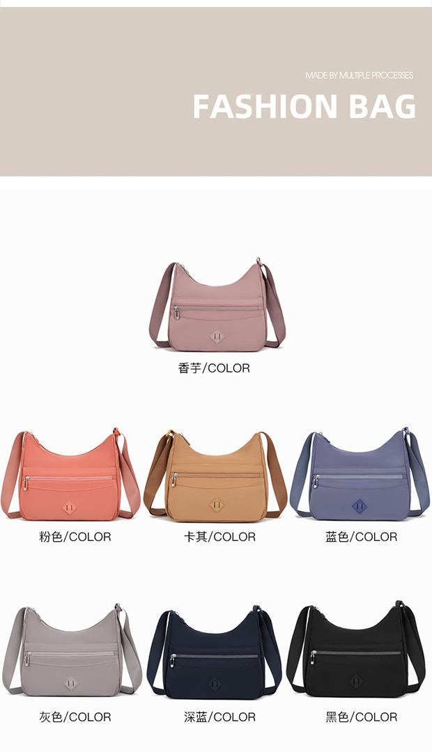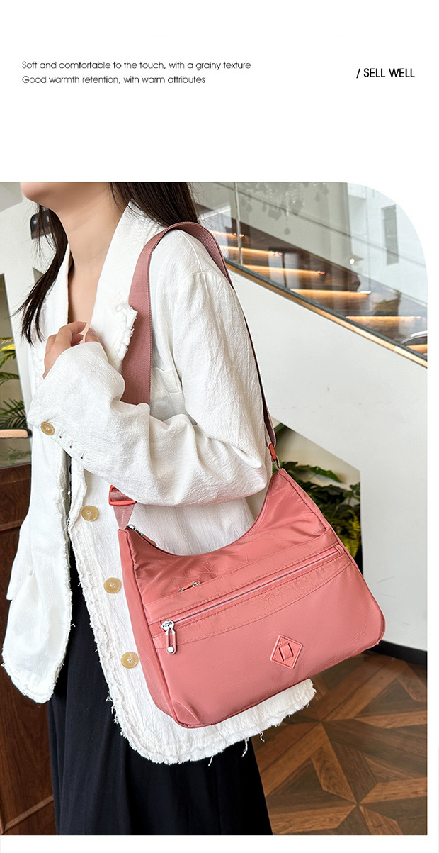 单肩包女跨境轻便大容量尼龙布斜挎包日常休闲多隔层中年妈妈包潮