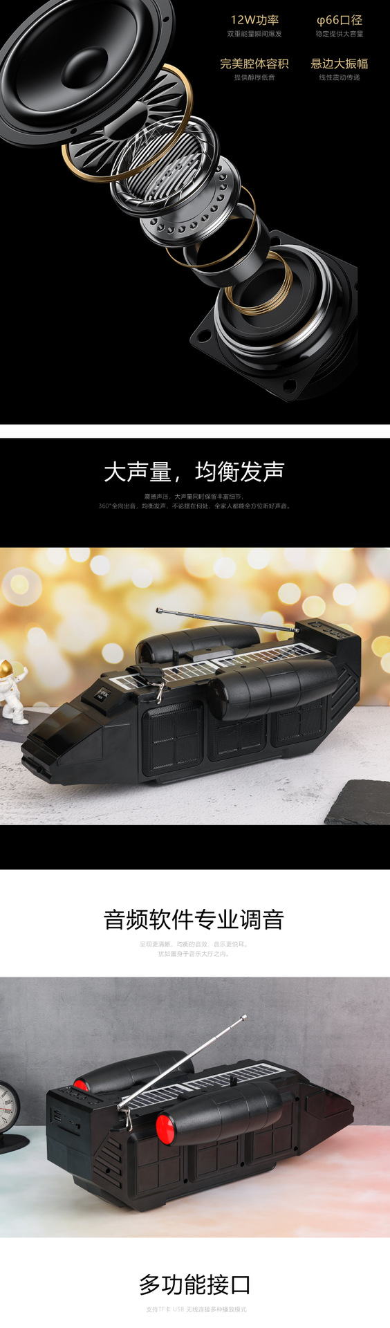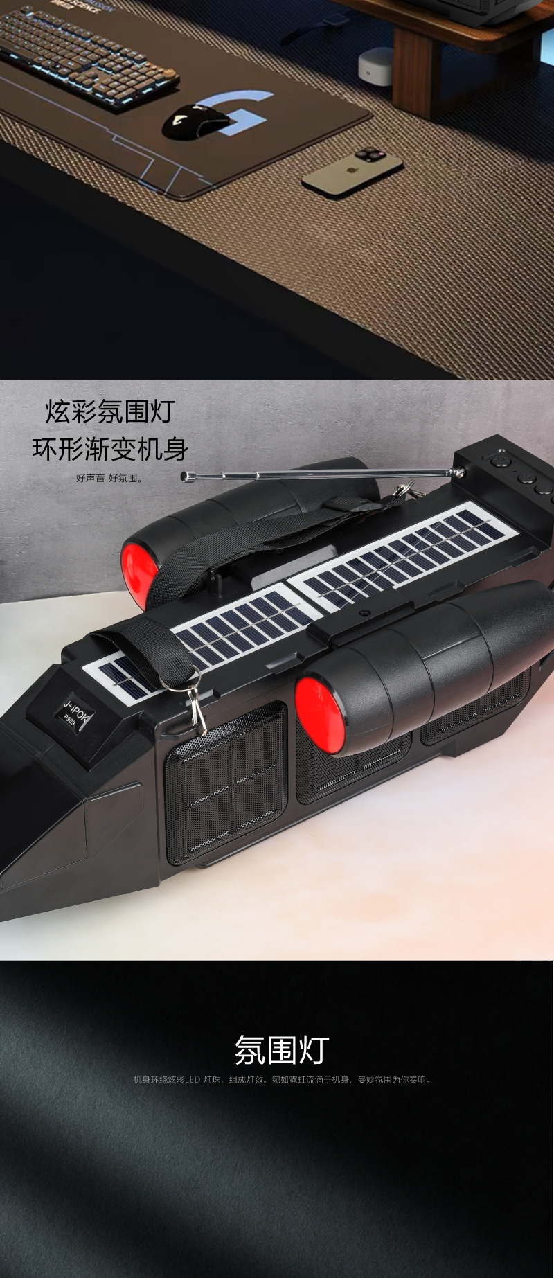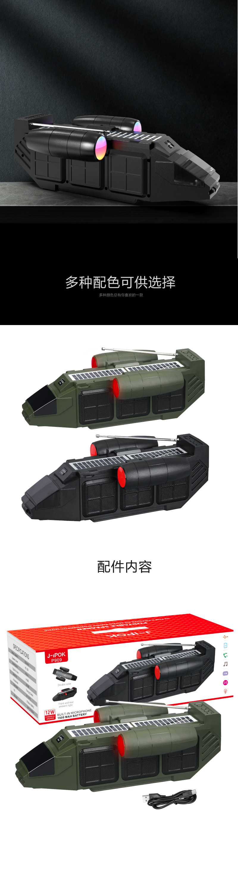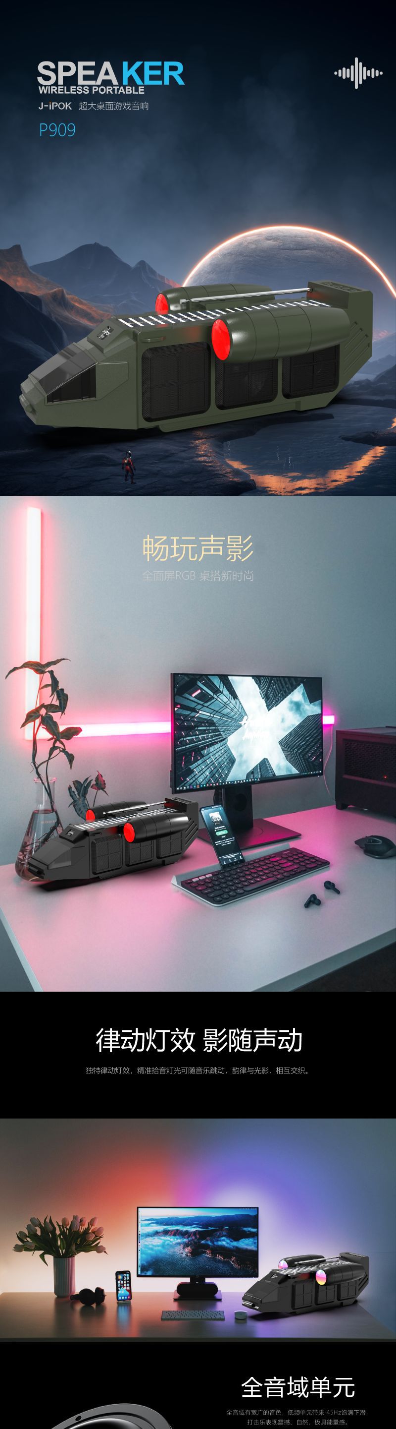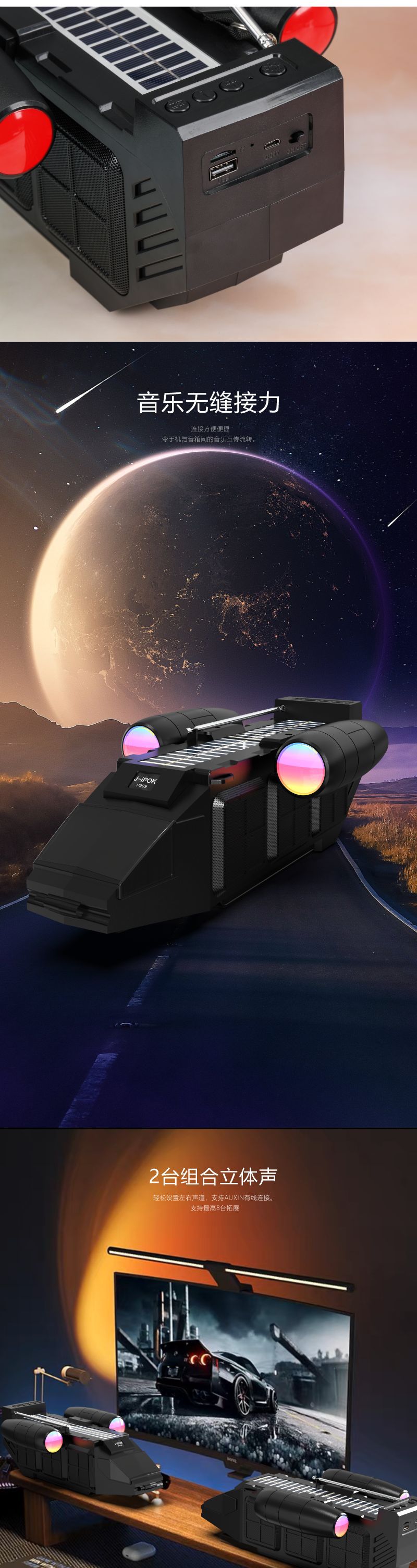 J-ipok P909跨境新款桌面蓝牙音箱飞船系列太阳能款音响无线音响