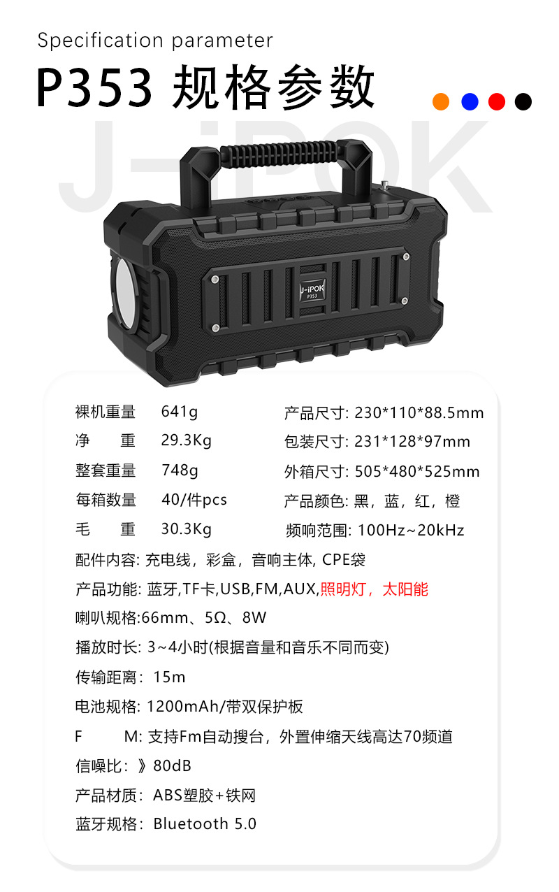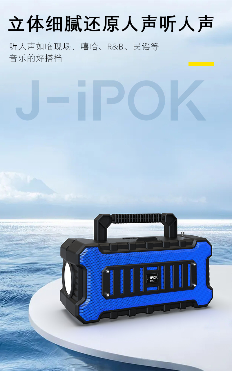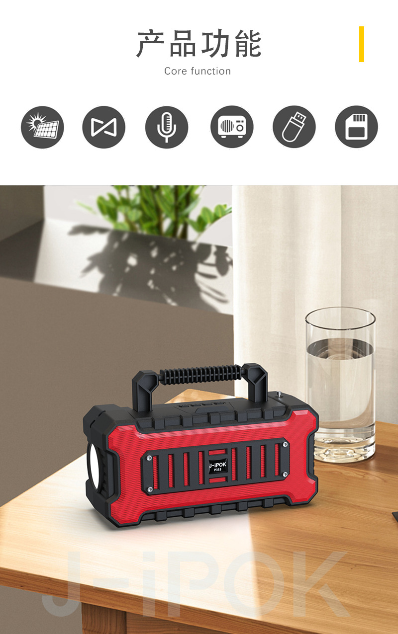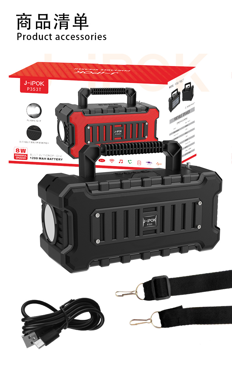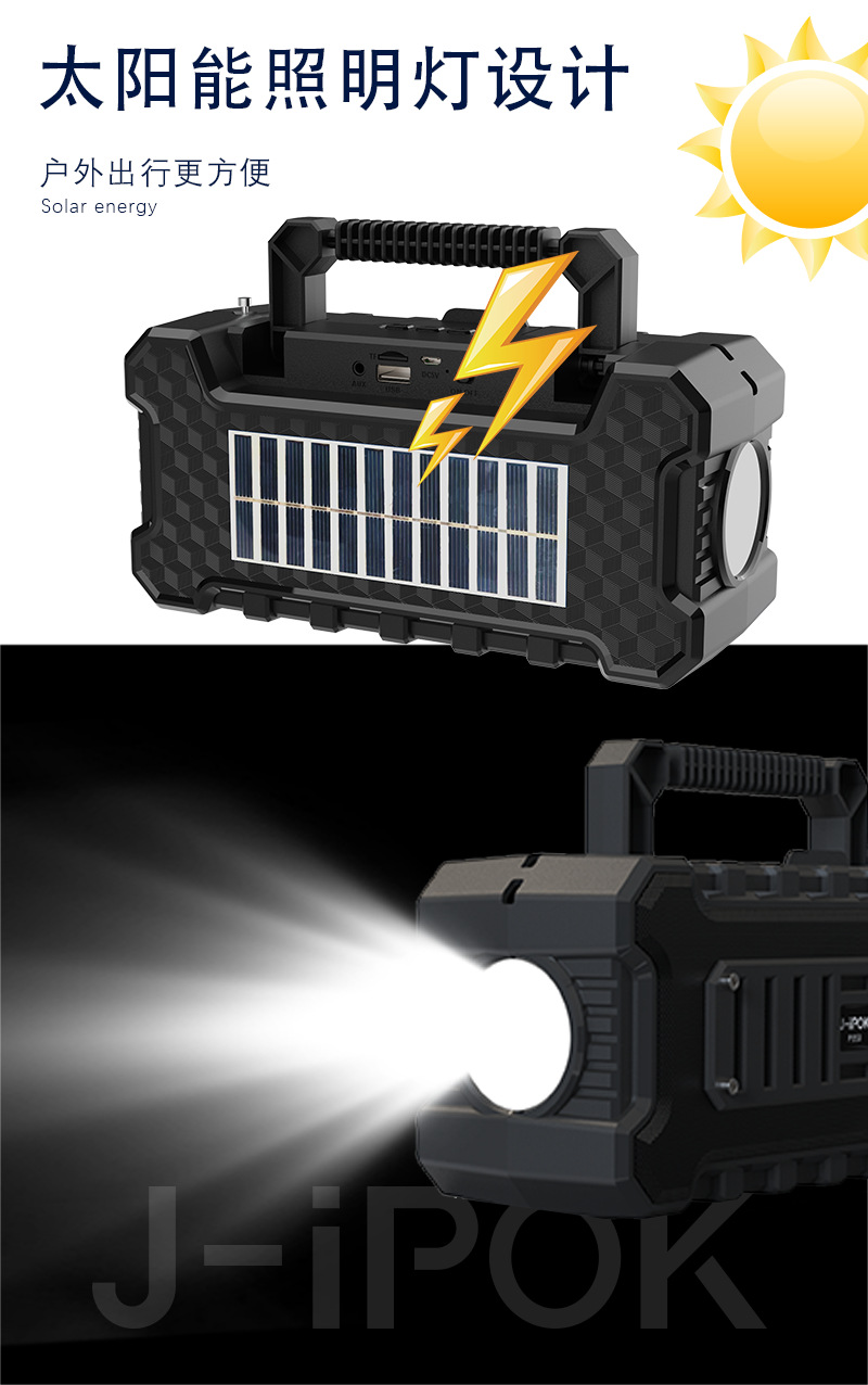 J-ipok P353跨境新款带太阳能手电筒便携式手提无线蓝牙音箱音响