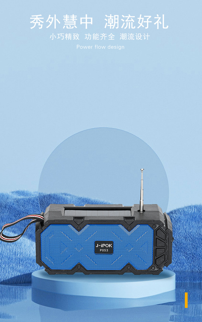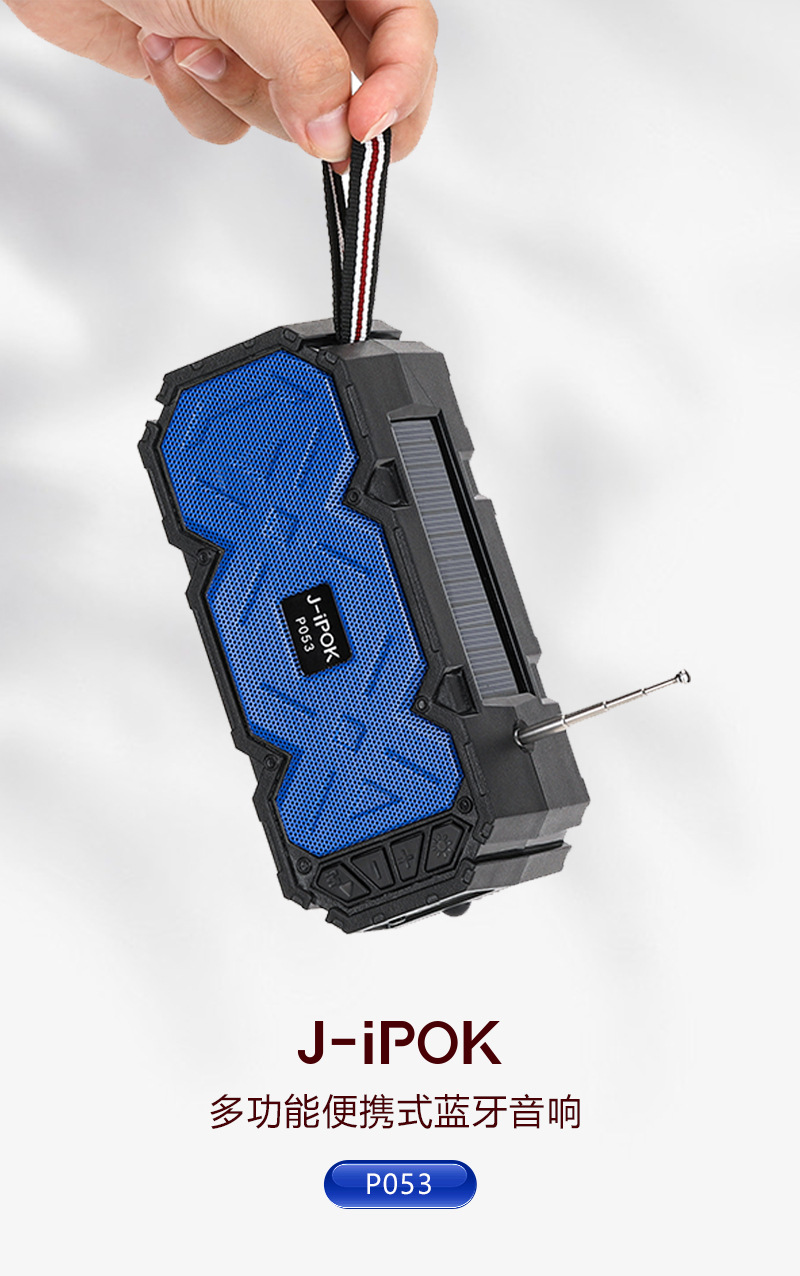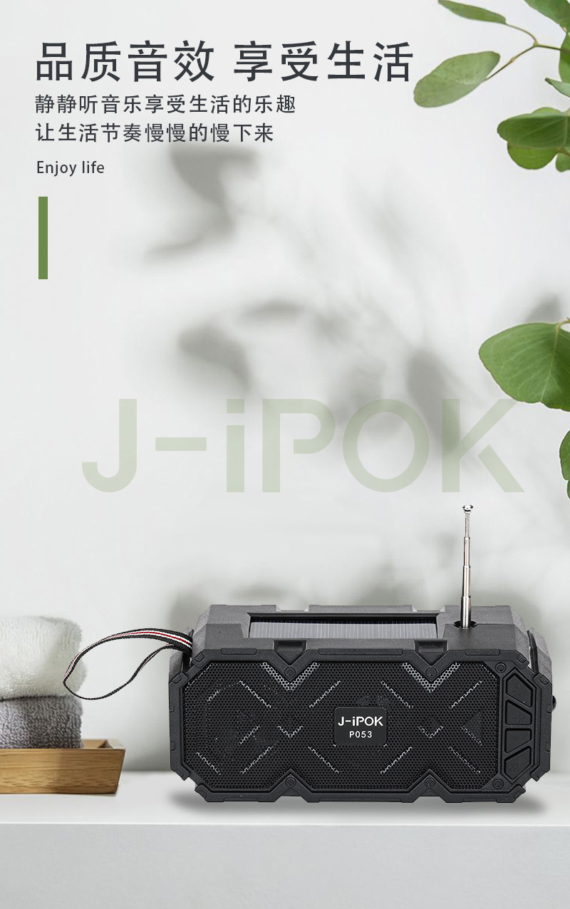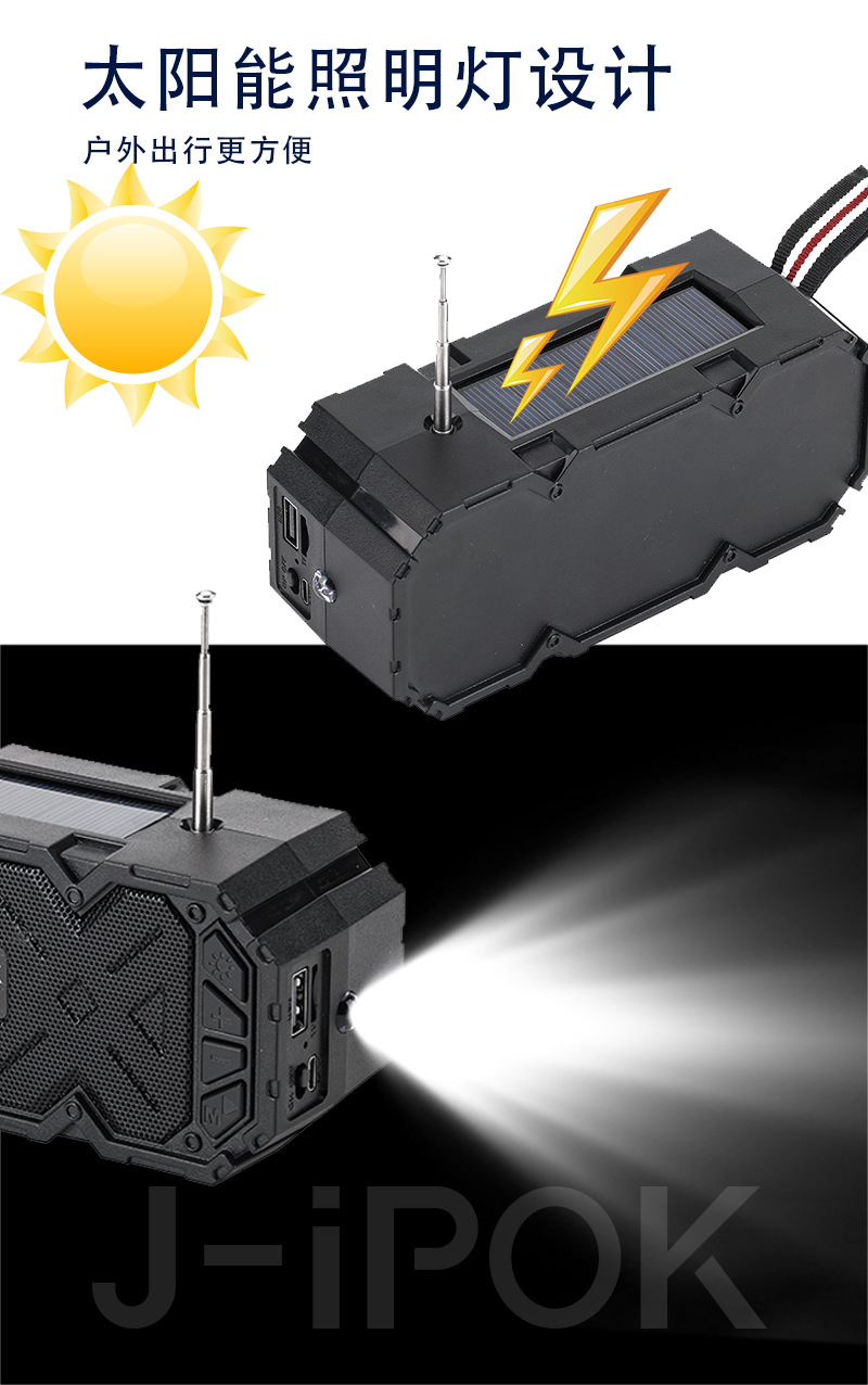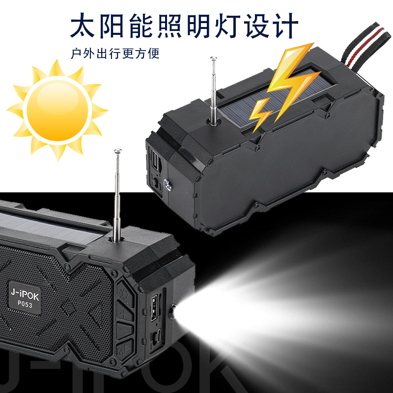 J-iPOK P053跨境便携式太阳能音像手电筒多功能桌面户外蓝牙音响