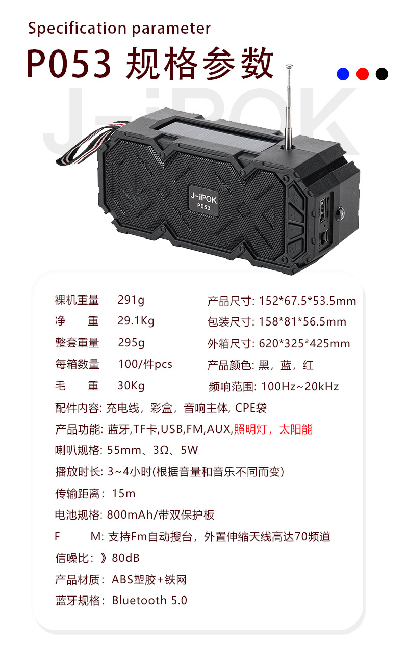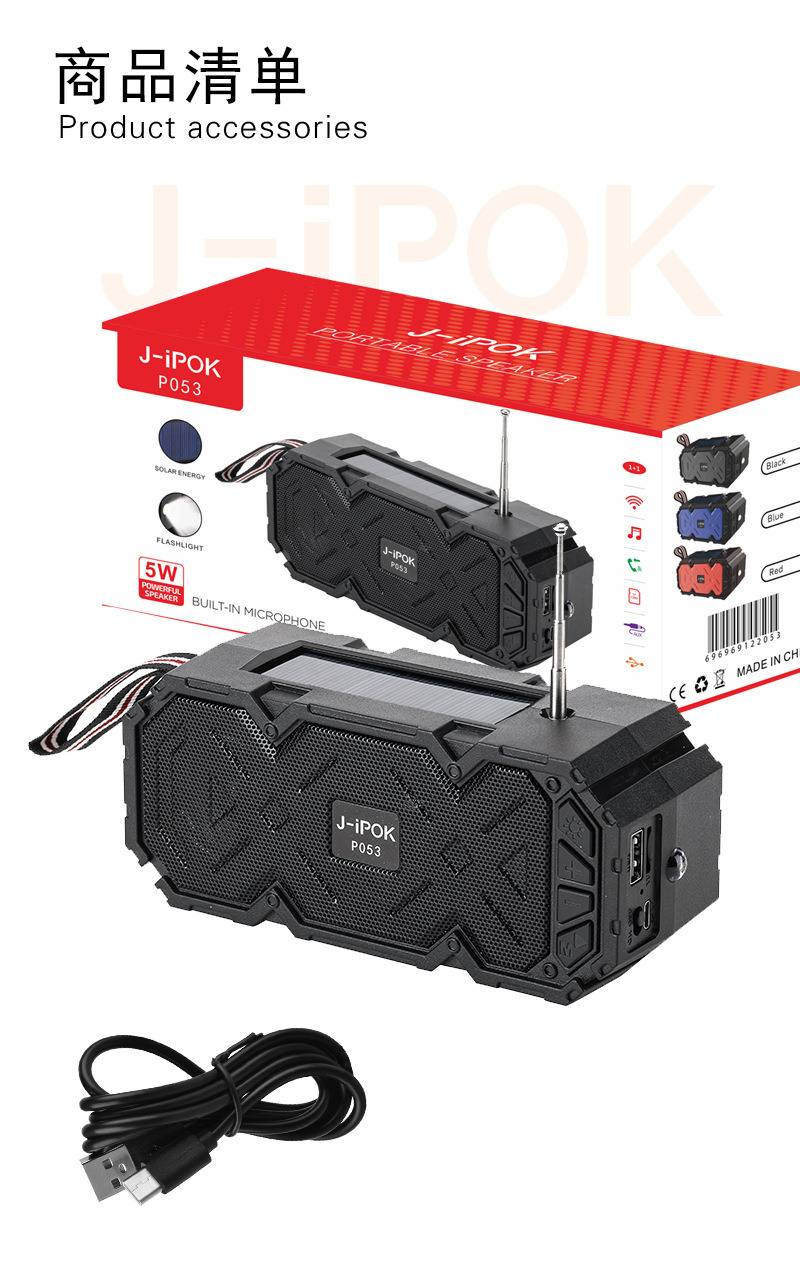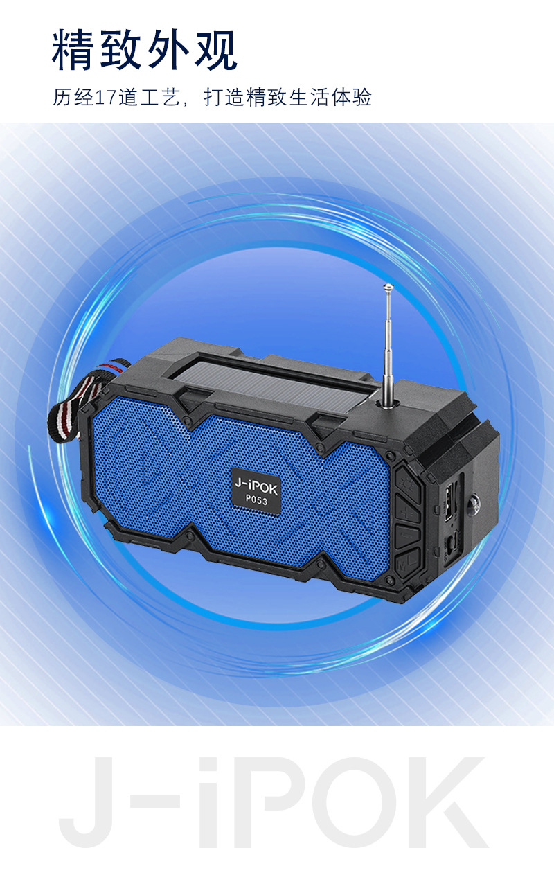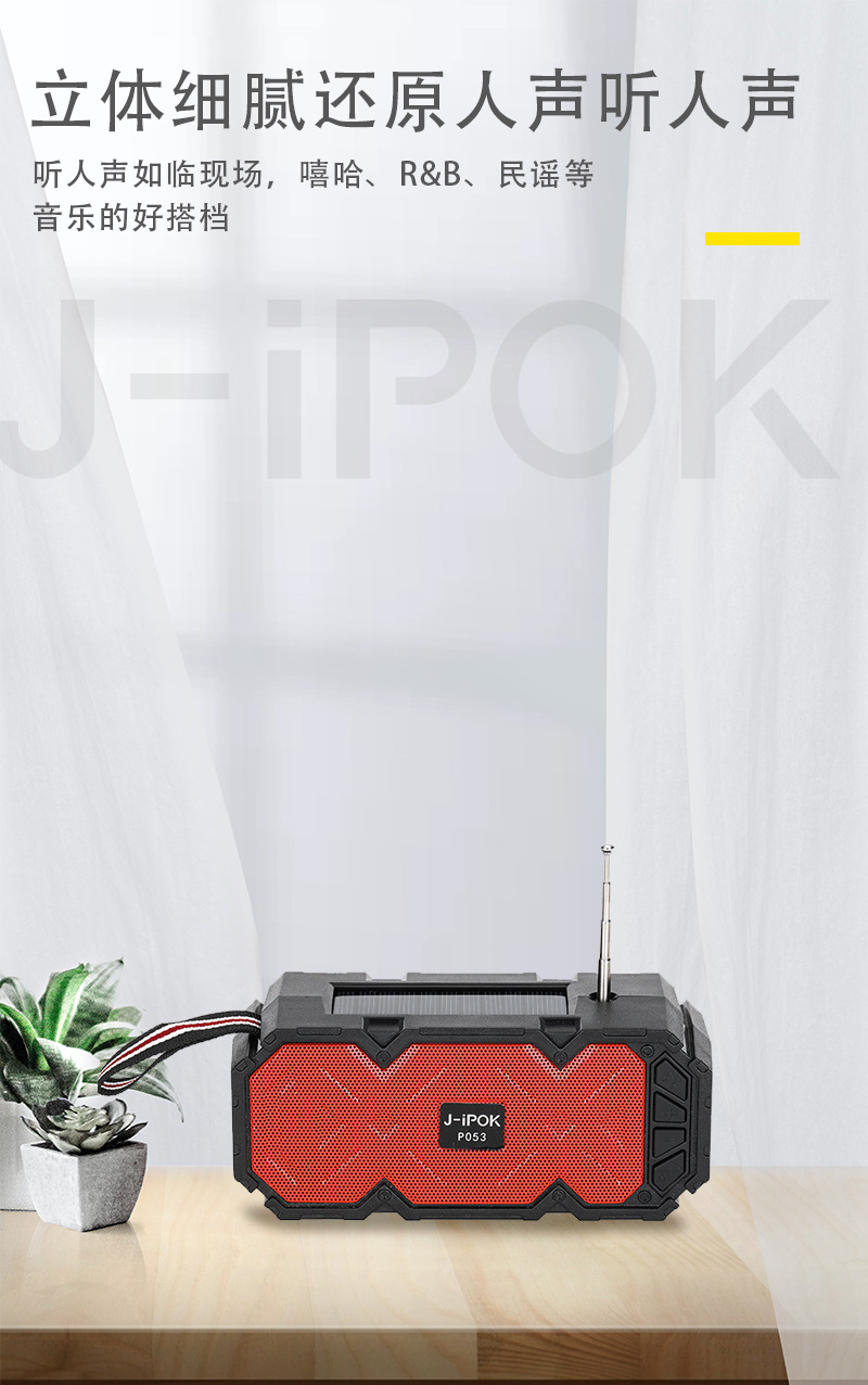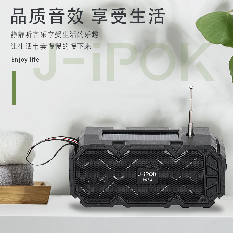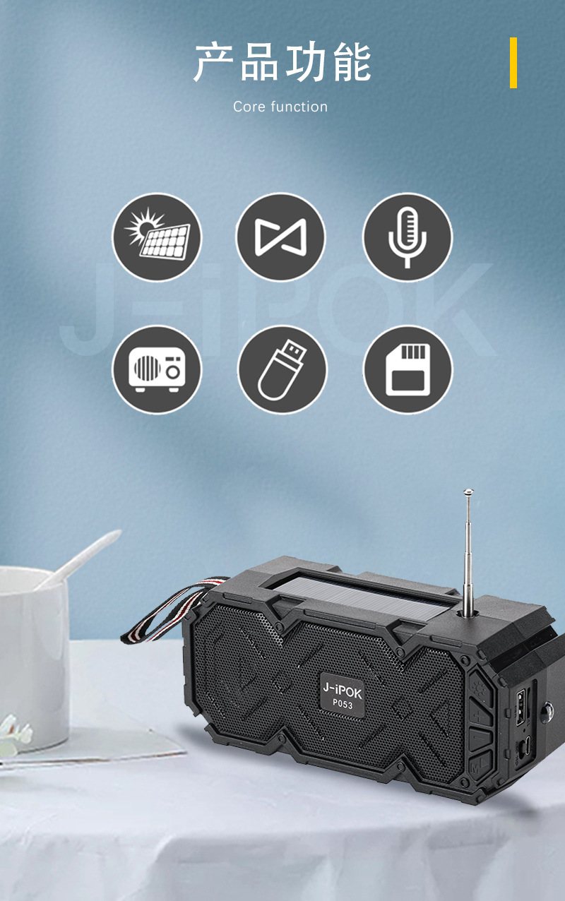 J-iPOK P053跨境便携式太阳能音像手电筒多功能桌面户外蓝牙音响