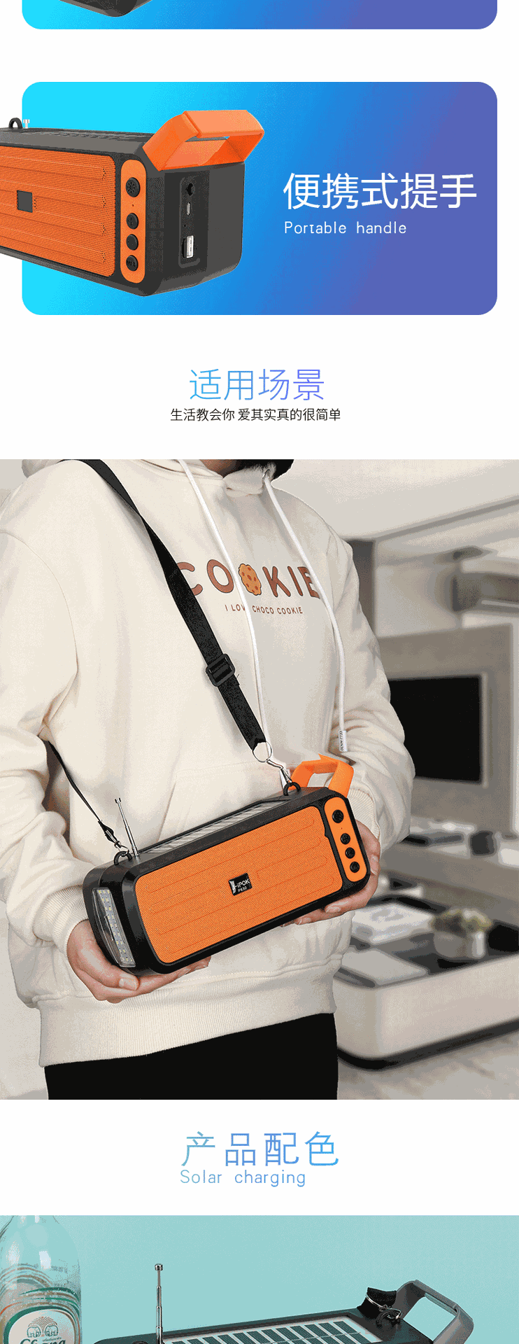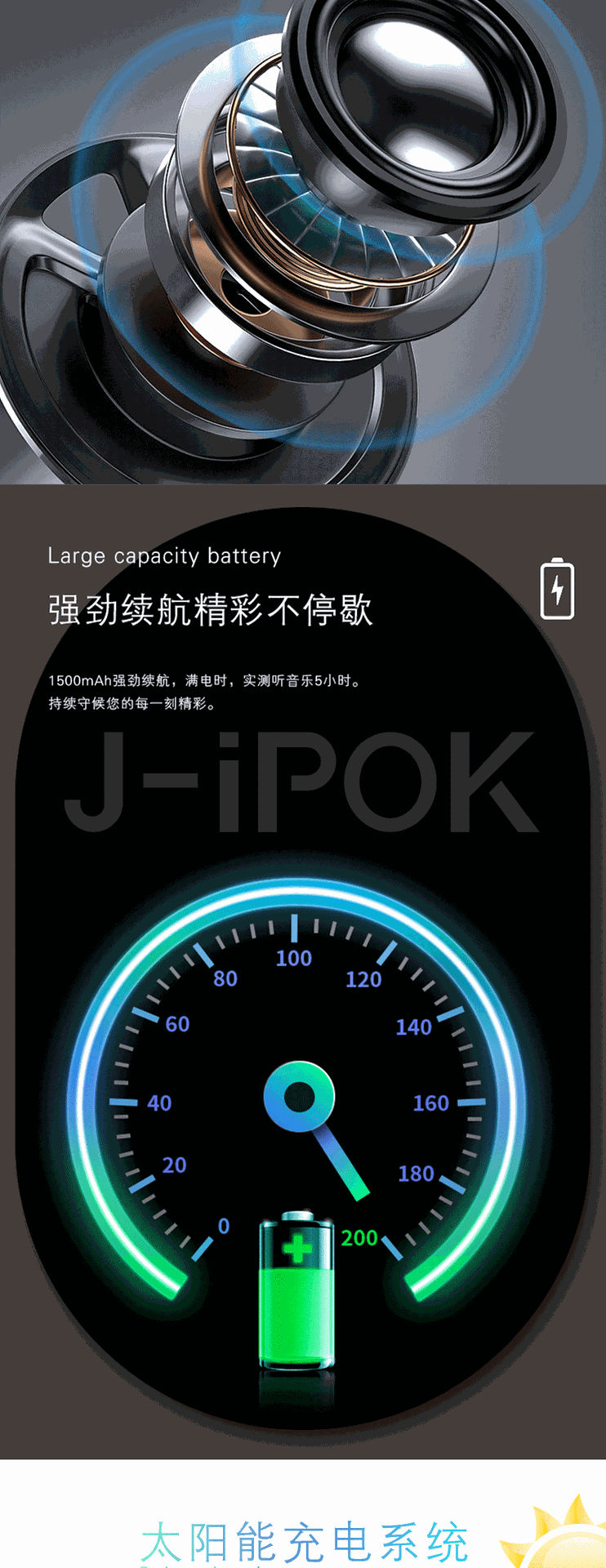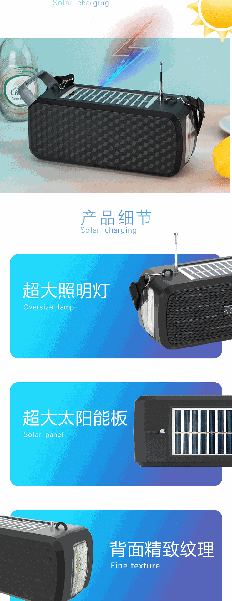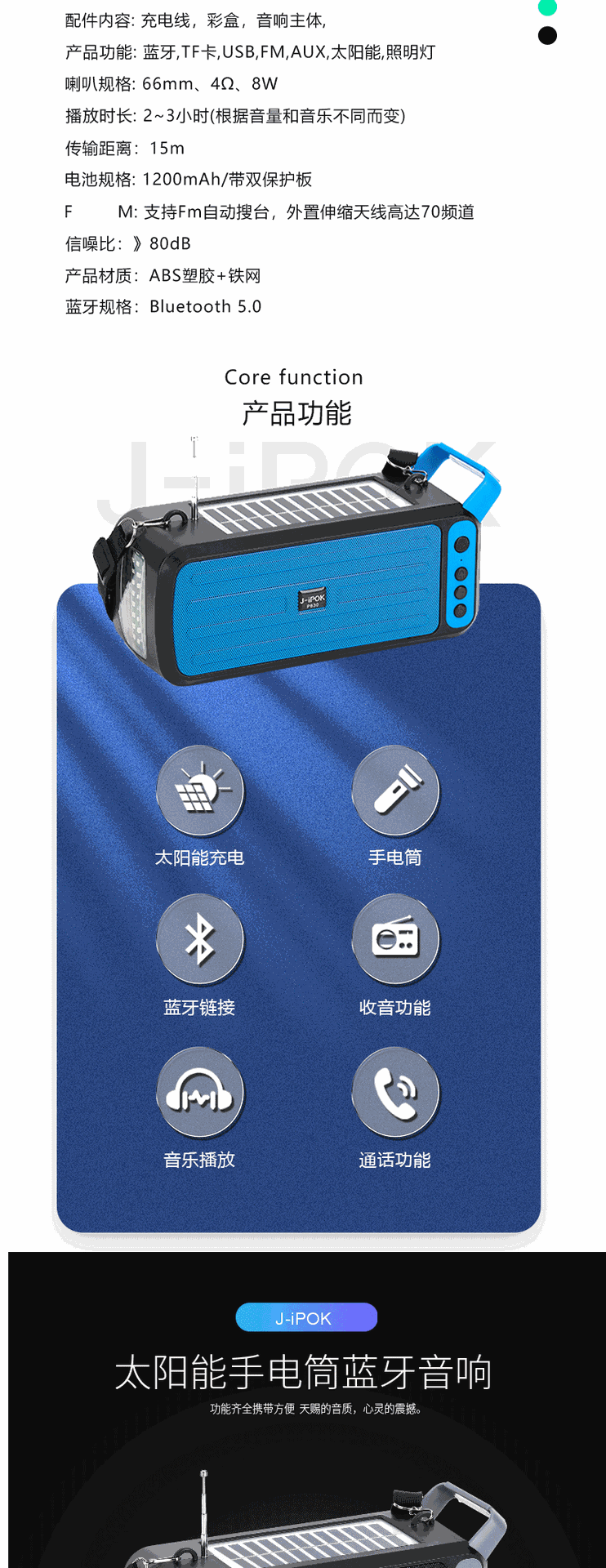 J-iPOK P630跨境便携式音箱太阳能手电筒多功能户外无线蓝牙音响