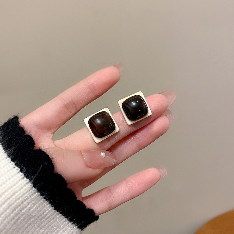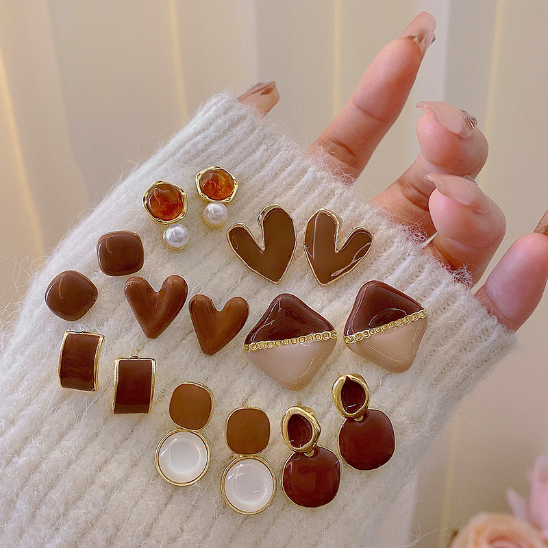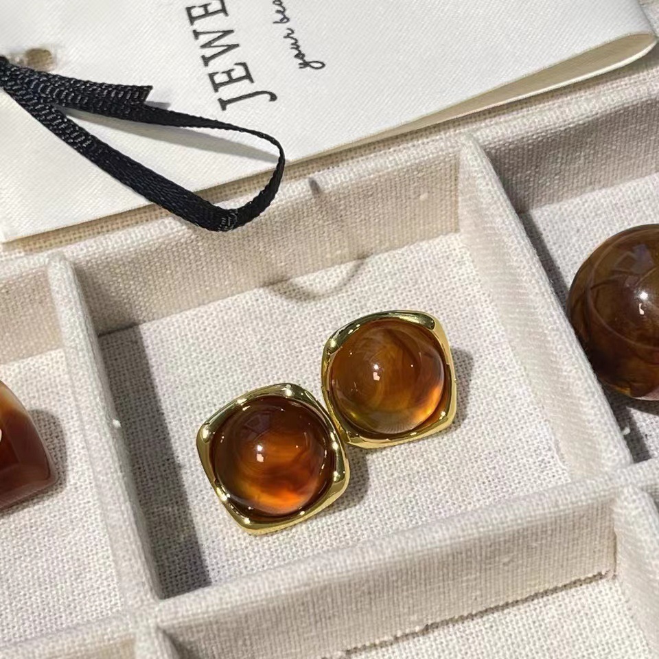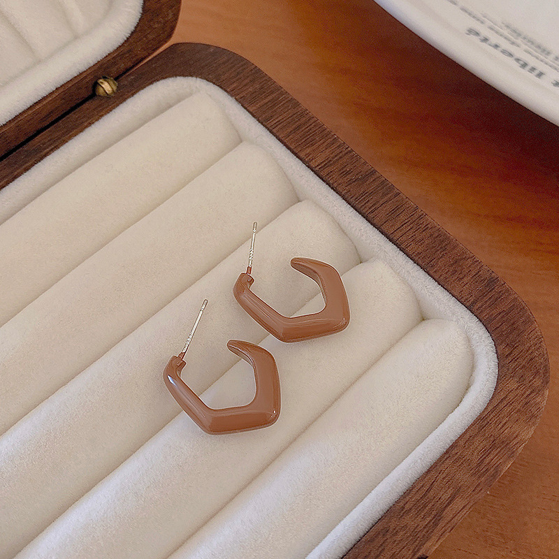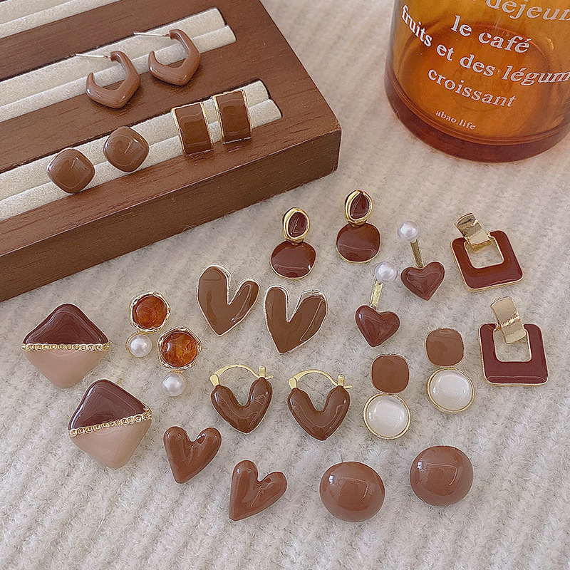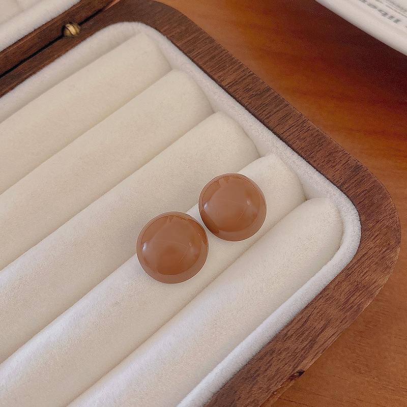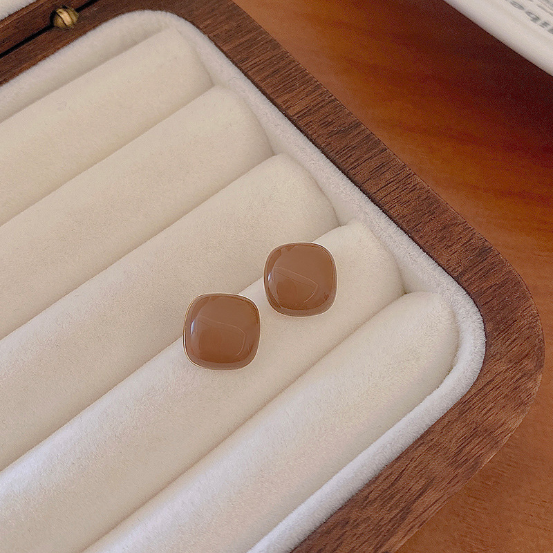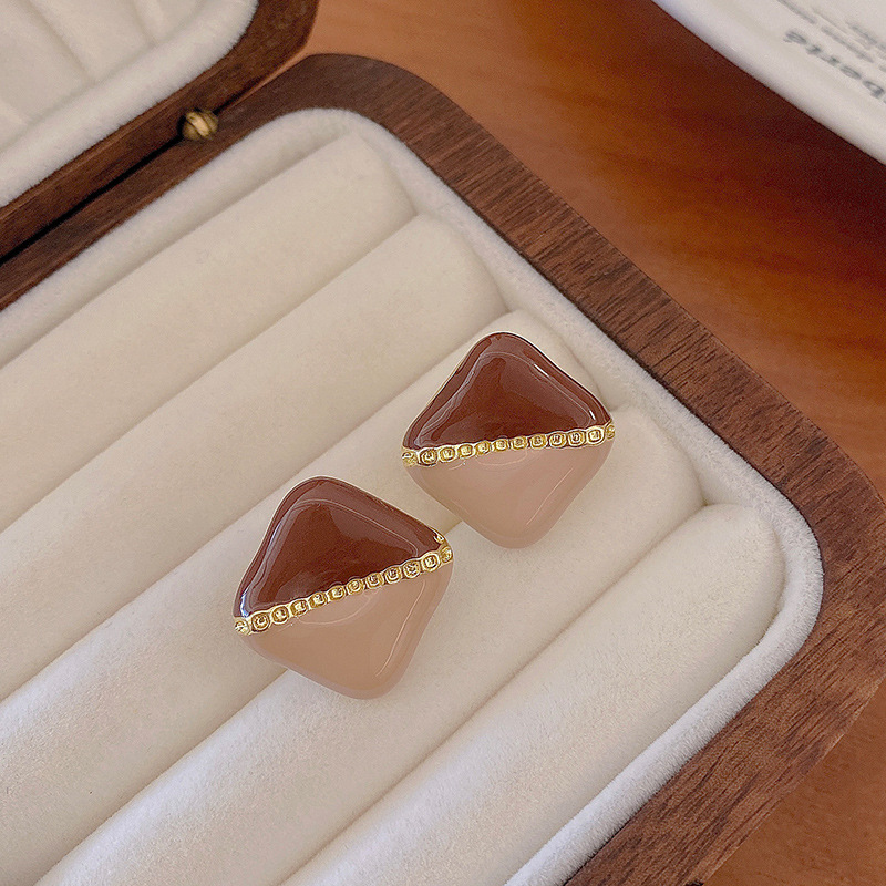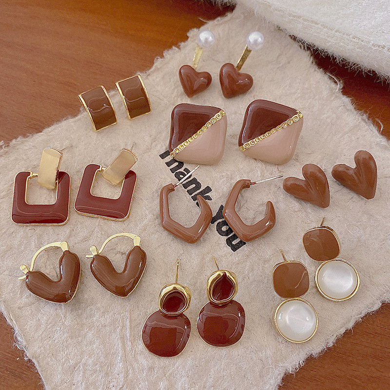 美拉德风925银针咖色耳环女轻奢复古高级感耳钉简约百搭耳饰批发