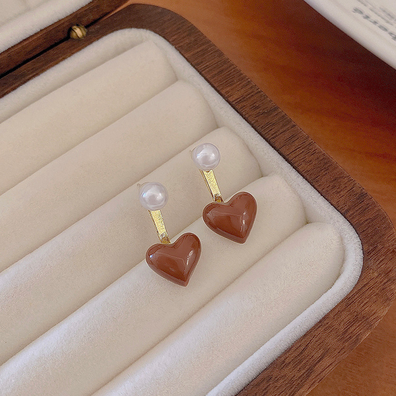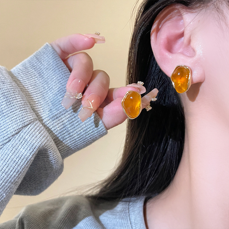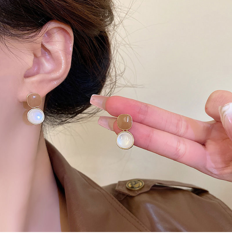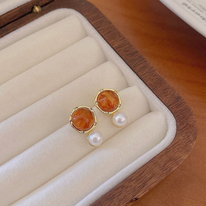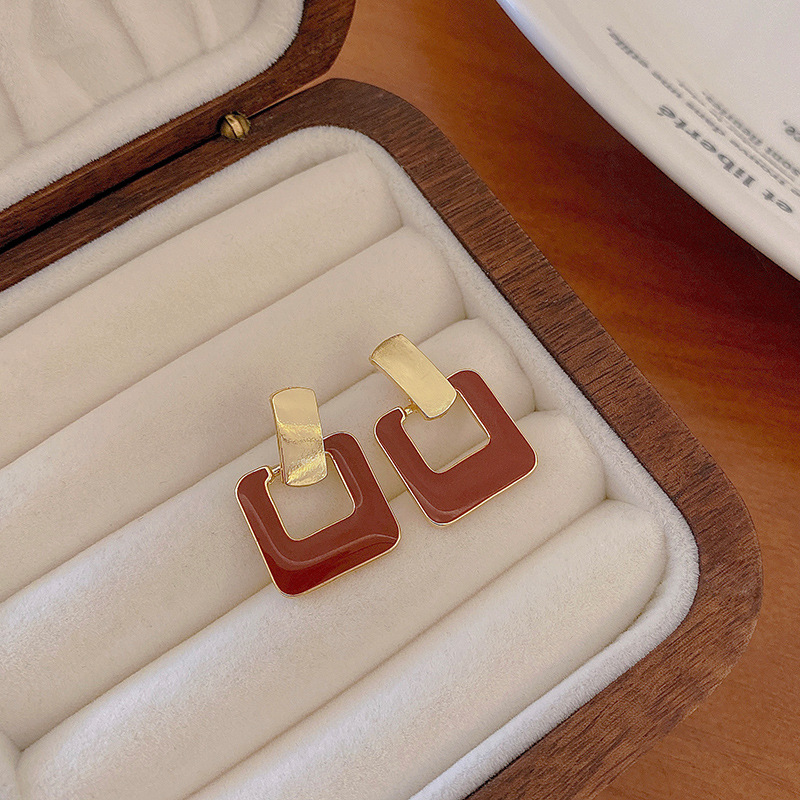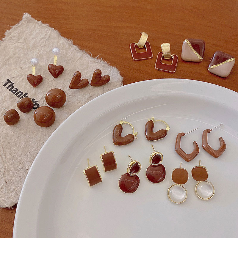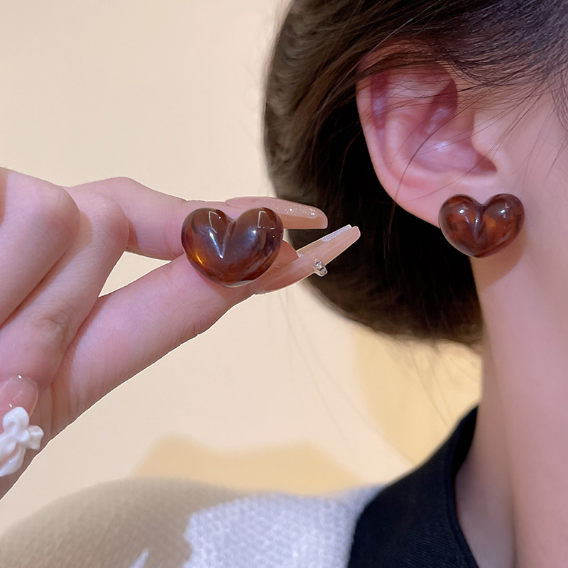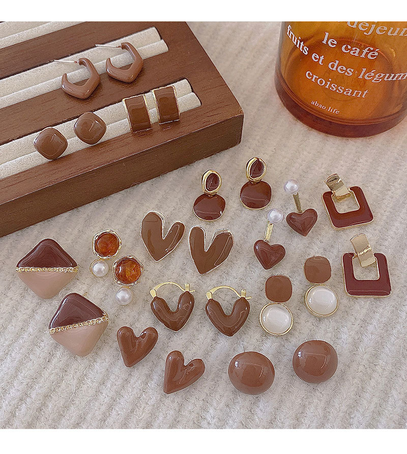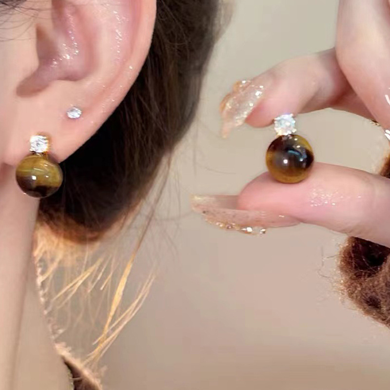 美拉德风925银针咖色耳环女轻奢复古高级感耳钉简约百搭耳饰批发