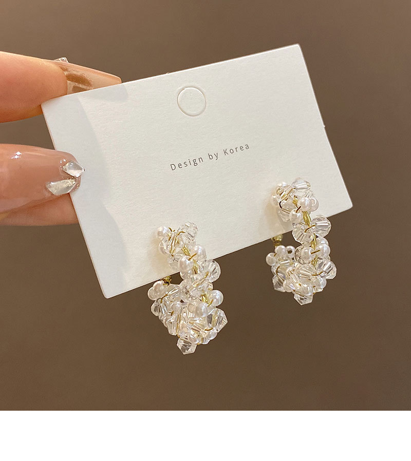 S925银针水晶C形耳钉女轻奢小众设计高级感耳环韩国新款气质耳饰
