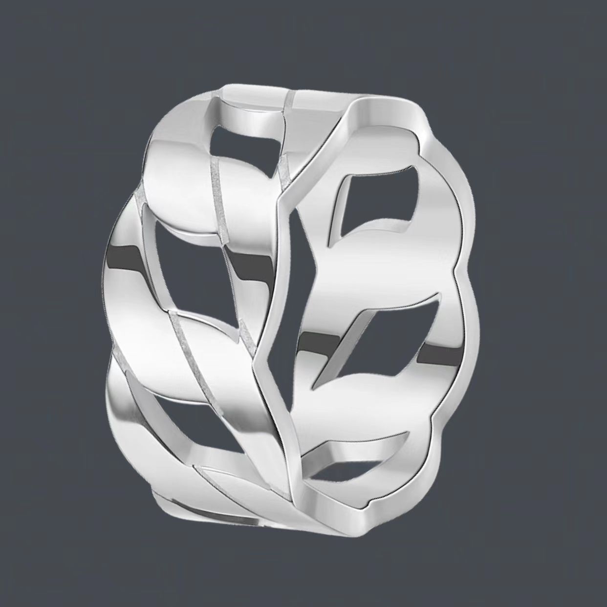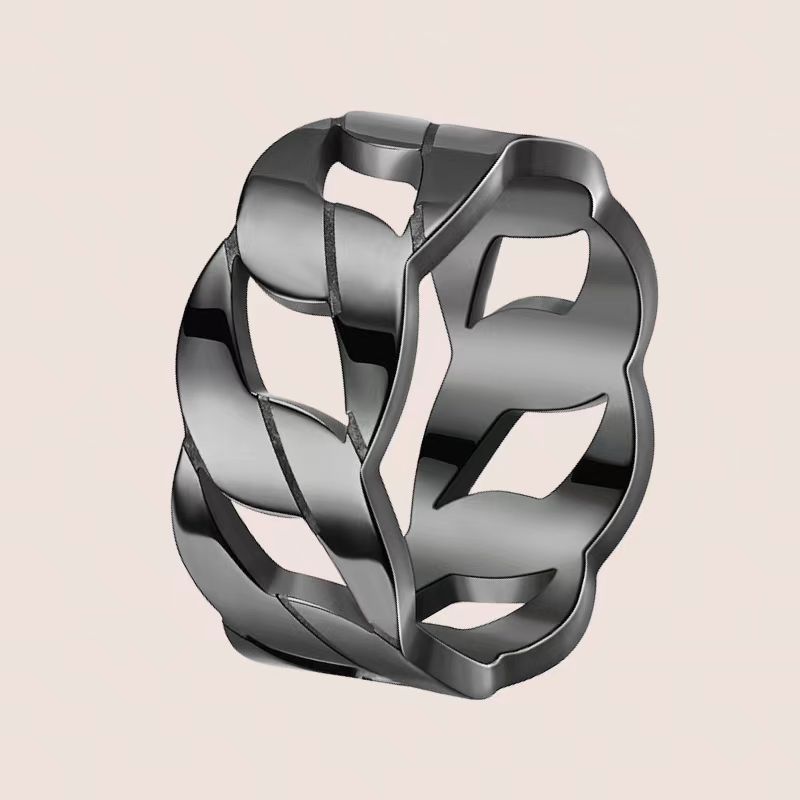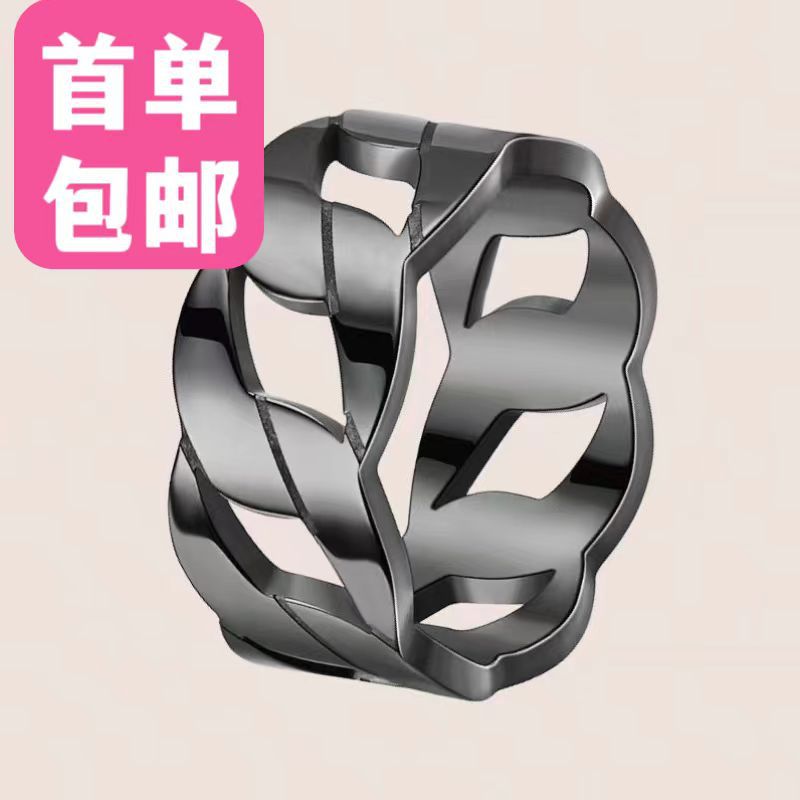 钛钢戒指男款潮男高级感不掉色饰品流行摇滚潮链条雕刻指环批发