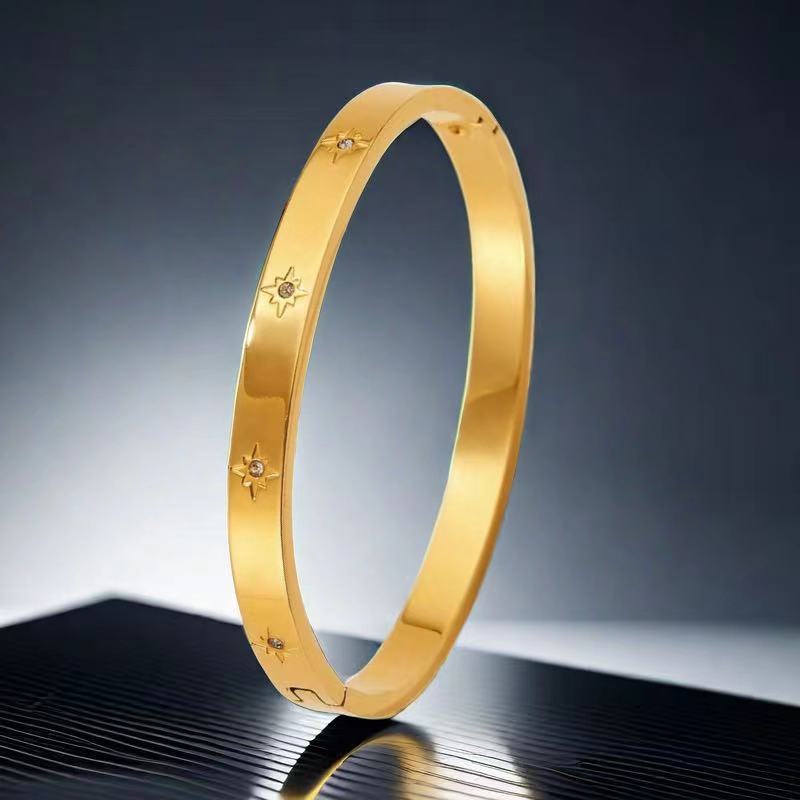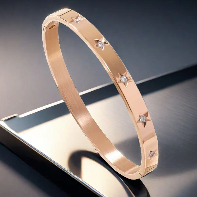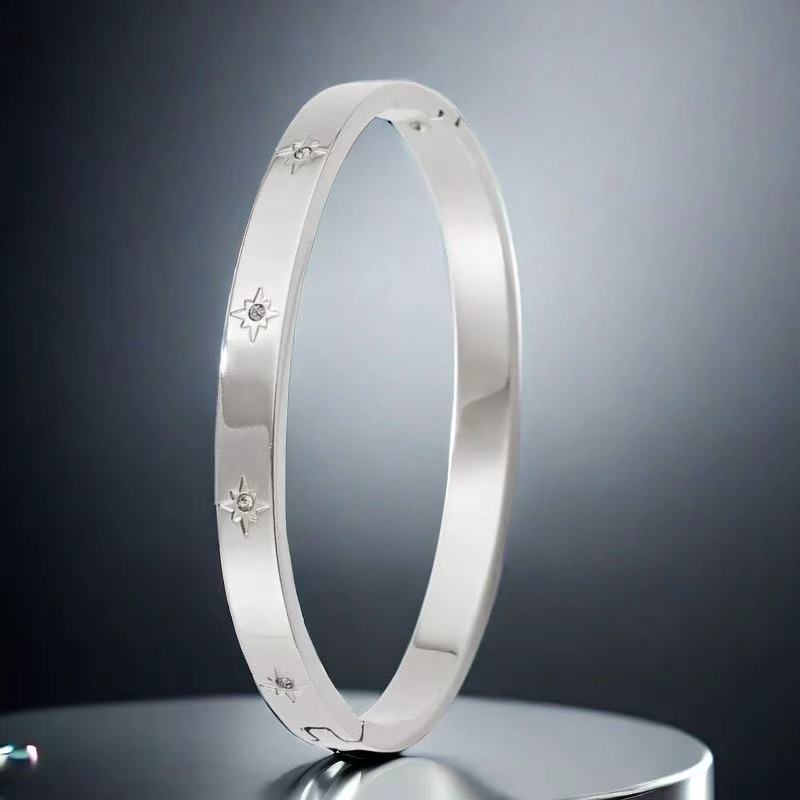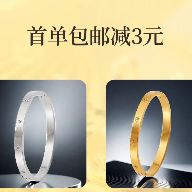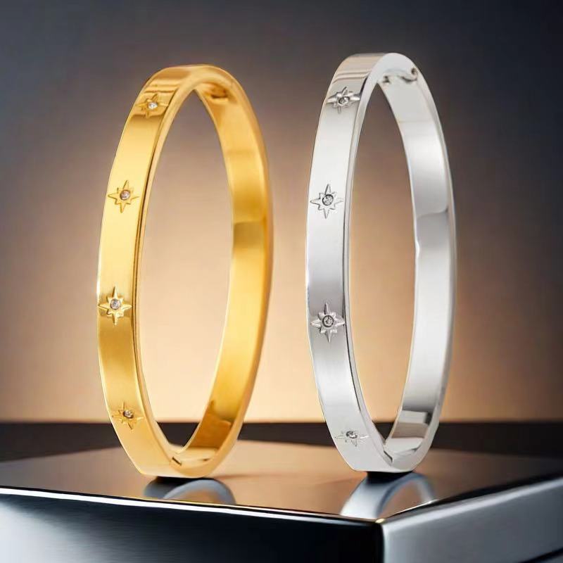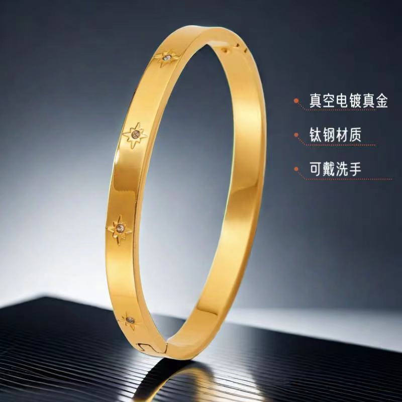 手镯女钛钢不掉色不锈钢手环镶钻高级感八芒星卡扣ins不掉色饰品