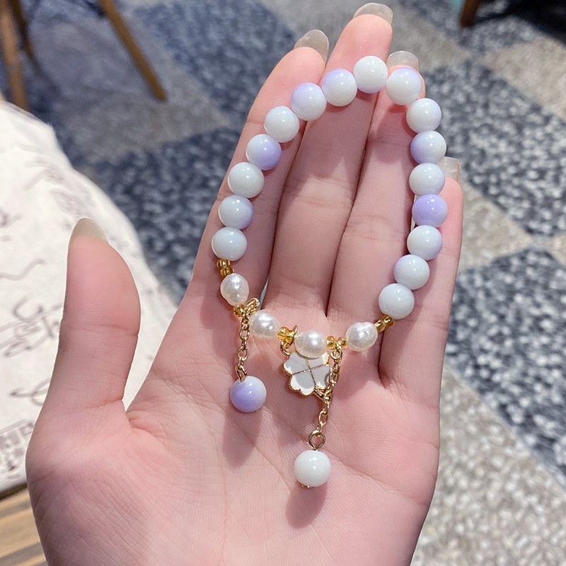 新款四叶草串珠手链高级感小众个性闺蜜学生手串外贸小礼品手饰品