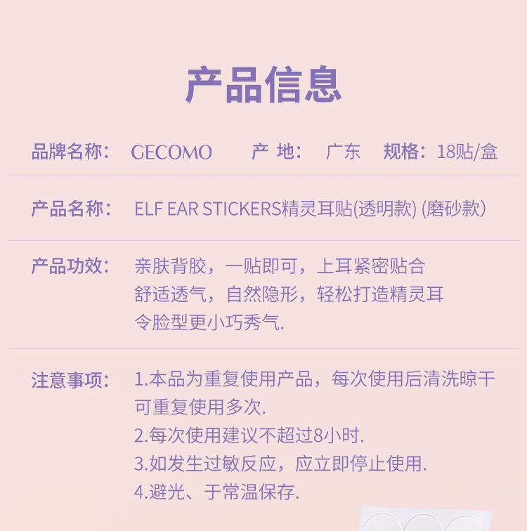 GECOMO精灵耳贴神器网红精灵耳显脸小立耳防水隐形支撑定型耳贴