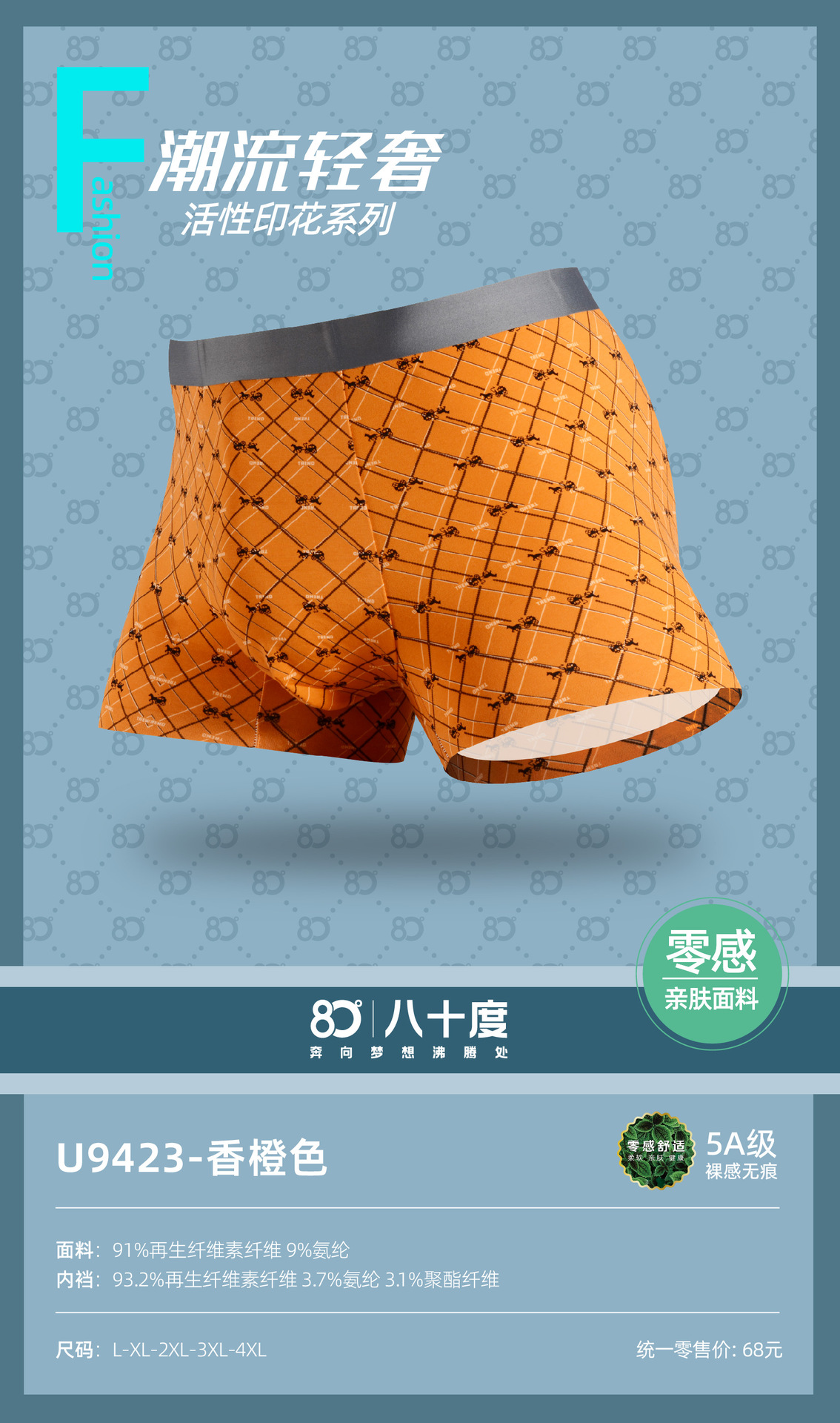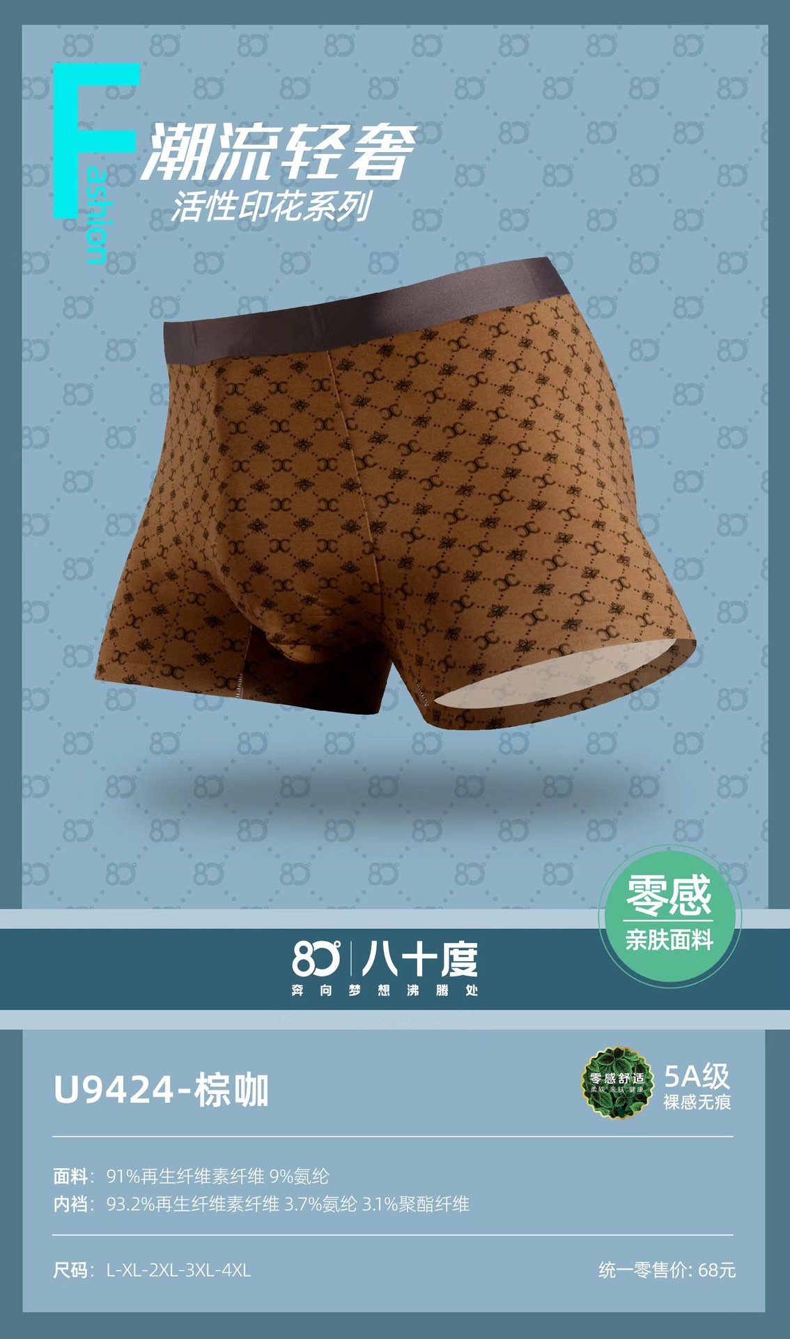 Tinct80°度男士60支兰精高端面料时尚印花更大气舒适男士四角裤