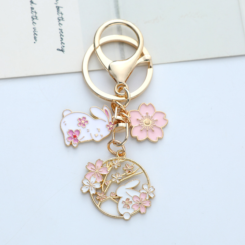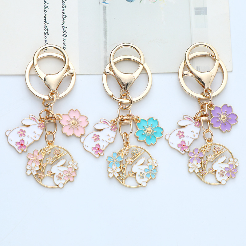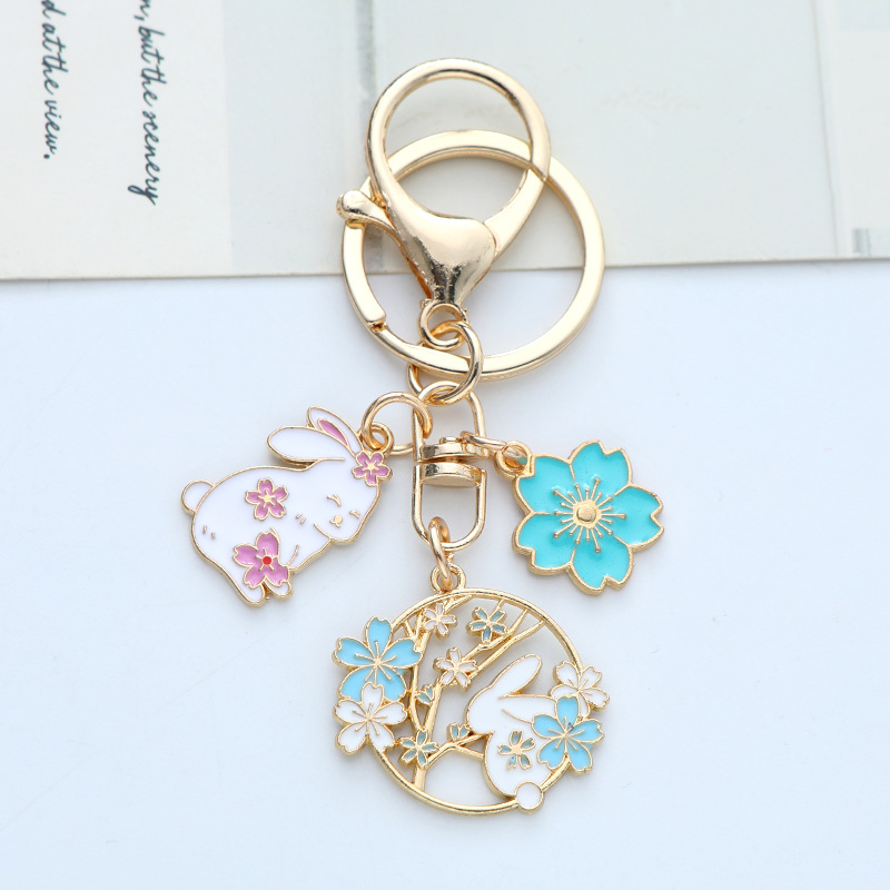 新款卡通钥匙扣DIY金属钥匙链可爱小兔子钥匙扣挂件包包挂饰礼品