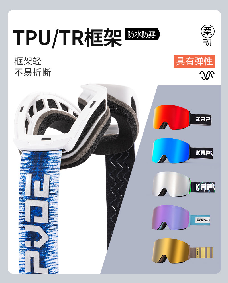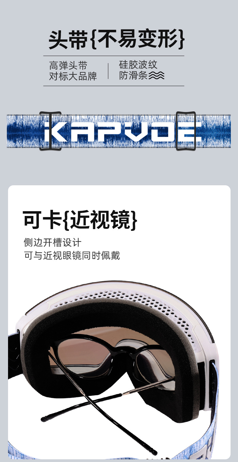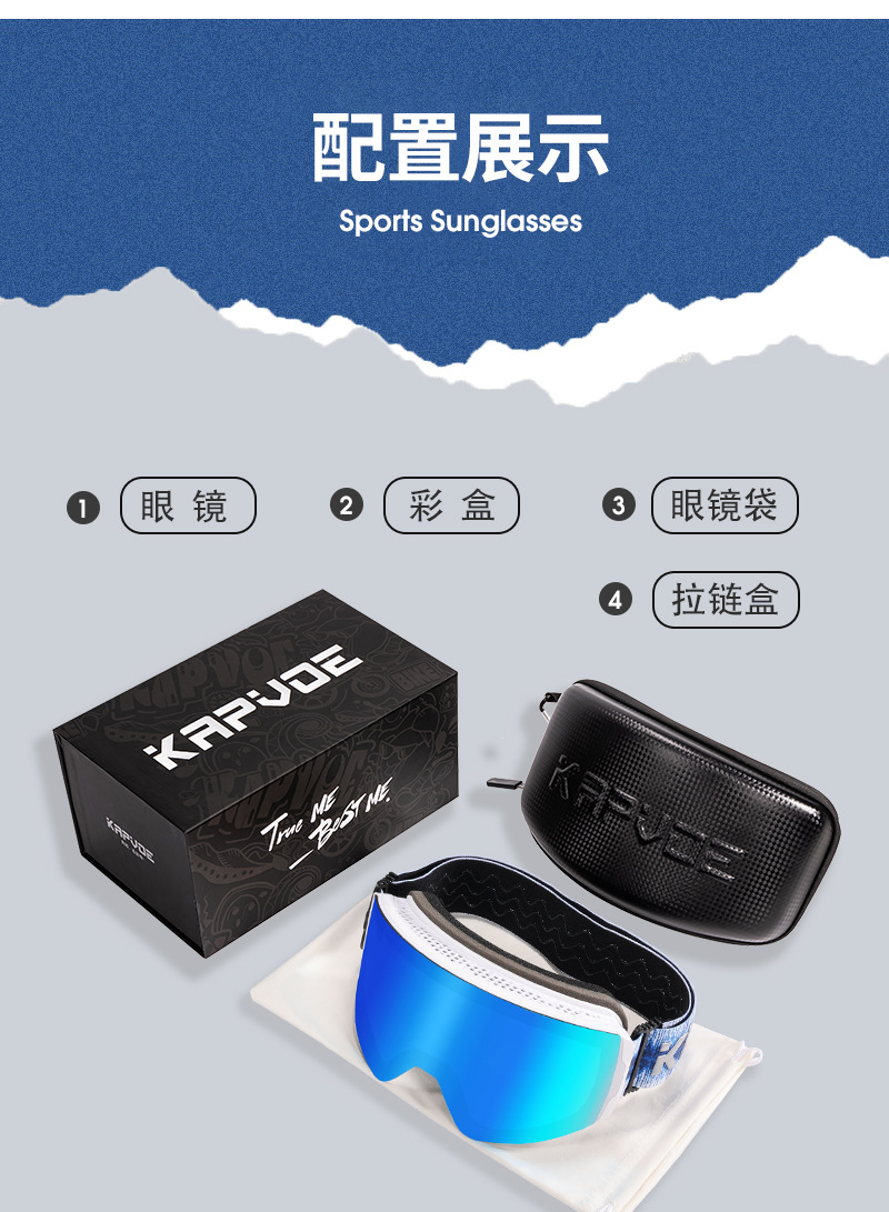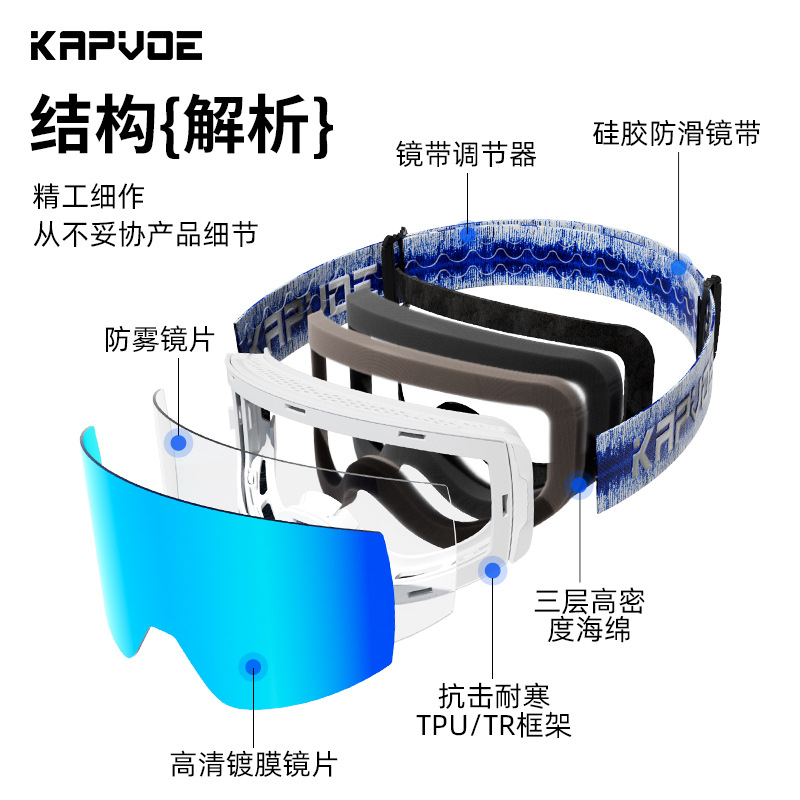 2023KAPVOE滑雪镜防紫外线磁吸防雾高清大视野户外雪地护目镜男女