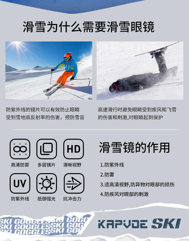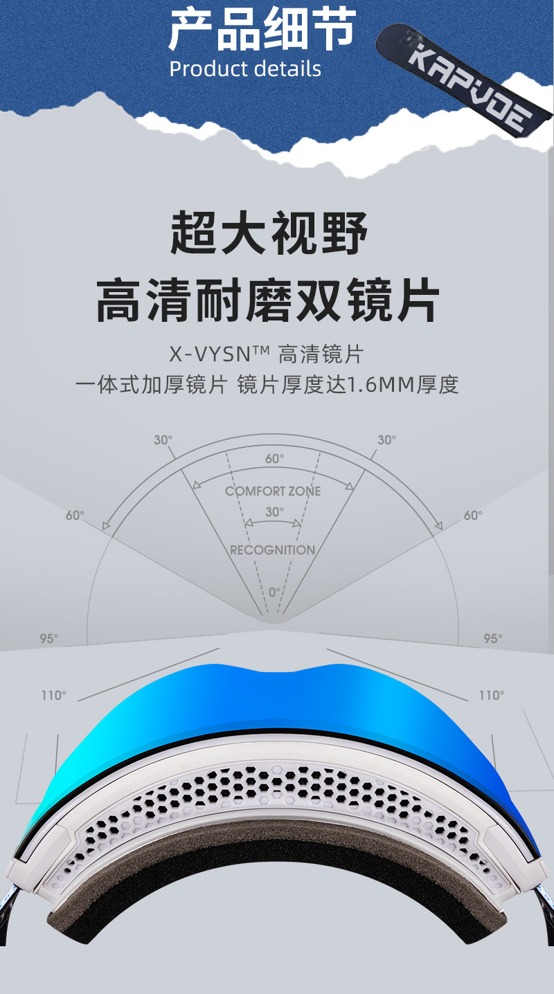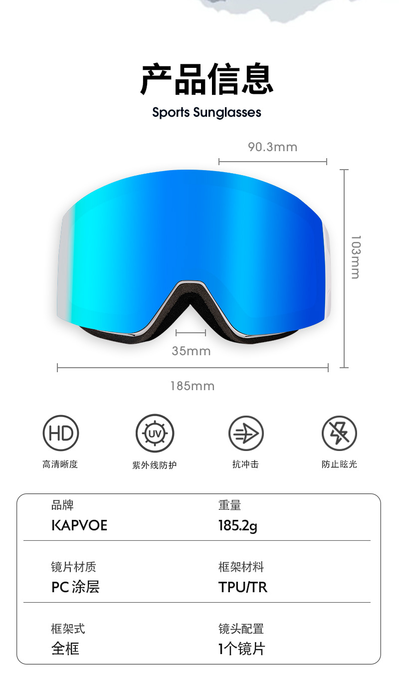 2023KAPVOE滑雪镜防紫外线磁吸防雾高清大视野户外雪地护目镜男女