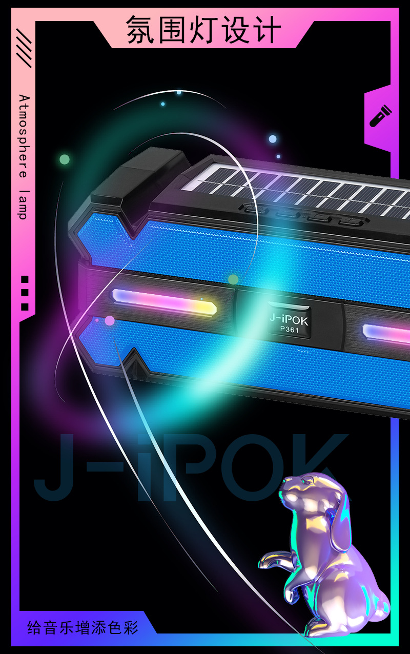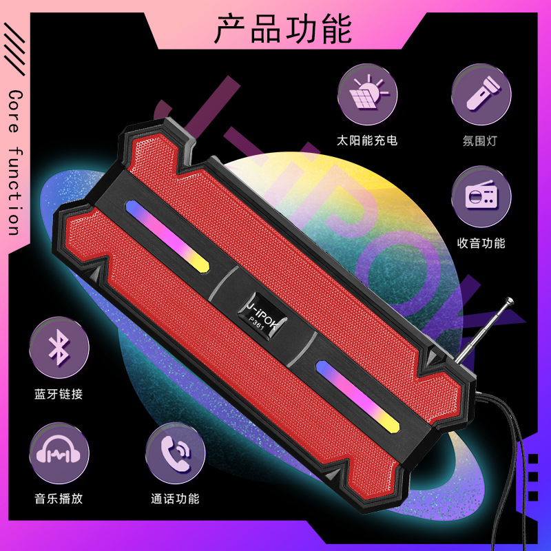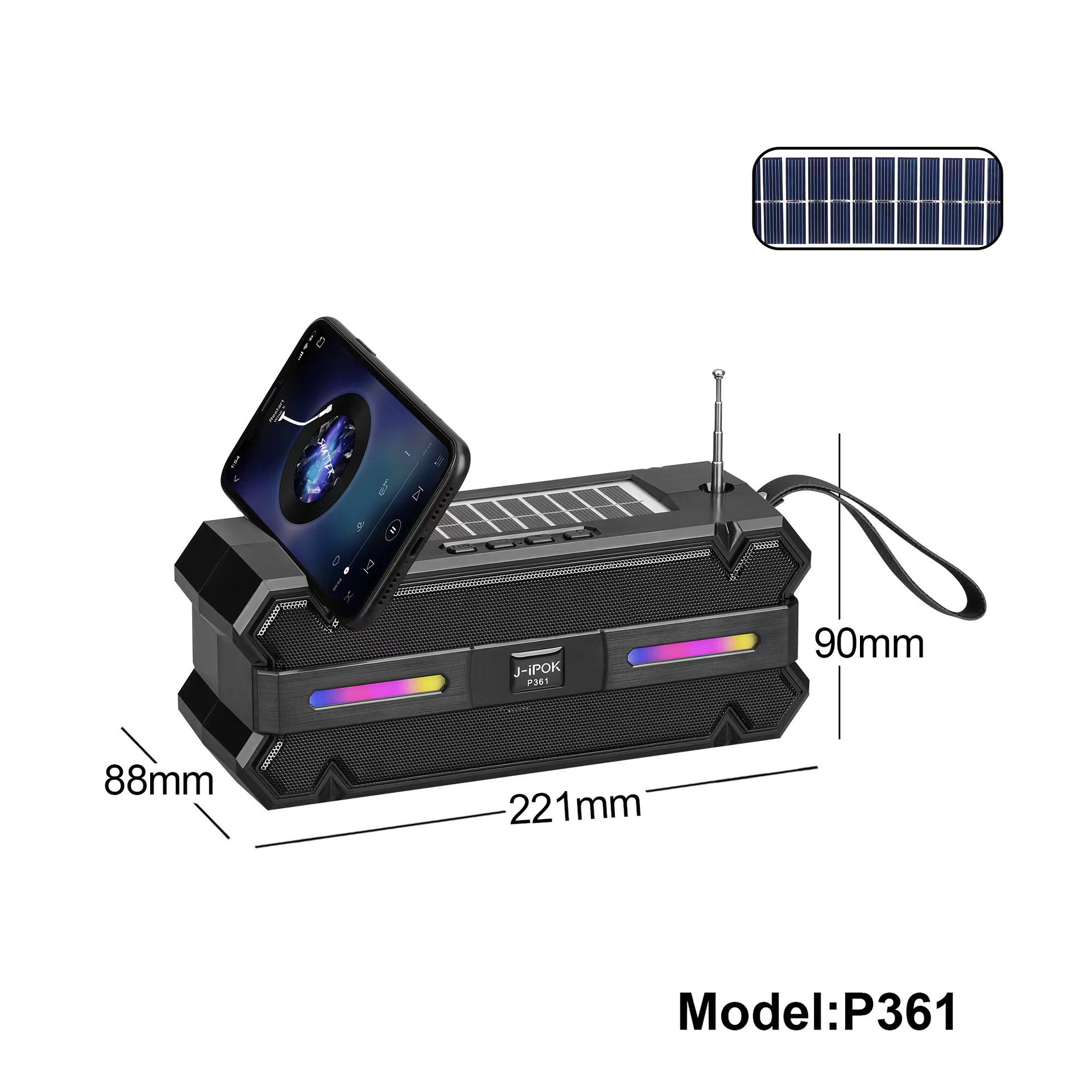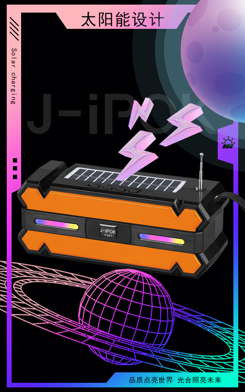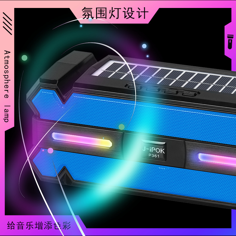 J-IPOK P361供应跨境蓝牙蓝牙音箱音响新款彩灯带太阳能板双喇叭