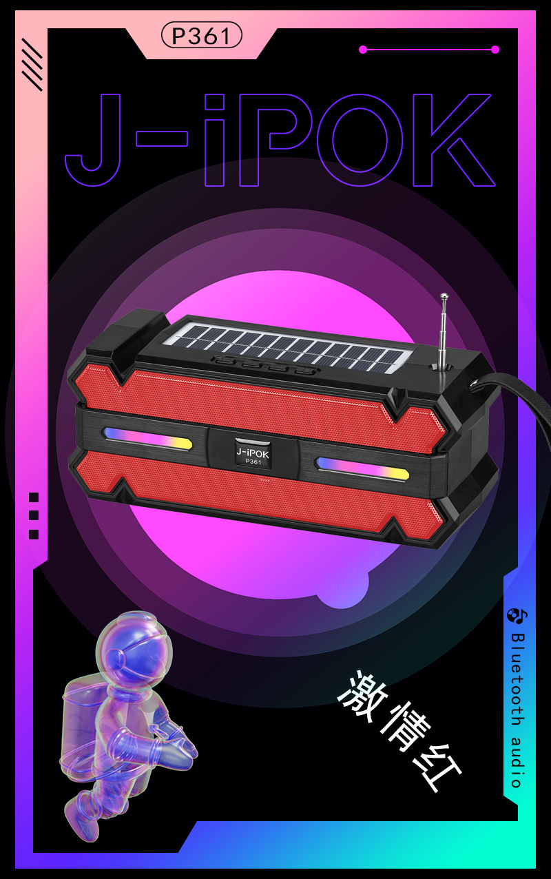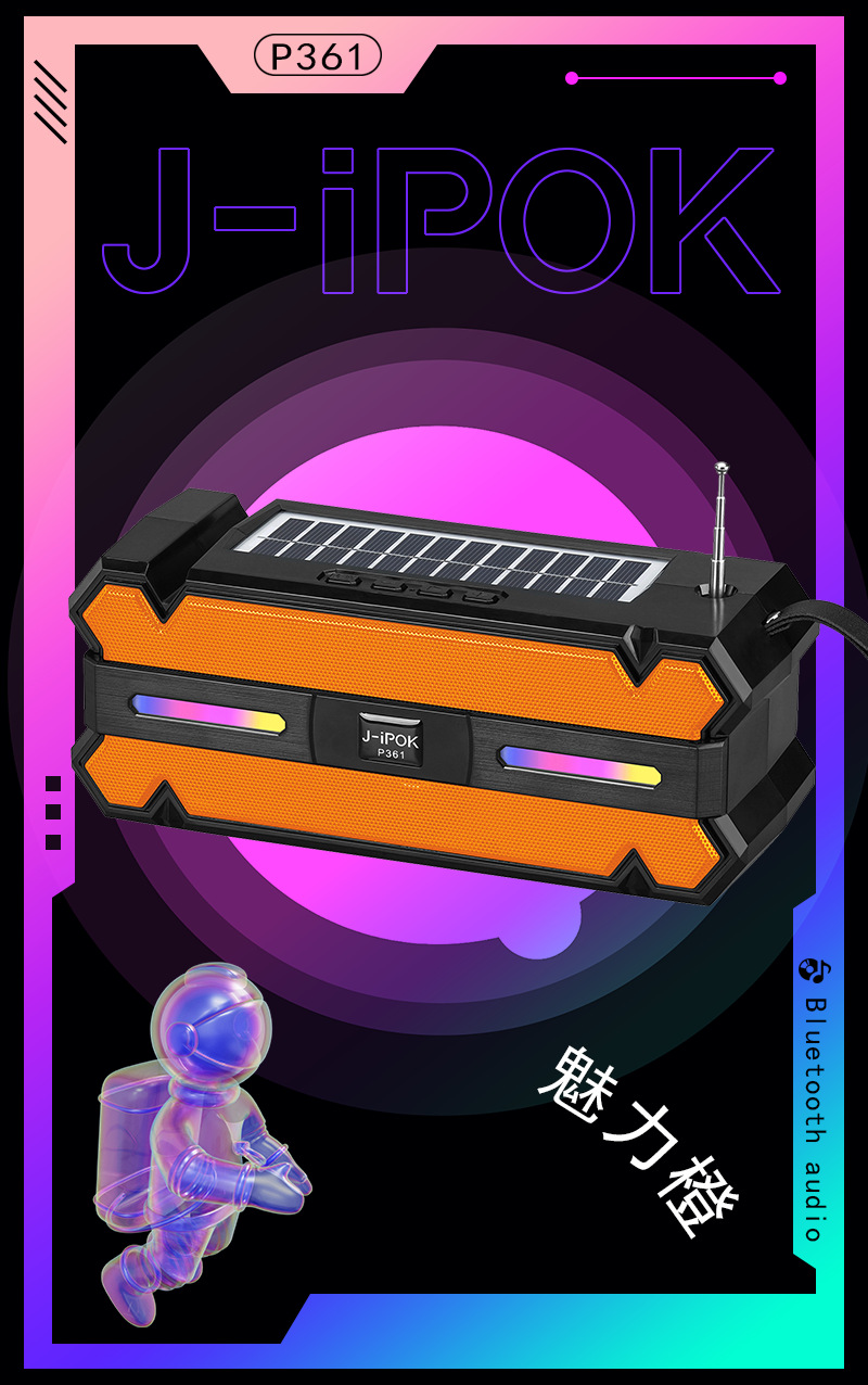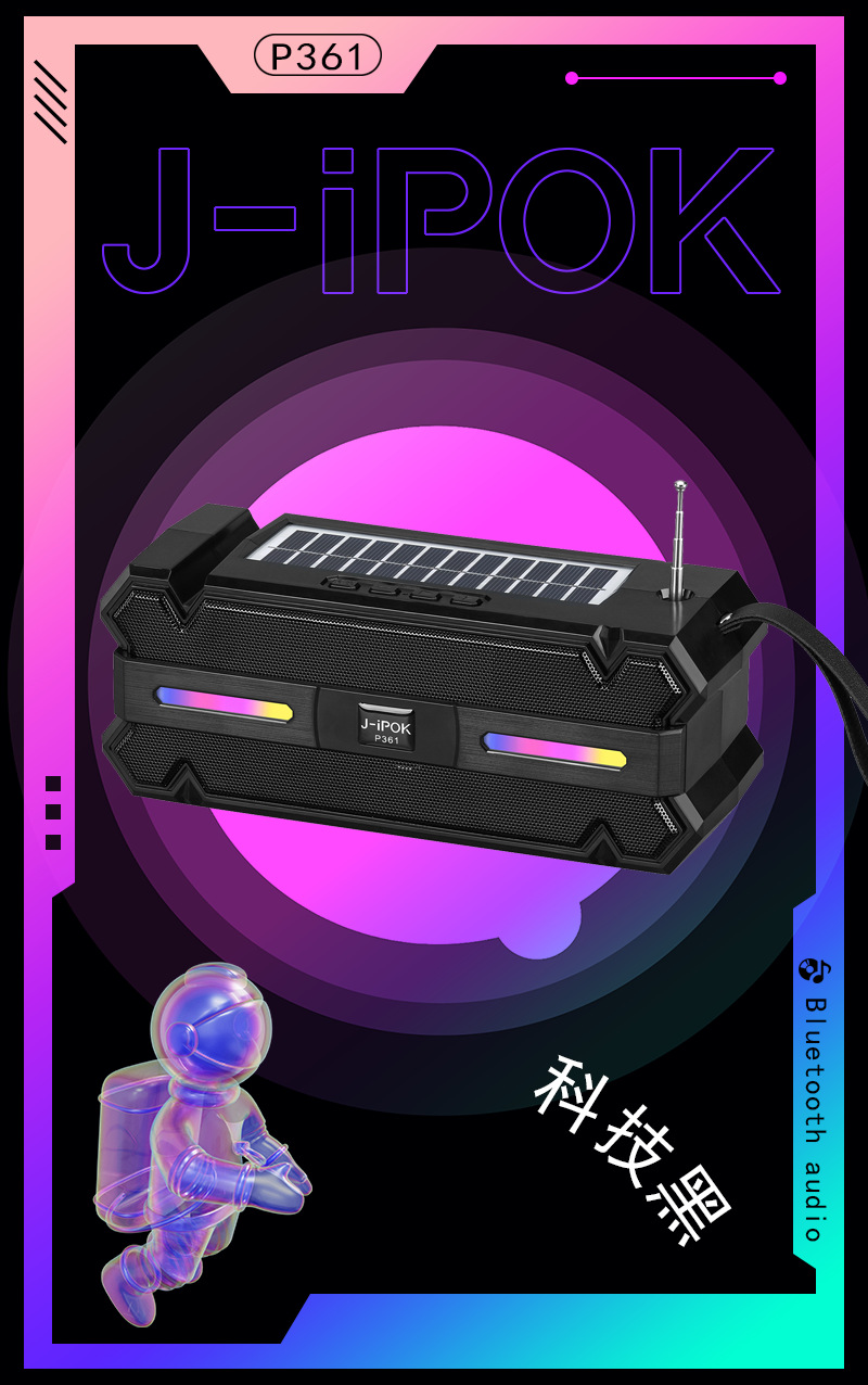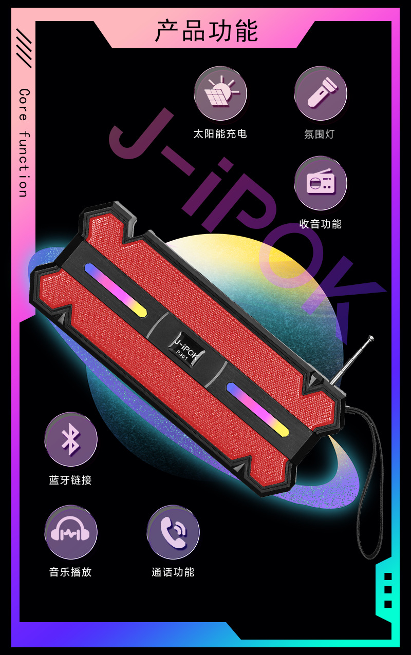 J-IPOK P361供应跨境蓝牙蓝牙音箱音响新款彩灯带太阳能板双喇叭